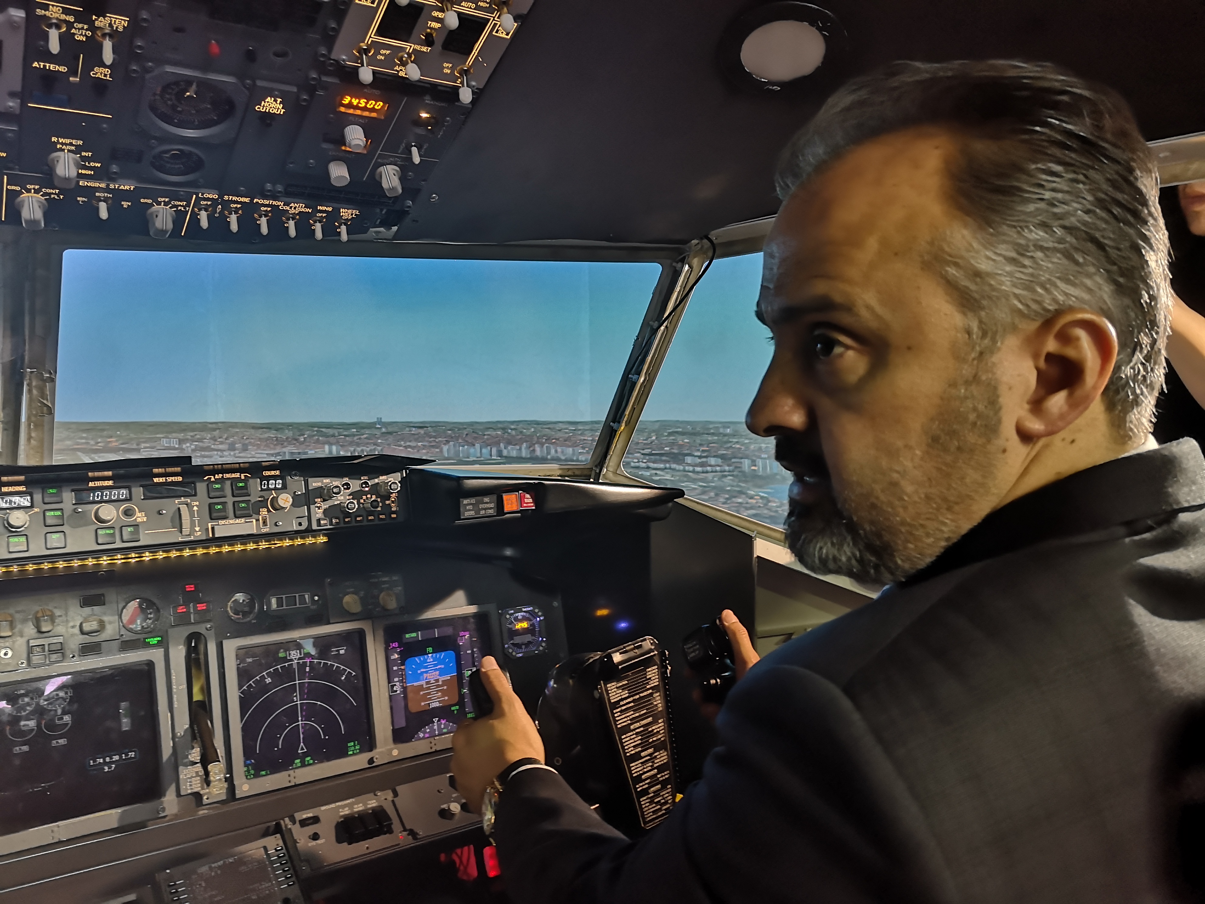 Başkan Aktaş, Türk Hava Yolları’nın uçak simülatörüne binerek, havadaki uçağı da piste indirmeye çalıştı.