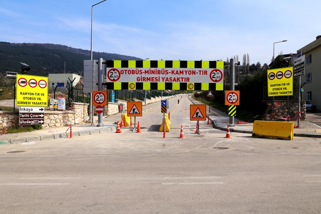 Ulaşım yatırımlarıyla bir taraftan kent içi ulaşımı rahatlatacak adımları atan Büyükşehir Belediyesi, diğer taraftan da mevcut yolları hem araçlar hem de ayalar için daha güvenli hale getiriyor. Büyükşehir Belediyesi, Çekirge Caddesi’ndeki trafiğe alternatif olarak kullanılan Uludağ Yolu, Dobruca Caddesi İnkaya bağlantı yolunun daha güvenli şekilde kullanımı için de gerekli tedbirlerini aldı. Yolun her iki girişine de tak görevi gören 2.60 metre yükseklik sınırı olan uyarıcı levhalar yerleştirilirken, yolu artık sadece küçük araçlar kullanabilecek.
