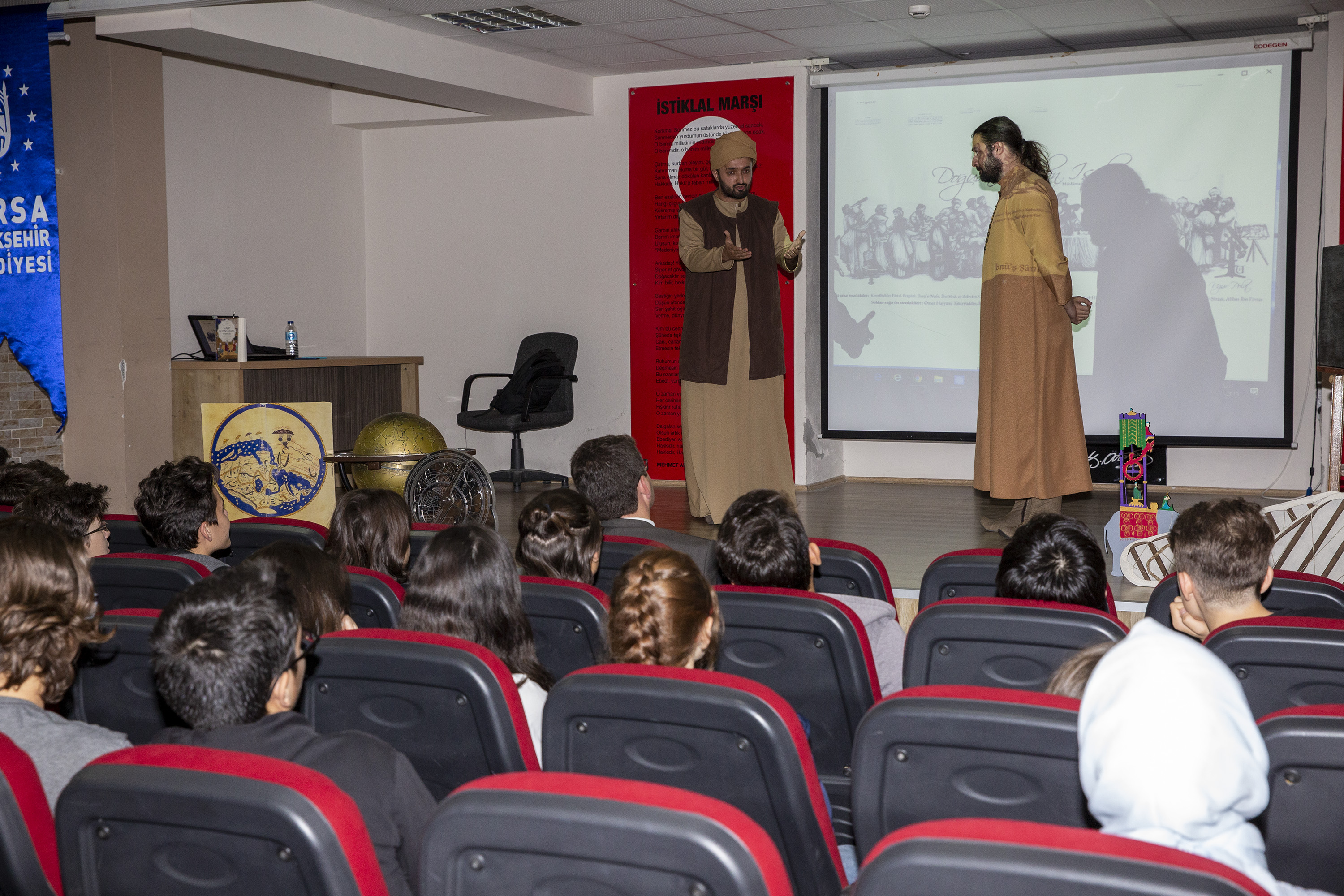 Şehir Tiyatrosu oyuncularının da canlandırmalarla eşlik ettiği projede, İbnü’l-Heysem, Ömer Hayyâm, Kemâleddin Fârisî, Hârizmî, Bîrûnî, El-Cezerî, Nasîrüddin Tûsî, İbn Türk, Ferganî, El-Bettânî, Uluğ Bey, Ali Kuşçu, İbn Sînâ, Câbir bin Hayyân, Râzî, İbnü’n-Nefîs, Zehrâvî, İdrîsî, Abdurrahman el-Hâzinî, İbnü’ş-Şâtır, Abbas bin Firnâs, Sâbit bin Kurrâ, El-Kindî, Ebû Kâmil Şücâ veTakıyüddin’in bilim dünyasına ışık tutan çalışmaları hakkında öğrencilere bilgiler veriliyor.
