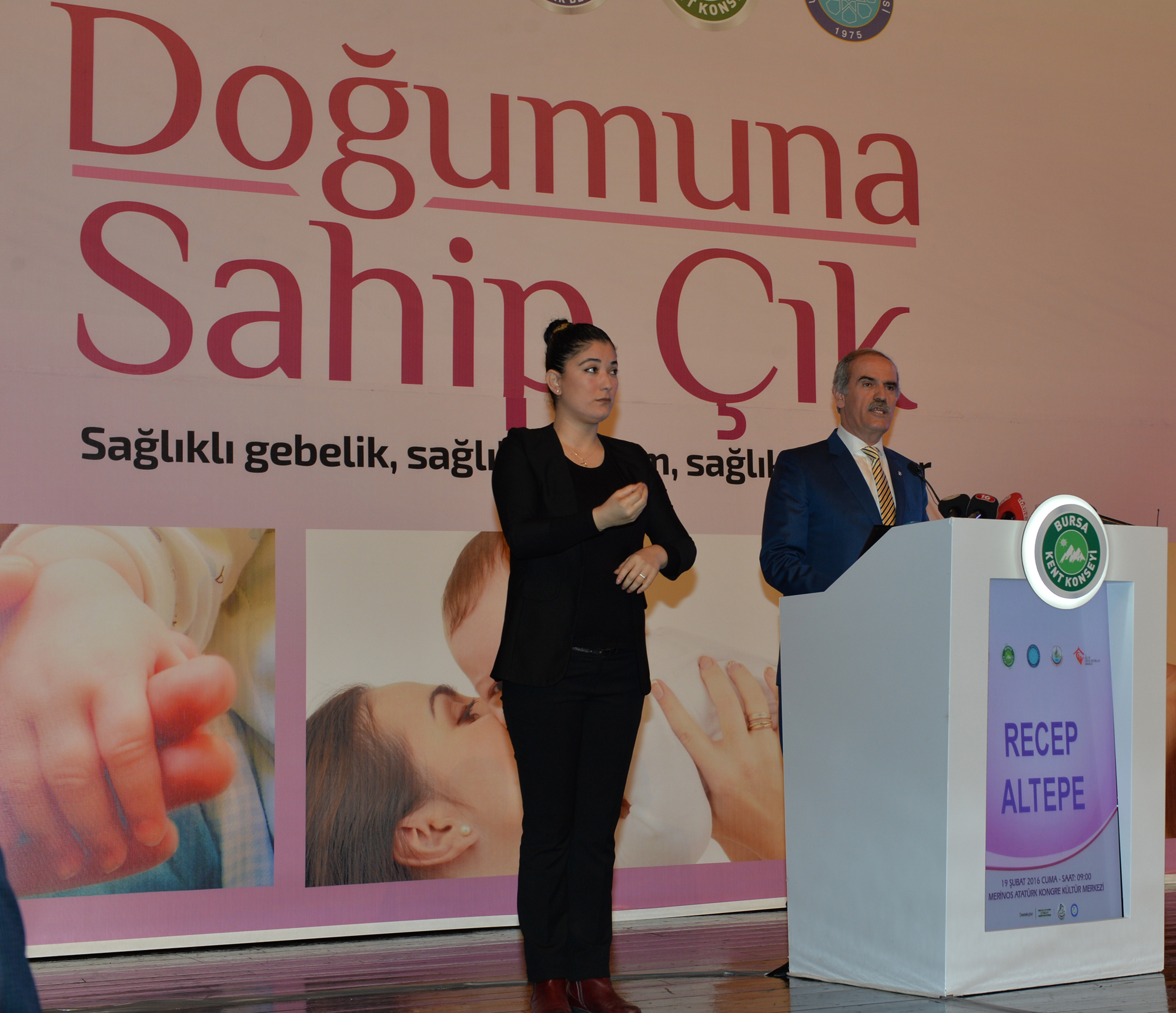 Türkiye Sağlıklı Kentler Birliği ve Bursa Büyükşehir Belediye Başkanı Recep Altepe, ‘Doğumuna Sahip Çık’ projesinin sempozyumunda yaptığı açılış konuşmasında, sağlıklı geleceğin sağlıklı nesillerle oluşacağını vurguladı. Bursa’da Büyükşehir Belediyesi olarak sağlıklı bir gelecek hedefiyle imza atılan çalışmaları anlatan Başkan Altepe, ‘Doğumuna Sahip Çık Projesi’nin önemini vurgulayarak, “Sağlıklı bir toplum ancak sağlıklı nesillerle oluşur. Büyüyen ve gelişen, hedefleri olan Türkiye’de, sezaryen oranının dünya ortalamasının üzerine çıkması ve tıbbi bir gereklilik olmadan isteğe bağlı sezaryen uygulamalarının artışı ciddi bir noktaya ulaşmıştır. Bizler Bursa’da yerel yönetimler olarak bireylerin sağlıklı yaşam kalitesiyle hayatlarını sürdürmelerinden yanayız. Bu nedenle ‘önce insan’ diyoruz ve Büyükşehir Belediyesi olarak çalışmalarımızı da bu doğrultuda Bursa’da kadınların sağlıklı ve kaliteli yaşamaları hedefiyle planlıyoruz” diye konuştu.