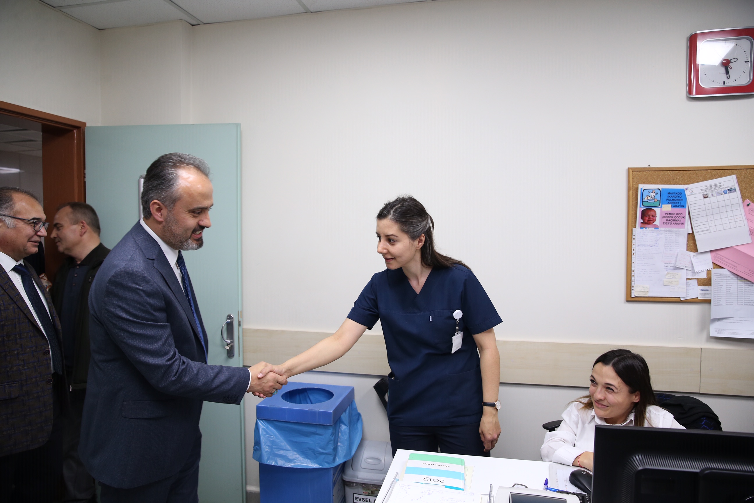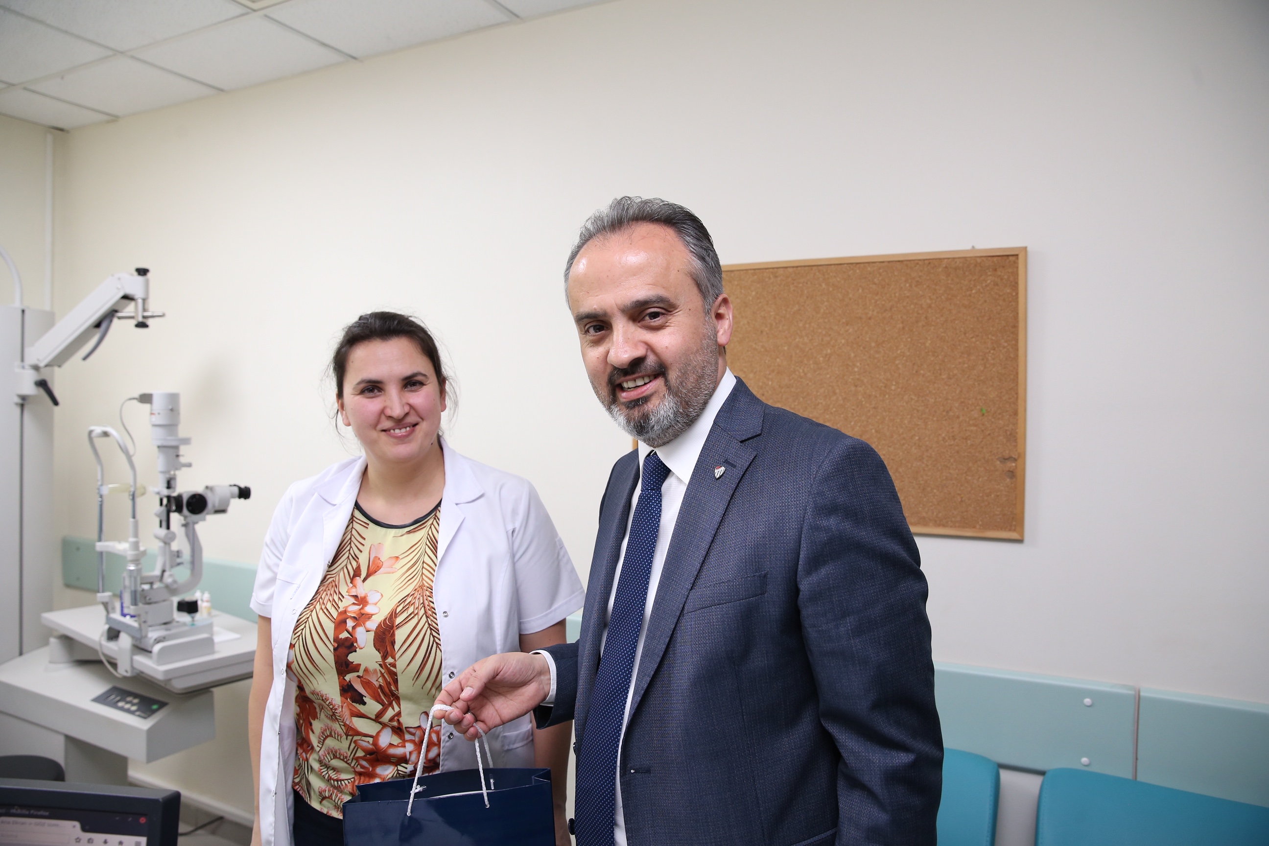 BURSA - Bursa Büyükşehir Belediye Başkanı Alinur Aktaş, Yüksek İhtisas Eğitim ve Araştırma Hastanesi’ni ziyaret ederek, doktorların 14 Mart Tıp Bayramı’nı kutladı.
