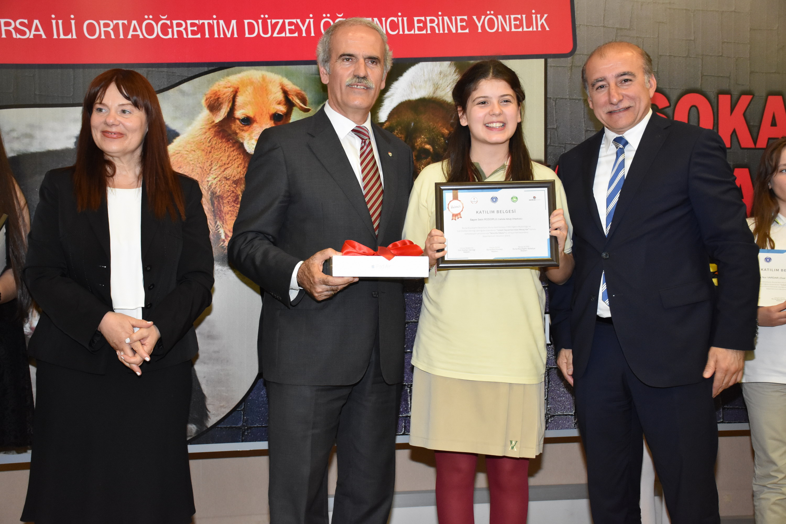 Bursa Büyükşehir Belediyesi, Bursa Kent Konseyi, İl Milli Eğitim Müdürlüğü ve Can Dostları Derneği işbirliğiyle düzenlenen ‘Sokak Hayvanlarından Mesaj Var’ konulu kompozisyon yarışmasının ödül töreni, Atatürk Kongre Kültür Merkezi (Merinos AKKM) Uludağ Salonu’nda yapıldı.