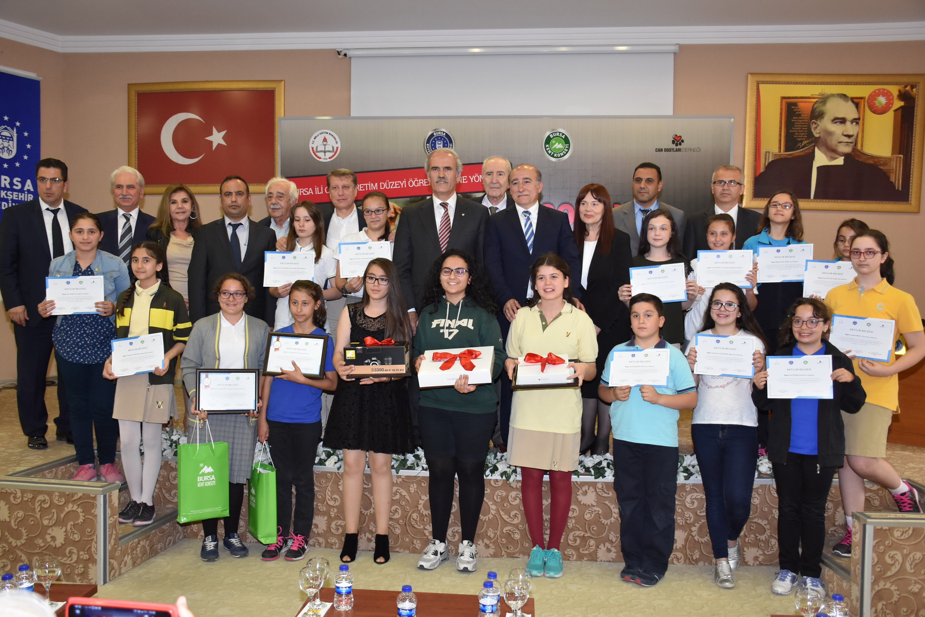 - BURSA BÜYÜKŞEHİR BELEDİYESİ, BURSA KENT KONSEYİ, İL MİLLİ EĞİTİM MÜDÜRLÜĞÜ VE CAN DOSTLARI DERNEĞİ İŞBİRLİĞİYLE DÜZENLENEN ‘SOKAK HAYVANLARINDAN MESAJ VAR’ KONULU KOMPOZİSYON YARIŞMASININ ÖDÜL TÖRENİ, MERİNOS AKKM’DE YAPILDI.