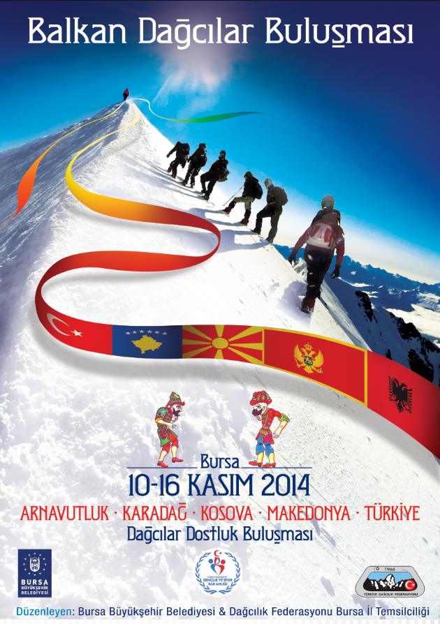 - BURSA BÜYÜKŞEHİR BELEDİYESİ VE TÜRKİYE DAĞCILIK FEDERASYONU BURSA İL TEMSİLCİLİĞİ TARAFINDAN DÖRT BALKAN ÜLKESİNDEN GELECEK DAĞCILARIN KATILIMIYLA DÜZENLENEN ‘BALKAN DAĞCILAR BULUŞMASI’ 10 – 16 KASIM TARİHLERİ ARASINDA BURSA’DA YAPILACAK.
