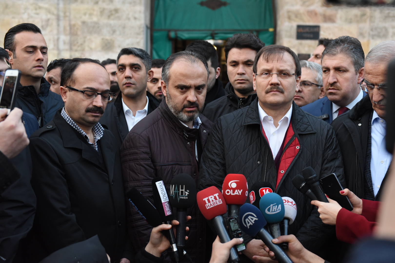 Başbakan Yardımcısı Hakan Çavuşoğlu ile Bursa Büyükşehir Belediye Başkanı Alinur Aktaş da Ulucami’de sabah namazını kılıp vatandaşlarla birlikte Mehmetçik için dua etti. Cami çıkışı basın mensuplarına açıklama yapan Başkan Aktaş, “Bursalı hemşehrilerimize çok teşekkür ediyoruz. Eminim ki burada da Türkiye’nin 4 bir tarafında da tüm insanımız askerimiz, milletimiz ve ordumuz için duadaydı. Rabbim dualarımızı kabul etsin” dedi.