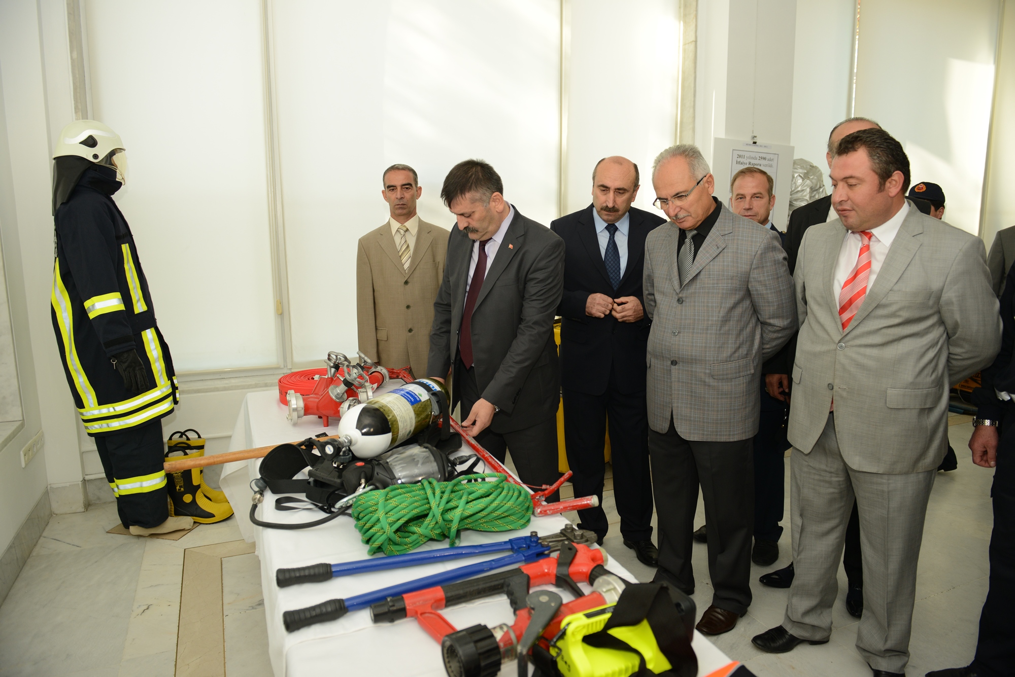 Sergide, itfaiye teşkilatının kuruluşundan bugüne kadar kullanılan tulumba, tulumbacı fenerleri eski hortumlar, lanslar, solunum cihazları, tulumbacı kıyafetleri, eski döneme ait vukuat kayıt defterleri ve bugün de kullanılan duman tahliye makinesi, seyyar köpük makinesi, baca temizleme makinesi, dalgıç su çekme pompası, arama kurtarma cihazları, dağcı ve cankurtaran kıyafet ve malzemeleri, yeni temiz hava solunum cihazları, yeni hortumlar ve otomatik söndürme lansları ve diğer teknolojik gereçler gözler önüne serildi. Kente hizmet veren tüm itfaiyecilerle sivil toplum kuruluşları ve vatandaşların büyük ilgi gösterdiği sergide itfaiye ile ilgili haber kupürleri de ilgiyle izlendi.