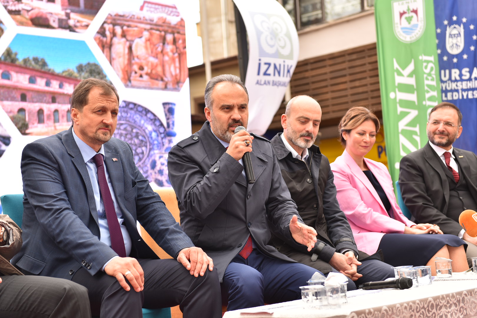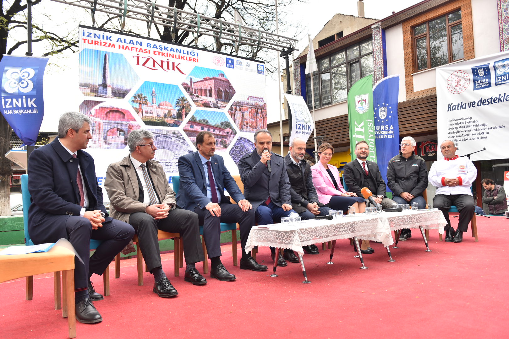 Etkinlikler kapsamında Milli İrade Meydanı’nda yapılan ‘İznik Turizminin Dünü Bugünü Yarını’ konulu panelde İznik turizmi değerlendirildi. İznik Alan Başkanı Prof.Dr. Murat Taş’ın moderatörlüğünde yapılan panelde Bursa Büyükşehir Belediye Başkanı Alinur Aktaş, Bursa Milletvekili Zafer Işık, İznik Belediye Başkanı Kağan Mehmet Usta, BEBKA Genel Sekreteri İsmail Gerim, TÜRSAB Bursa Başkanı Murat Saraçoğlu, Bursa Aşçılar Derneği Başkanı Reşat Kahraman, Yeşil Valiz Sorumlu Turizm Derneği Başkanı Arzu Kutucu Özenen ve İznik Ultra Maraton Yöneticisi Caner Odabaşoğlu, turizmde izlenecek yeni yol haritası üzerinde değerlendirmeler yaptı.