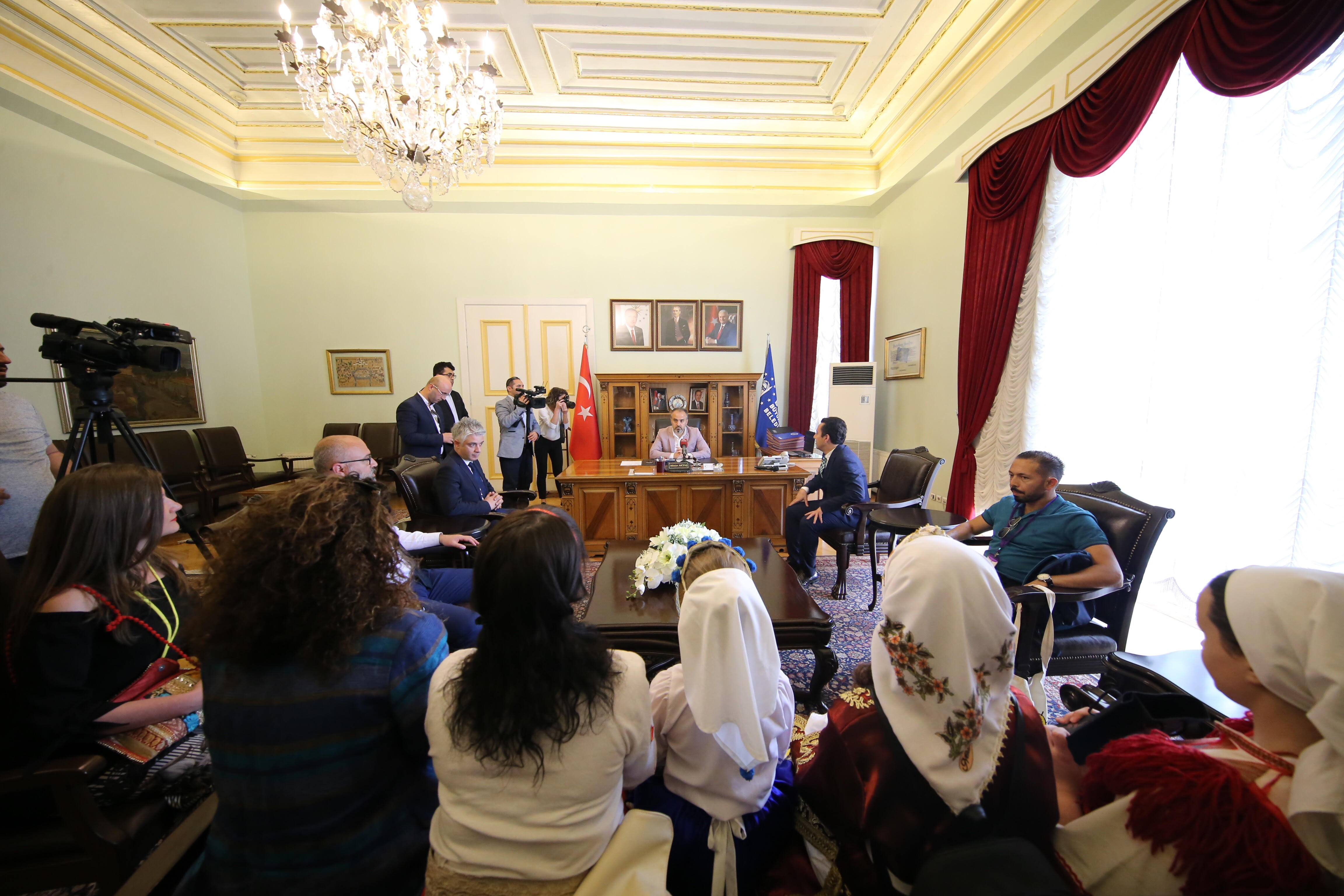 BURSA - Bursa Büyükşehir Belediye Başkanı Alinur Aktaş, özel bir okulun davetlisi olarak Makedonya, Ukrayna ve Kuzey Kıbrıs Türk Cumhuriyeti'nden Bursa’ya gelen orta ve lise düzeyinde öğrencileri ağırladı.