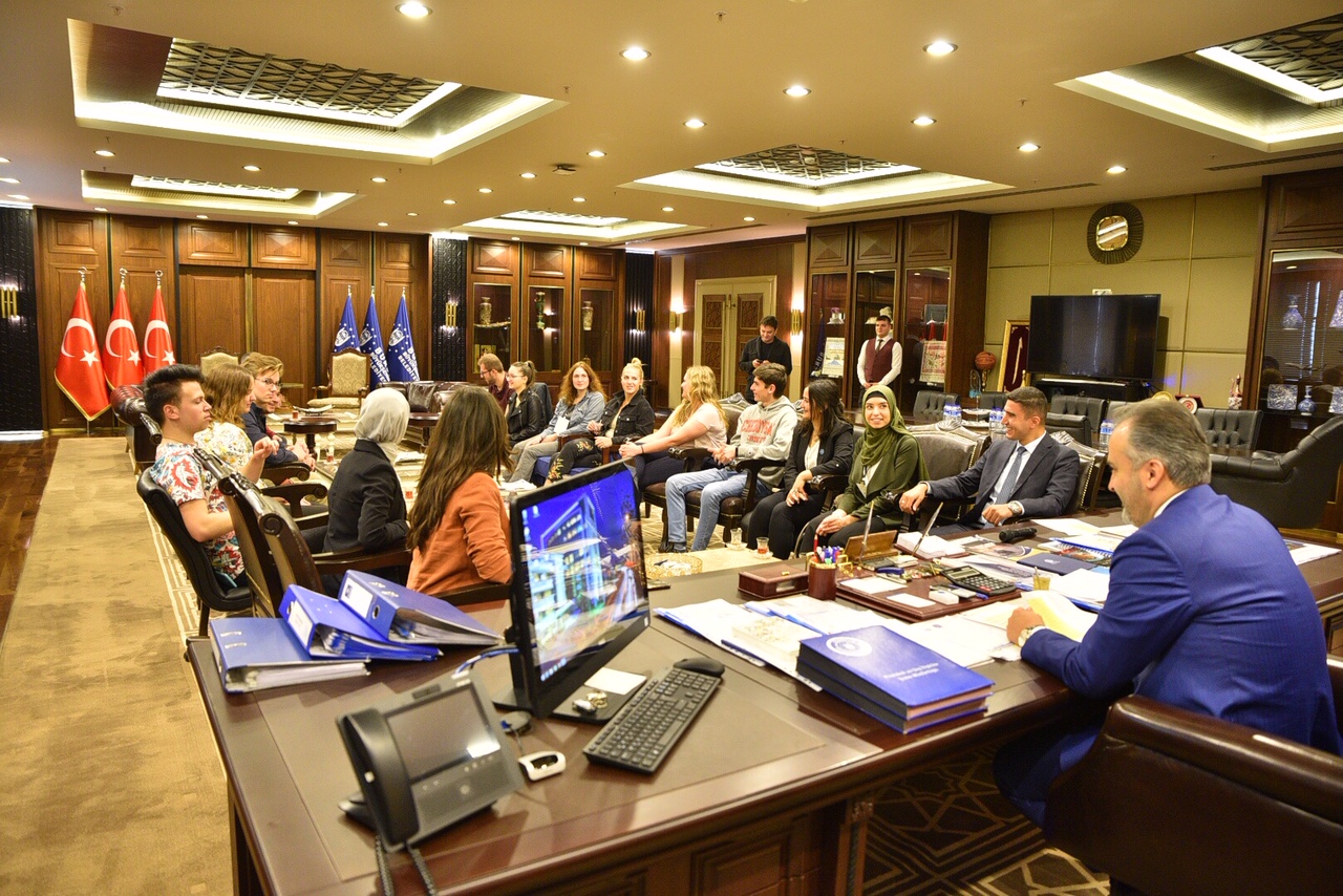 BURSA - Büyükşehir Belediye Başkanı Alinur Aktaş, kültürlerarası etkileşimde bulunmak için Bursa’ya gelen 7 ülkeden gençleri ağırladı. Başkan Aktaş, “İnşallah bu ziyaret, ülkelerarası dostluk ve kardeşliği artırmaya vesile olur” dedi.