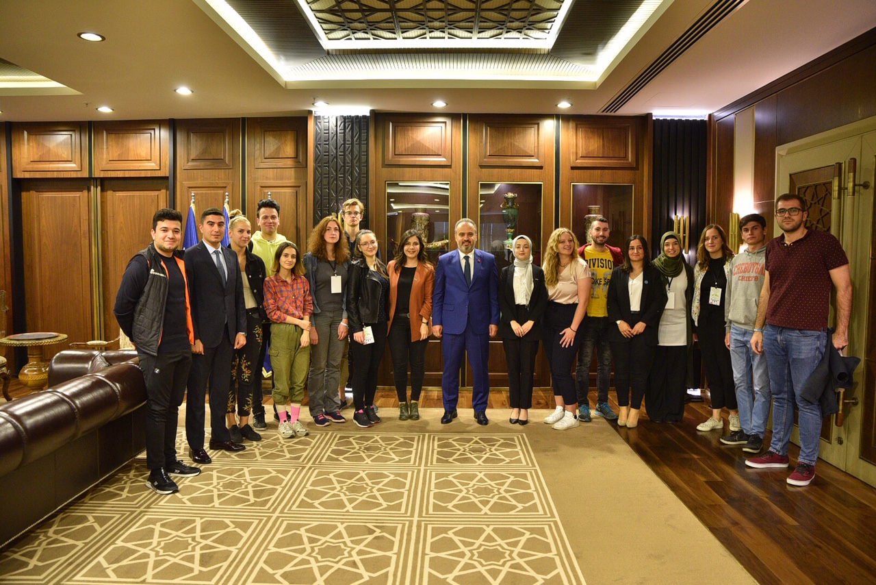 Ulusal Ajans tarafından desteklenen Ana Eylem-1 projesi kapsamında Bursa’ya gelen, Türkiye, Bulgaristan, Makedonya, Yunanistan, Estonya, Azerbaycan ve Ukrayna’dan gençler, Büyükşehir Belediye Başkanı Alinur Aktaş’ı ziyaret etti. Sivil Yaşam Derneği’nin (SİYAMDER) organizasyonuyla Büyükşehir Belediyesi’nde gerçekleşen görüşmede, kültürlerarası diyalog, sağlıklı yaşam, çevre ve geri dönüşüm farkındalığı gibi konular gündeme geldi. Görüşmeye, Büyükşehir Belediyesi Gençlik ve Spor Hizmetleri Şube Müdürü Nurullah Yıldız ile SİYAMDER Genel Başkan Yardımcısı Sena Özsipici de katıldı.