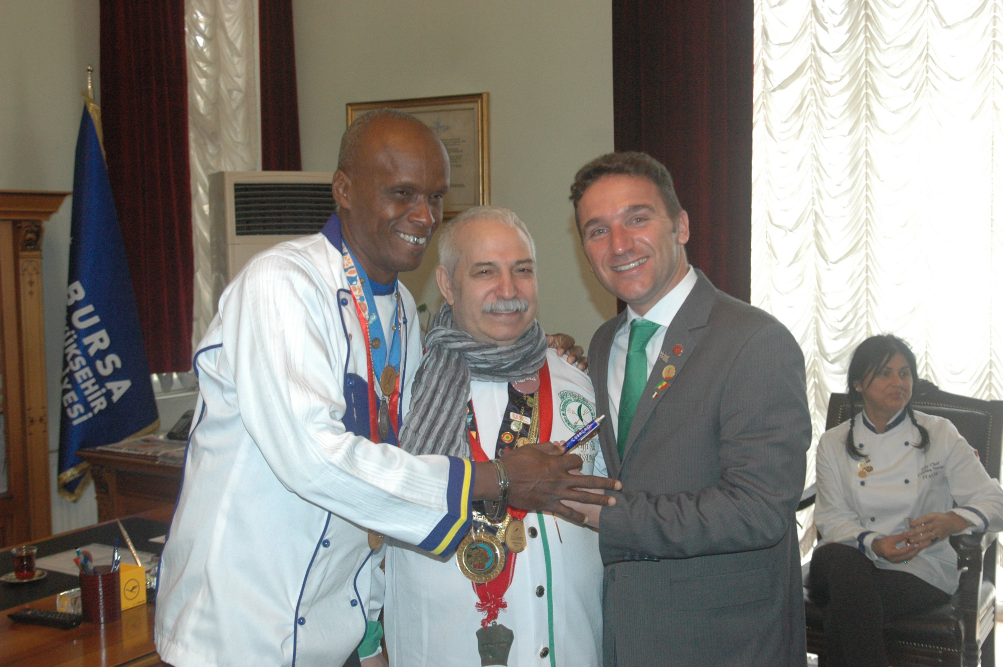 - GASTRONOMİ FESTİVALİ’NE KATILMAK AMACIYLA YUNANİSTAN, KARAYİP ADALARI, FİNLANDİYA, ARJANTİN, AMERİKA, BOLİVYA VE İTALYA’DAN BURSA’YA GELEN ŞEF MASTER DÜZEYİNDE AŞÇILAR, BÜYÜKŞEHİR BELEDİYESİ’Nİ ZİYARET ETTİ.