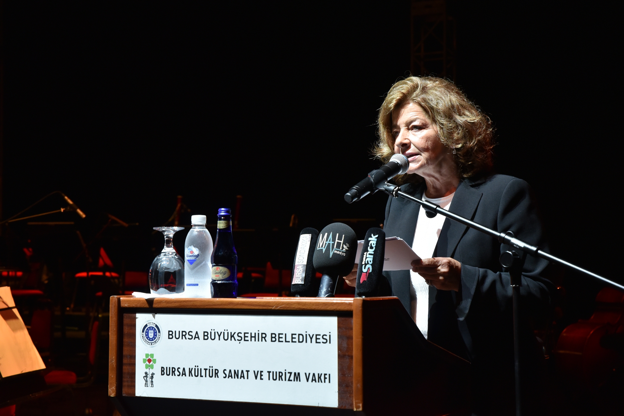 Bursa Kültür Sanat ve Turizm Vakfı (BKSTV) Yönetim Kurulu Başkanı Fatma Durmaz Yılbirlik ise 58 yıldır koşulların kimi zaman zor, kimi zaman elverişsiz olduğunu ama şehrin nefesi olan Kültürparkın her zaman Bursa’yı sarıp sarmaladığını hatırlattı. Bursa festivalinin uzun yıllardır sanatseverleri bir araya getirdiğini ifade eden Yılbirlik, “Eminim ki birçoğumuzun anılarında festivalle ilgili çocukluk anıları var. Annenizin babanızın sizin elinizden tutup konserlere getirdiğini hatırlıyorsunuzdur. Belki o gün buraya gelip konseri izleyen çocuklardan bir çoğu sanata yönelerek üretici boyuta geçtiler. Bursa birçok sanatçı yetiştirdi. 58 yıldır Bursa Festivali’nin kesintisiz gerçekleşmesini sağlayan Bursa Büyükşehir Belediyesine ve Başkanımız Alinur Aktaş’a çok teşekkür ediyorum” diye konuştu.