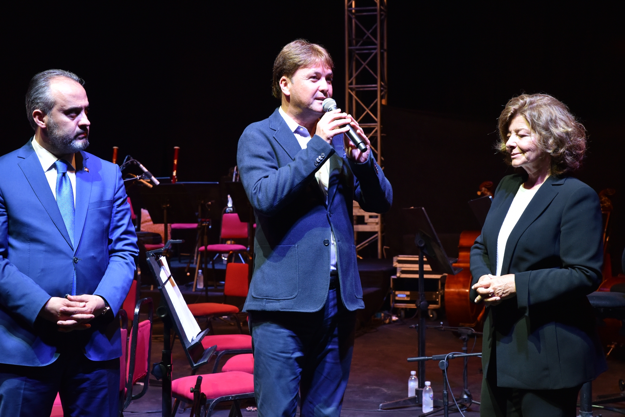 BURSA - ‘58. Uluslararası Bursa Festivali’, Bursa Bölge Devlet Senfoni Orkestrası ve ünlü sanatçı Demir Demirkan’ı aynı sahneyi paylaştığı muhteşem konserle başladı.