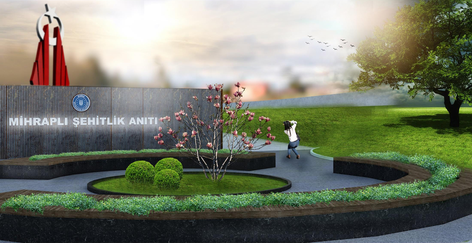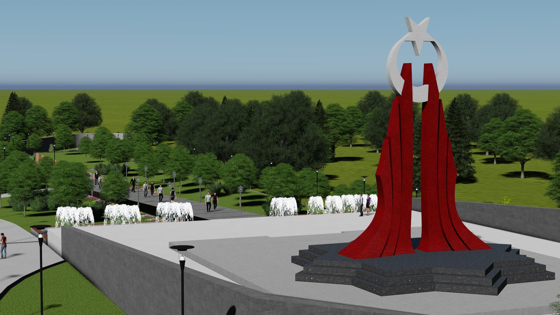 Projenin en özellikli yapılarından biri ise 12 metre 28 santim yüksekliğe sahip şehitlik anıtı olacak. 120 metrekarelik alan üzerine konuşlandırılacak anıtta tema olarak şehitlere verilen önem işlendi. Sağ ve sol yanında 3’lü formlardan oluşan 2 ana ayak sayesinde ayakta duran anıtın en üst kısmında ise bağımsızlığın simgesi olan dev bir ay yıldız bulunacak. Dernek birimleri, müze, sosyal alanları ile birlikte tören alanı, müze tüneli ve çevre düzenlemeleriyle hem şehitlere vefa borcu yerine getirilecek hem de Bursa görkemli bir meydana kavuşmuş olacak.