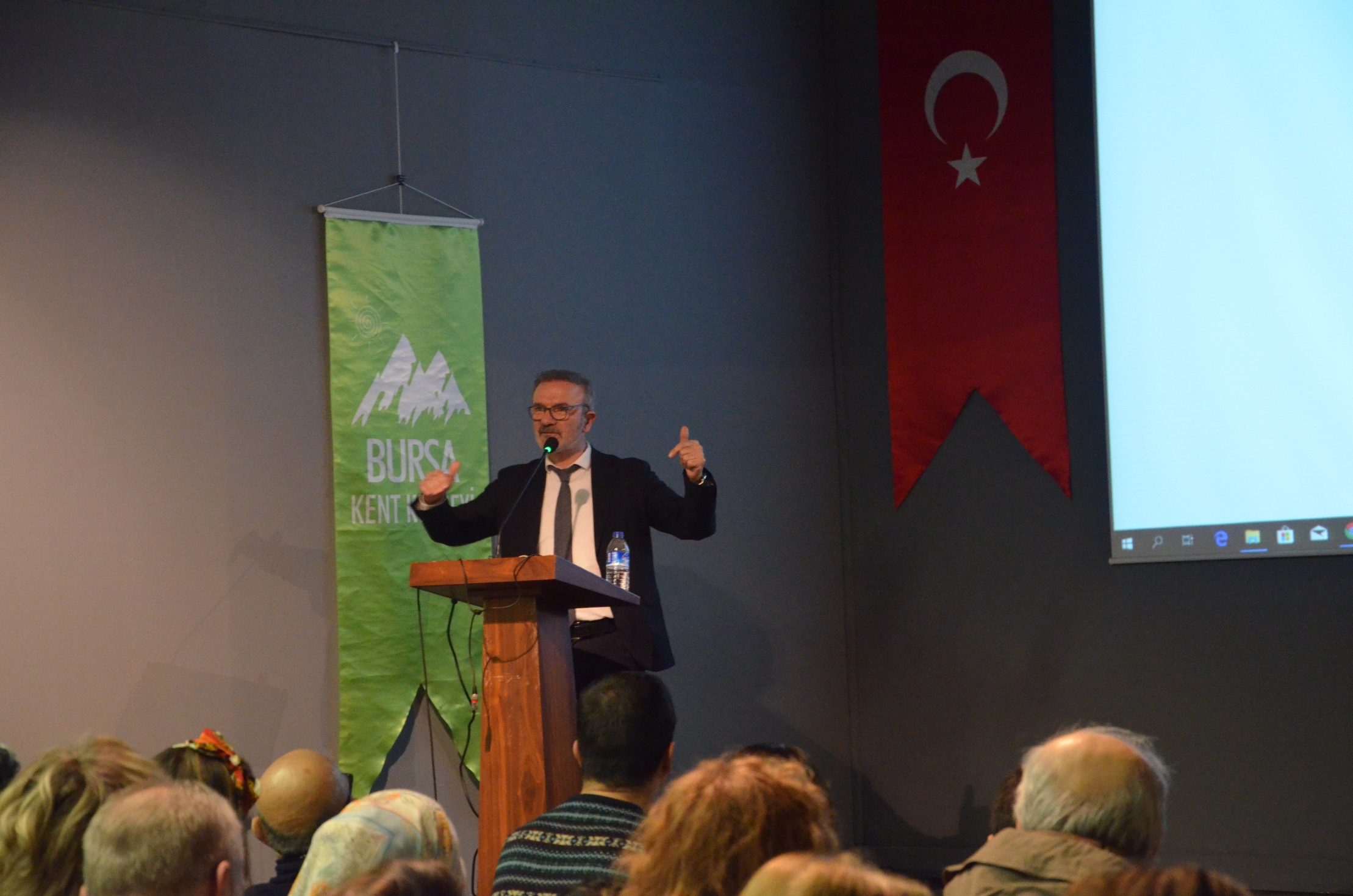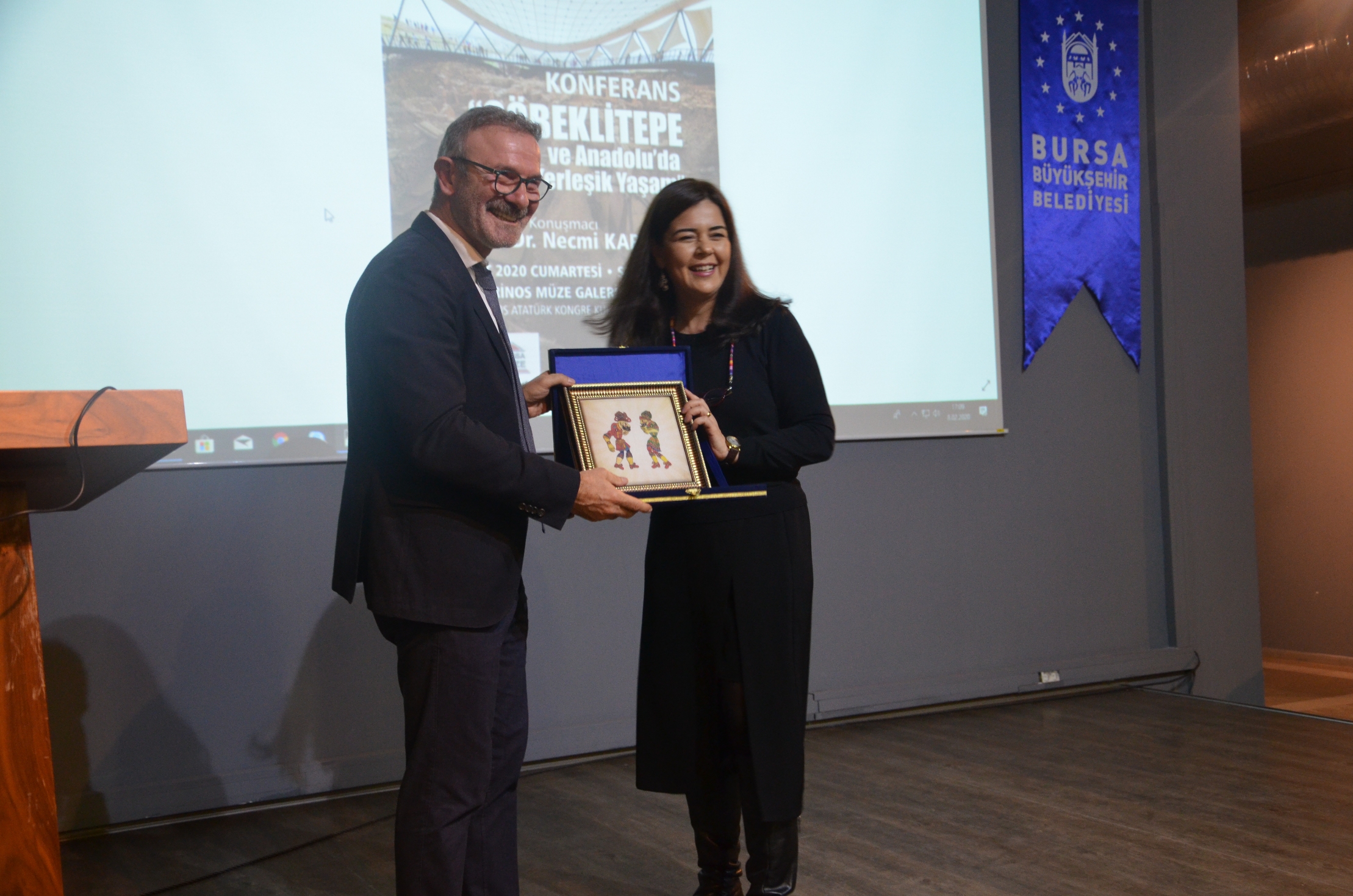 Bölgenin arkeolojik yapısı ve verilerinin, Göbeklitepe’nin tek başına bir yerleşim olmadığına dikkat çeken Prof. Dr. Karul, Göbeklitepe veya benzeri arkeolojik değerler, bir taraftan evrensel kültür tarihinin birer parçası; ama diğer taraftan da bizim ülkemizde olan değerler olması açısından ayrı bir konuma sahip. Bize, bu evrensel kültür tarihinin bir parçasını araştırmak, bu konuda bilgi sahibi olmamız dışında, ayrıca bir de sorumluluk yüklüyor. Bu dönemde barınak konuta, konut eve dönüşüyor. Yani ilk barınaklar, yuvarlak kulübeler, zamanla daha ustaca inşa edilmiş dörtgen planlı yapılara dönüşüyor. Kavramsal olarak da bir konut, artık insanlar için önemli bir kavram halini alıyor. Yuvarlağın yerine dörtgen planlı yapı yapmak demek, köşeyi yapabilmek demektir. Kendi kendini taşıyan duvarı yapabilmek demektir. Bugün köşeyi yaptığınız için gökdelenlere sahipsiniz. Bu binaları yapabilmenin özündeki mesele, bu teknolojik çözümlerden geçiyor” dedi. Göbeklitepe'deki yapılara benzeyen ve ilk belirlemelere göre neolitik döneme ait "T" biçiminde 250'nin üzerinde dikilitaşın bulunduğu Şanlıurfa'daki Karahantepe kazı çalışmalarına da değinen Karul, yaptıkları yüzey araştırması sırasında buradaki dikili taşların Göbeklitepe ile aynı dönemde olduğunu belirlediklerine dikkat çekti. Göbeklitepe'nin "T" biçimindeki dikili taşlarla ayırt edilen yerlerden bir tanesi olduğuna ve tek bir dönemi ifade etmediğine vurgu yapan Prof. Dr. Karul, Anadolu’daki yerleşik yaşam üzerine de önemli bilgiler verdi. Karul, Göbeklitepe'deki yaşam 'T' biçimindeki taşlardan oluşan bir dönemden de ibaret değil. Çok daha uzun bir süreci yansıtıyor, 700 - 800 yıllık bir yerleşim yahut kullanım söz konusu. Karahantepe'nin de bu sürenin içerisinde bir yere oturduğu kesin. Daha uzun bir süreyi kapsayabilir, öncesinden başlayabilir” diye konuştu. Konferansın sonunda Bursa Kent Konseyi ve Büyükşehir Belediyesi Müzeler Şube Müdürlüğü adına Sanat Tarihçisi Dilek Yıldız Karakaş, Prof. Dr. Necmi Karul’a üzerinde Karagöz ve Hacivat tasviri bulunan ipek işlemeli tablo takdim etti.