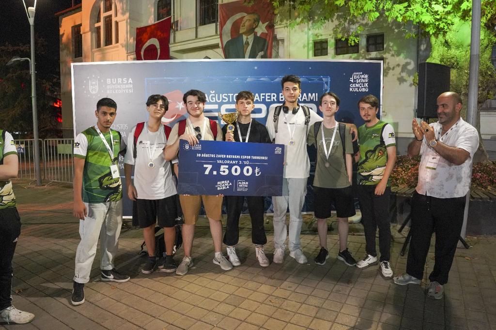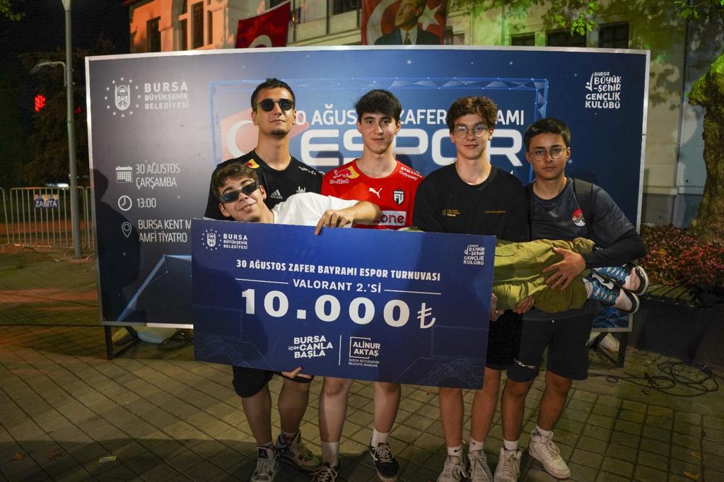 Bursalı gençler, e-spor turnuvasını alana kurulan dev ekranlardan takip etme fırsatı buldu. Birinci olan takım 20 bin TL, ikinci olan takım 10 bin TL, üçüncü olan takım 7.500 TL, dördüncü olan takım ise 5 bin TL ile ödüllendirildi.