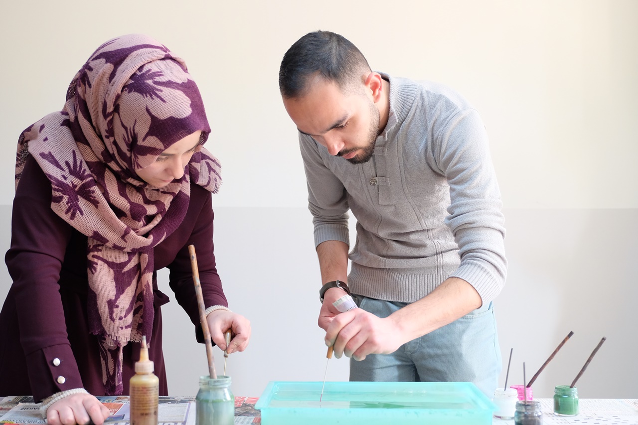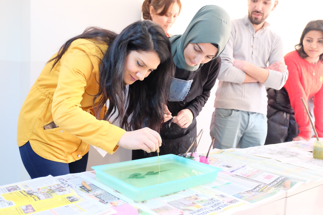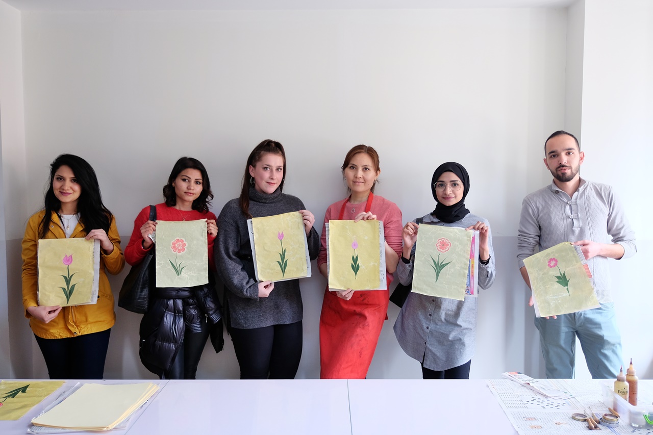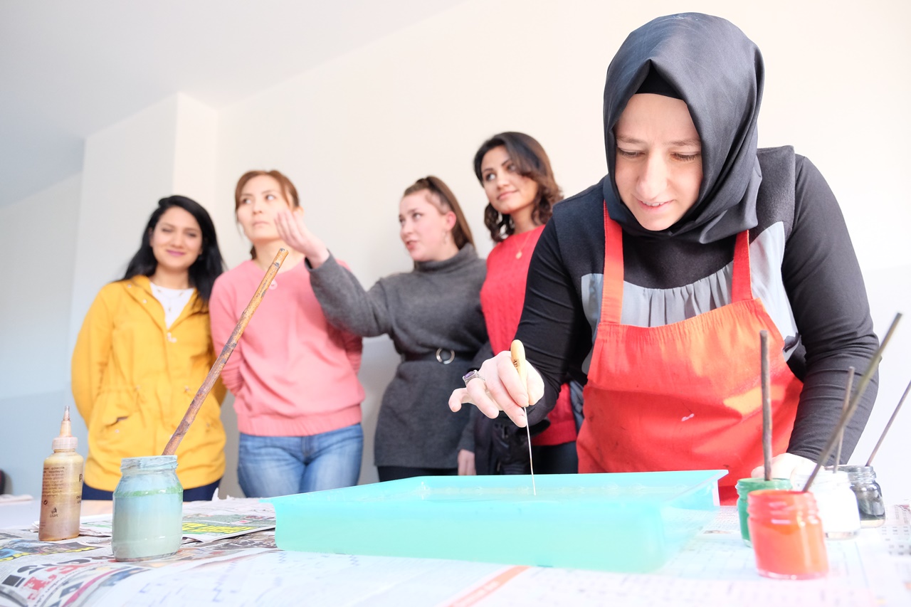 BURSA - Türkçe ve Yabancı Dil Uygulama ve Araştırma Merkezi’nin (TÖMER) yürüttüğü çalışma kapsamında dünyanın dört bir yanından Türkiye’ye gelen yüze yakın öğrenci, BUSMEK tarafından düzenlenen Ebru workshopuna katılarak Geleneksel Türk İslam Sanatını uygulama fırsatı buldular.