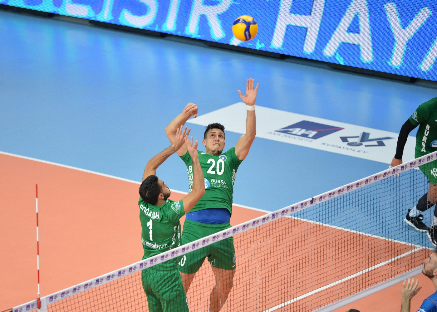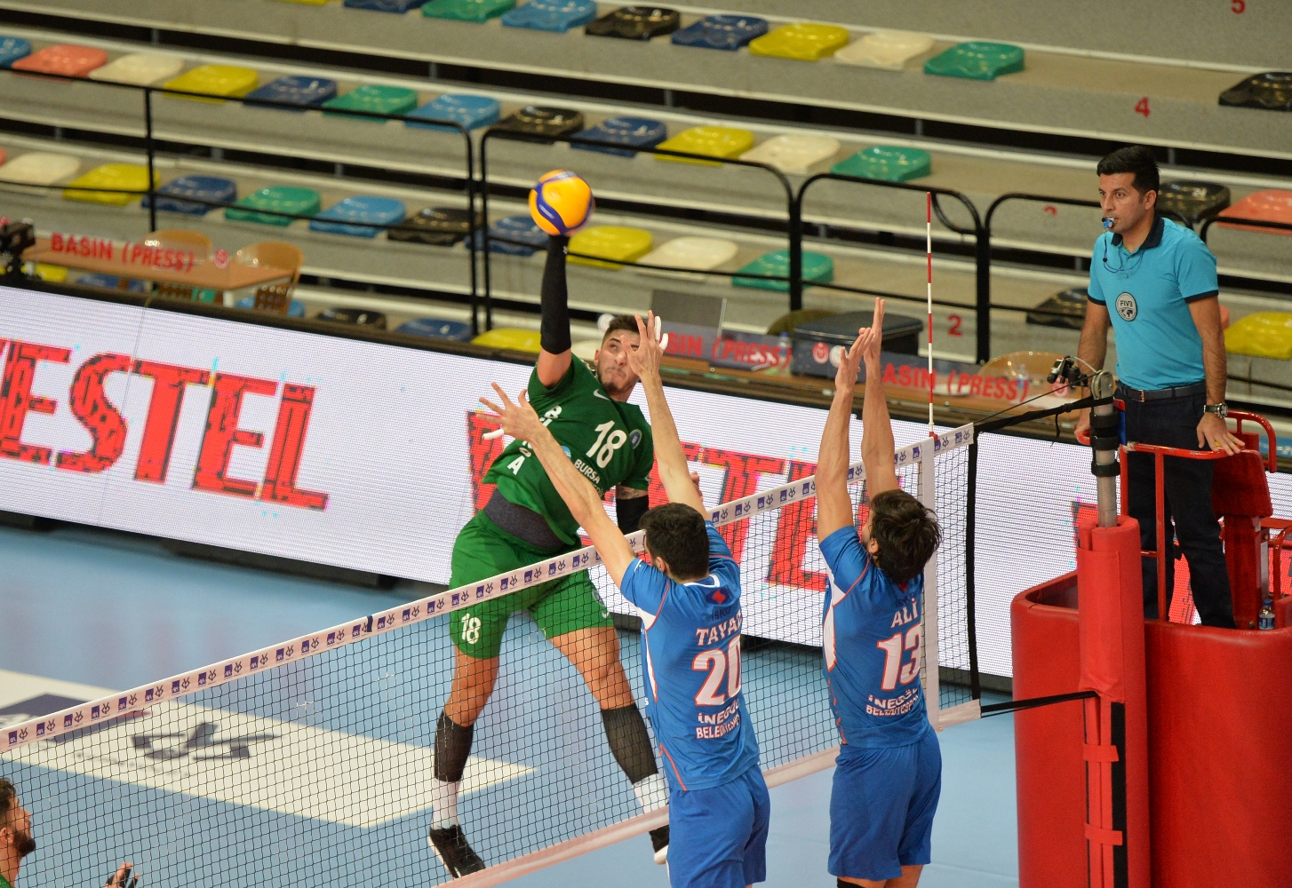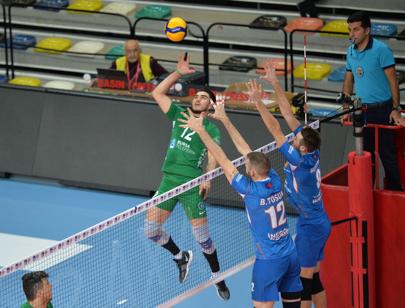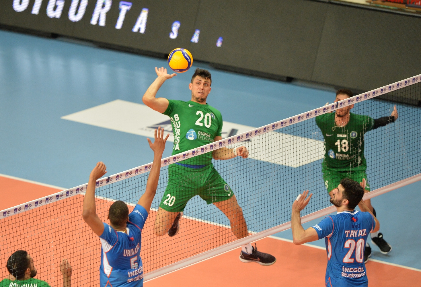 Bursa Büyükşehir Belediyespor Kulübü Erkek Voleybol Takımı, AXA Sigorta Kupa Voley birinci tur ikinci maçında İnegöl Belediyespor’u ağırladı. İlk maçı 3-1 kaybetmenin dezavantajıyla maça başlayan yeşil-beyazlılar, ilk sette rakibini bloklarla durdurdu. Köşelerde Alisson ile etkili hücumlar yakalayan Bursa ekibi, seti 25-19 önde bitirerek setlerde 1-0 öne geçti. Maçın ikinci setinde servis hataları yapan Bursa Büyükşehir Belediyespor son bölümlere kadar seti geriden takip etse de Boğaçhan’ın etkili paslarını iyi değerlendiren yeşil-beyazlılar bu seti de 25-21 ile önde geçti (2-0). Maçın üçüncü setinde de file üstünlüğünü yakalayan Bursa Büyükşehir Belediyespor oldu. Sharifi, Alisson ve Uğur ile hücumlardan sonuç alan yeşil-beyazlılar seti 25-19 alırken maçı 3-0 ile altın sete taşıdı.