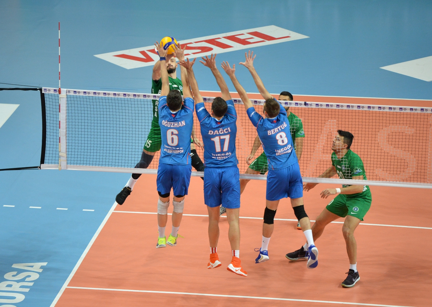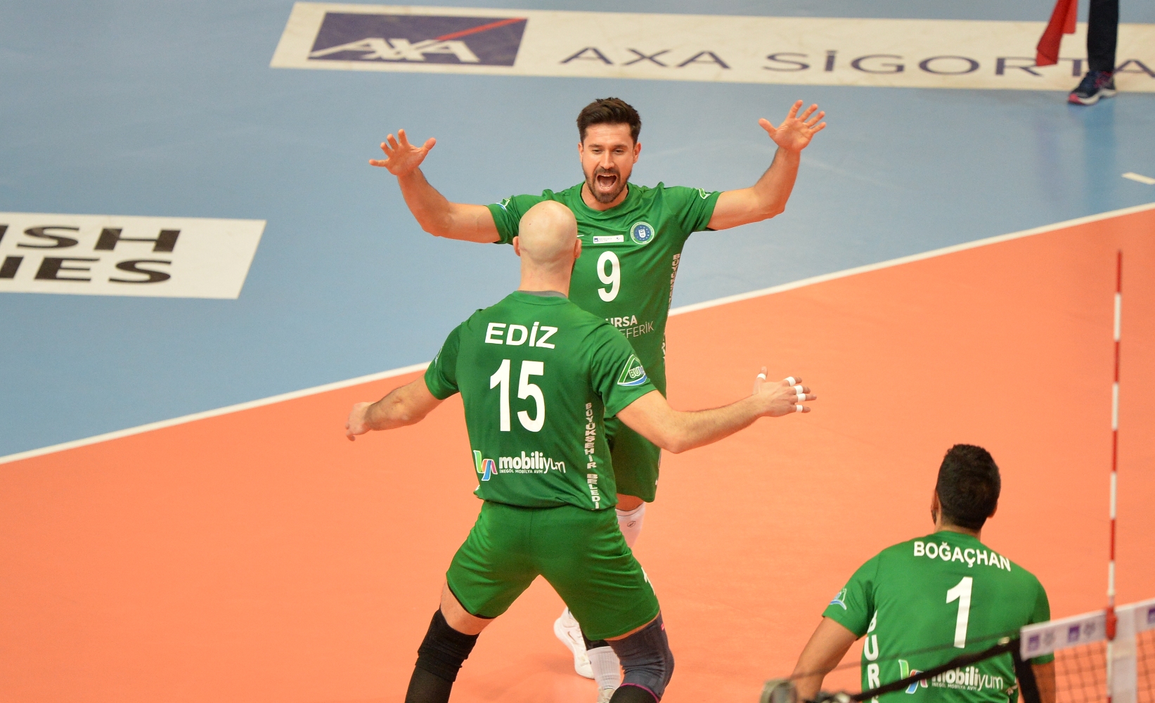 BURSA – Bursa Büyükşehir Belediyespor Kulübü Erkek Voleybol Takımı, AXA Sigorta Kupa Voley birinci tur rövanş maçında İnegöl Belediyespor’u 25-19, 25-21, 25-19 setlerle önce 3-0 ardından altın sette 15-10 geçerek çeyrek finale yükseldi.