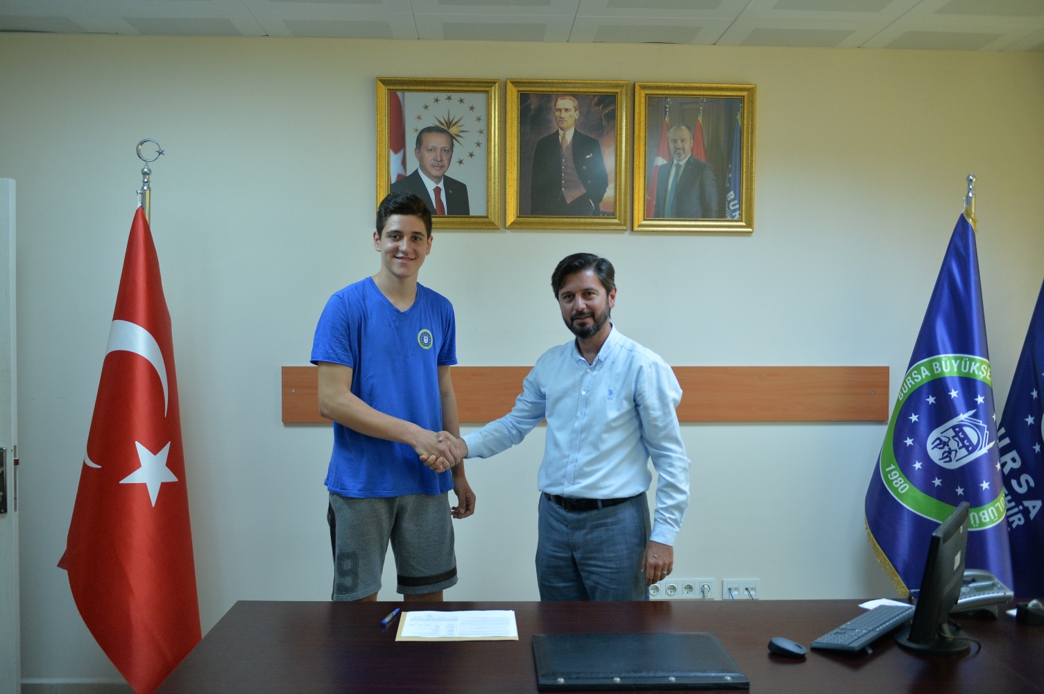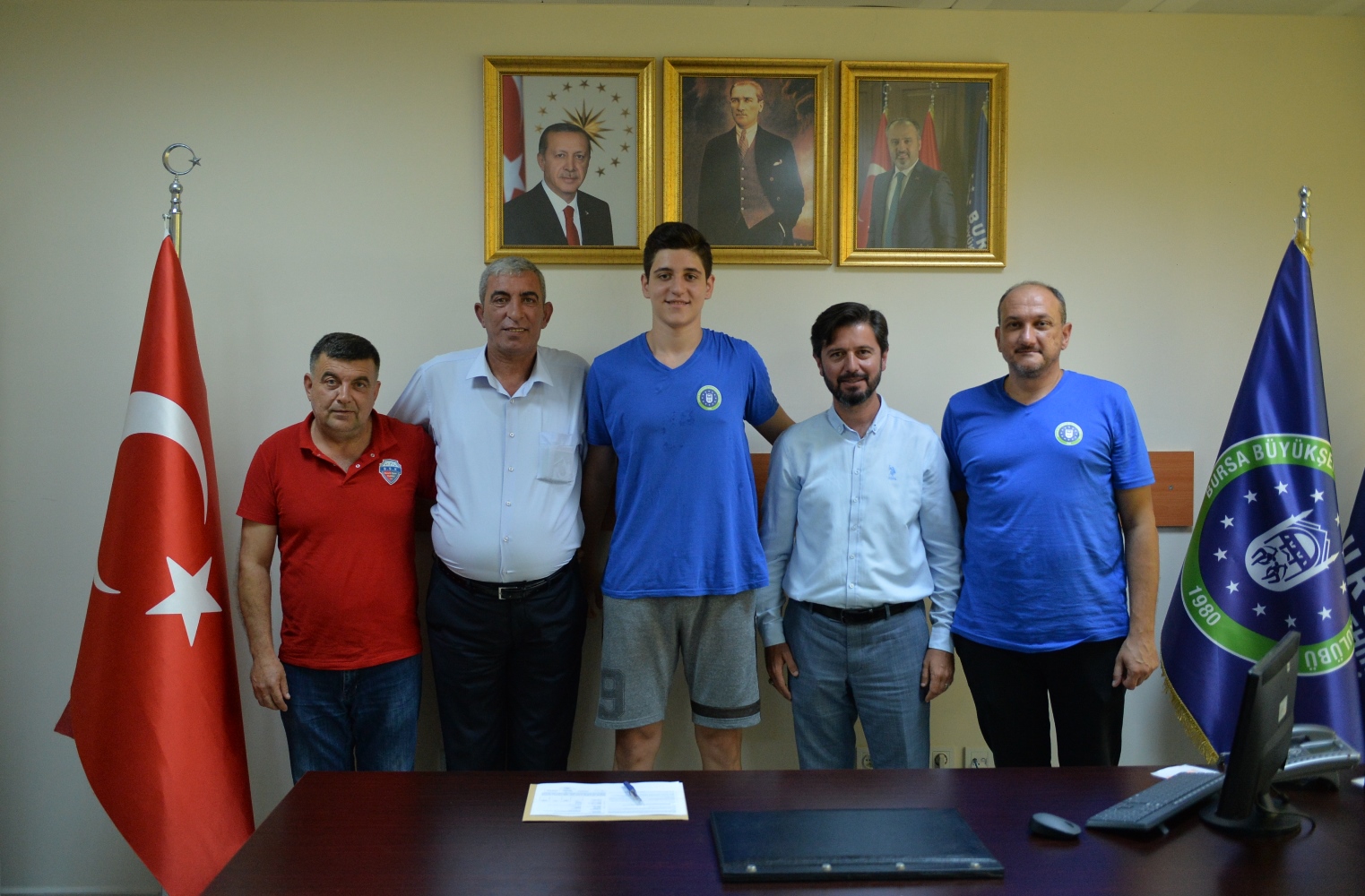Efeler Ligi’nde mücadele eden Bursa Büyükşehir Belediyespor Kulübü kadrosunu güçlendirmeye devam ediyor. Yeşil-beyazlılar Bosch Spor Kulübü’nde forma giyen ve Türkiye alt yaş milli takımlarında forma giyen 15 yaşındaki smaçör Berk Dilmenler’i transfer etti. Büyükşehir Belediyesi Fethiye Spor Kompleksi’nde yapılan imza töreninde genç sporcunun yanı sıra, baba Burhan Dilmenler, Büyükşehir Belediyespor Kulübü yönetim kurulu üyeleri Ömer Cihat Bay, Murat Mestan, Kulüp Müdürü Yüksel Arslan ile Bosch Spor Kulübü yöneticileri, Murat Çalışkan, Yusuf Dokur, Özkan Özdamar ve Mustafa Alsun katıldı.