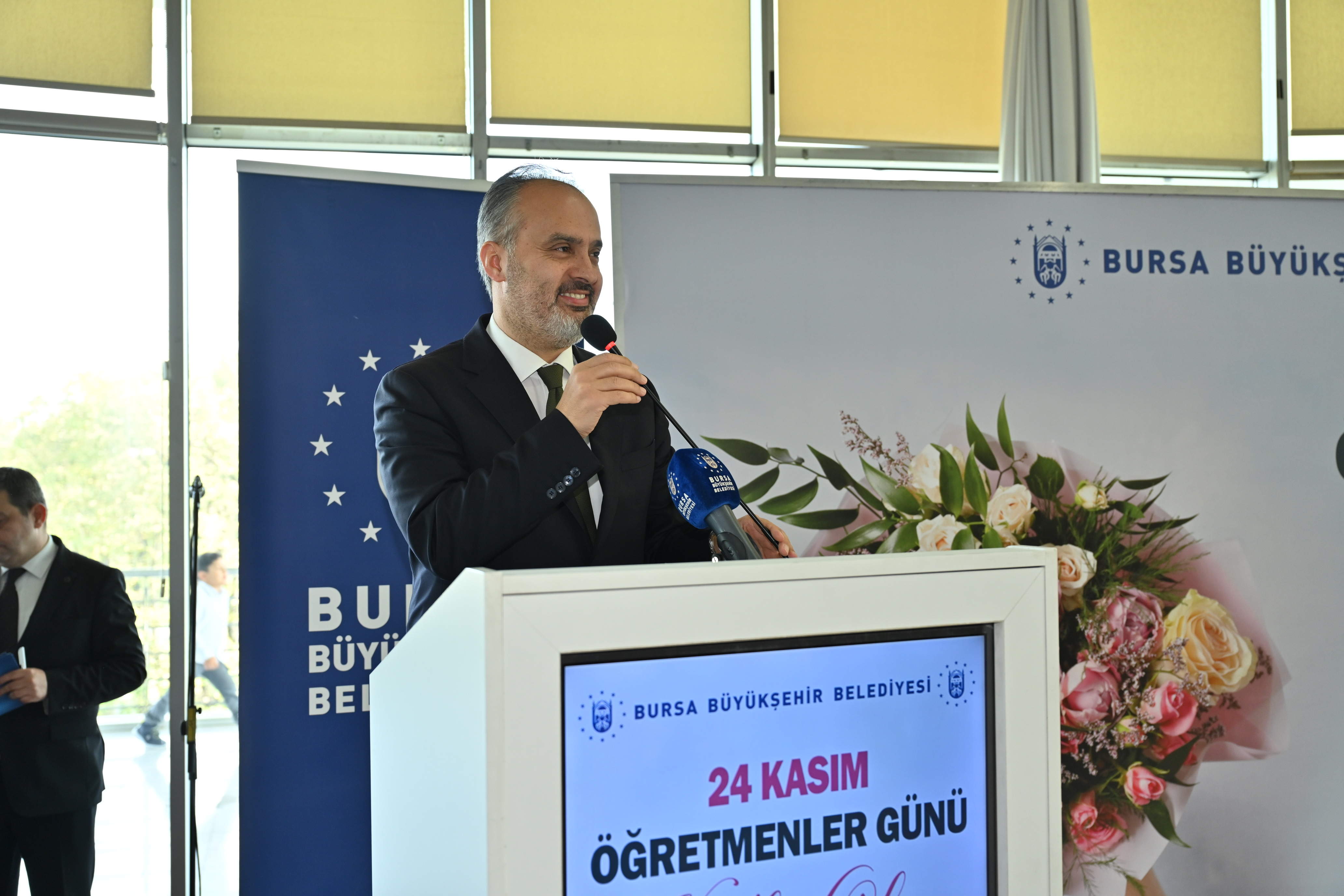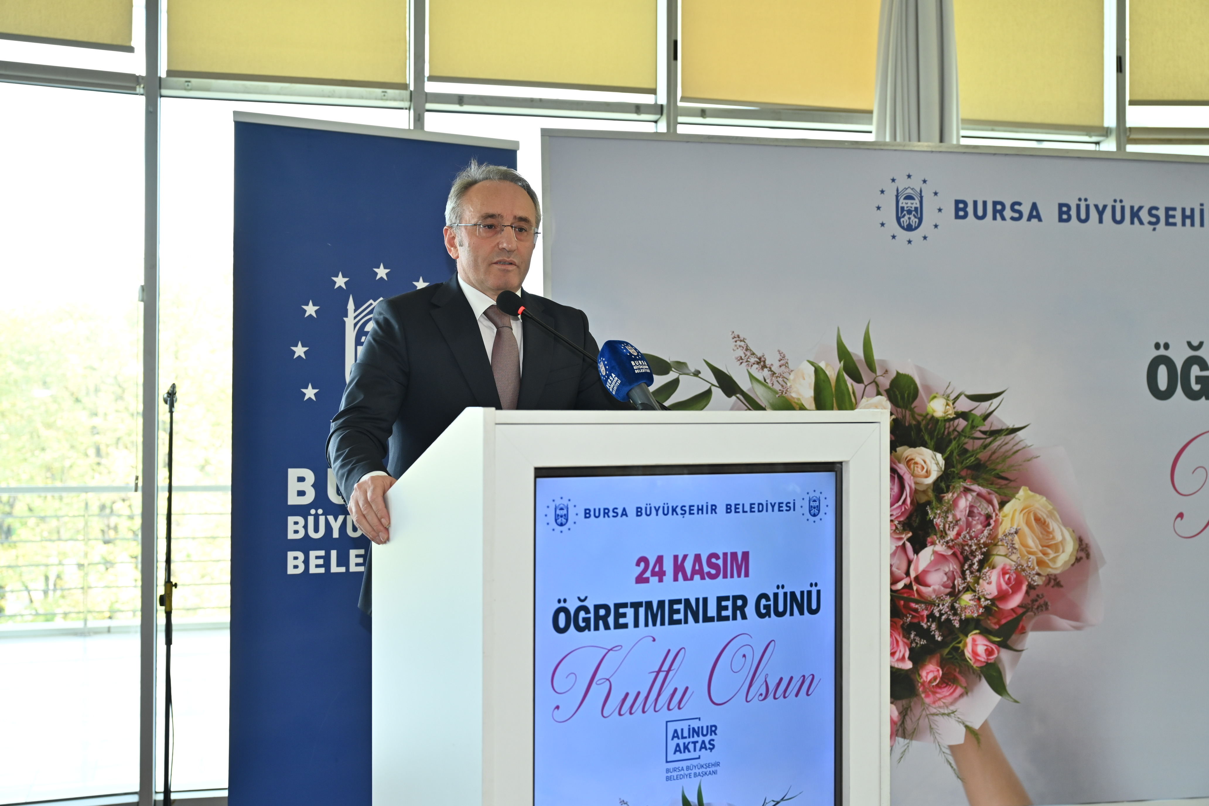 Büyükşehir Belediye Başkanı Alinur Aktaş ise, “Öğretmenler gününüz kutlu olsun, Cenab-ı Allah nice uzun yıllar sağlıkla keyifle bu işi yapmayı nasip etsin. Öğretmenlik fedakârlık gerektiren bir iş. Bir önceki kutlama etkinliğinde Bursa Valimiz 'Tutkuyla başlayan fedakârlıkla devam eden ve büyük bir kara sevdaya dönüşen mesleğin adı öğretmenliktir' dedi. Katılıyorum. Öğretmenlik, bir insana şekil vermeye çalışmak, onları hayata hazırlamaktır. Zor bir iş yapıyorsunuz. Bugün burada 260 civarı farklı okuldan öğretmenlerimizle bir aradayız. Büyükşehir Belediyesi olarak bizde küçük bir ilçenin milli eğitim müdürlüğü gibi olmuşuz. 530 öğretmeni olan eğitimler veren kurum haline dönüştük. Ekip arkadaşlarıma çok teşekkür ediyorum. Geleceğimizin daha güzel, yarınlarımızın daha aydınlık, daha ferah ve huzurlu olması adına eğitim çalışmalarını, yatırımlarımızı sürdüreceğiz” dedi.