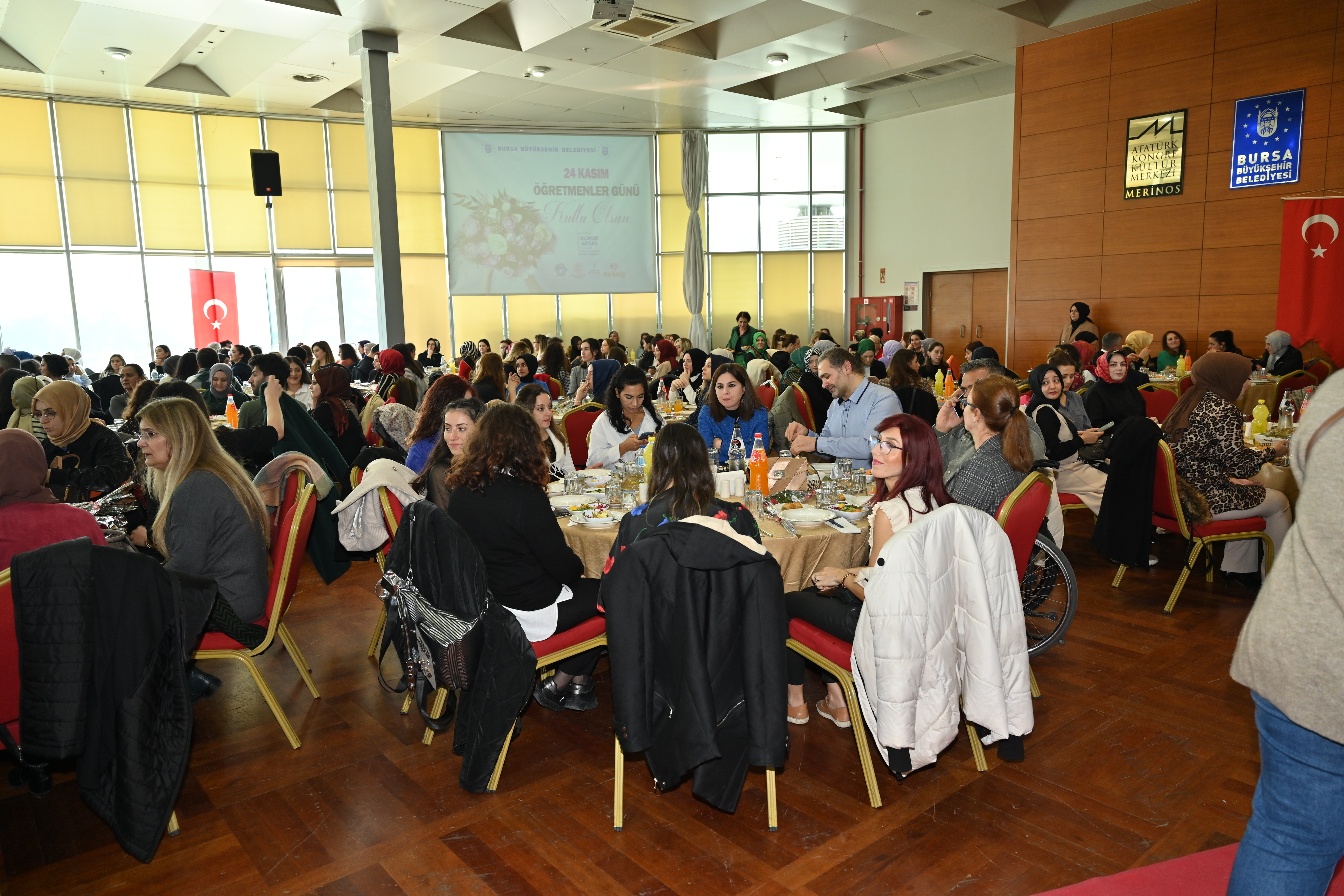 BUSMEK öğretmenleri adına konuşan Şerife Kutlu da “Mesleğini icra eden öğretmenleri onurlandırmak için Ulu Önder Atatürk’ün Başöğretmen olduğu 24 Kasım’da düzenlenen yemekte siz değerli meslektaşlarımla bir arada olmaktan dolayı mutluyum. Öğretmenler, Cumhuriyetimizin 100. yılında insanı ve insanlığı yücelten bireylerin öncüleridir. Bilimin, sanatın, aydınlığın kısacası insanı insan yapan tüm değerlerin yansıtıcısı ve yaşatıcısıdır. Yarınlarımızın aydınlık olması, eğitim ve öğretime verdiğimiz değer kadar olacaktır. Bunu başarmak adına hep birlikte çalışmalıyız. Değerli meslektaşlarım yenilikleri yakından takip etmeli, sürekli kendinizi geliştirmeli ve hayat boyu öğrenmeyi ihmal etmemeliyiz. Bugün fedakar öğretmenlerimizin ulusumuzca unutulmadığını gösteren bir gündür. Ayrıca ülkemiz ve Bursa’mız adına önemli eğitim projeleri gerçekleştiren Bursa Büyükşehir Belediye Başkanımız Alinur Aktaş’a ve İl Milli Eğitim Müdürümüz Dr. Ahmet Alireisoğlu’na teşekkür ediyorum. Gelişmeye, öğrenmeye katkı sağlayan tüm öğretmenlerin Öğretmenler Günü kutlu olsun” diye konuştu.