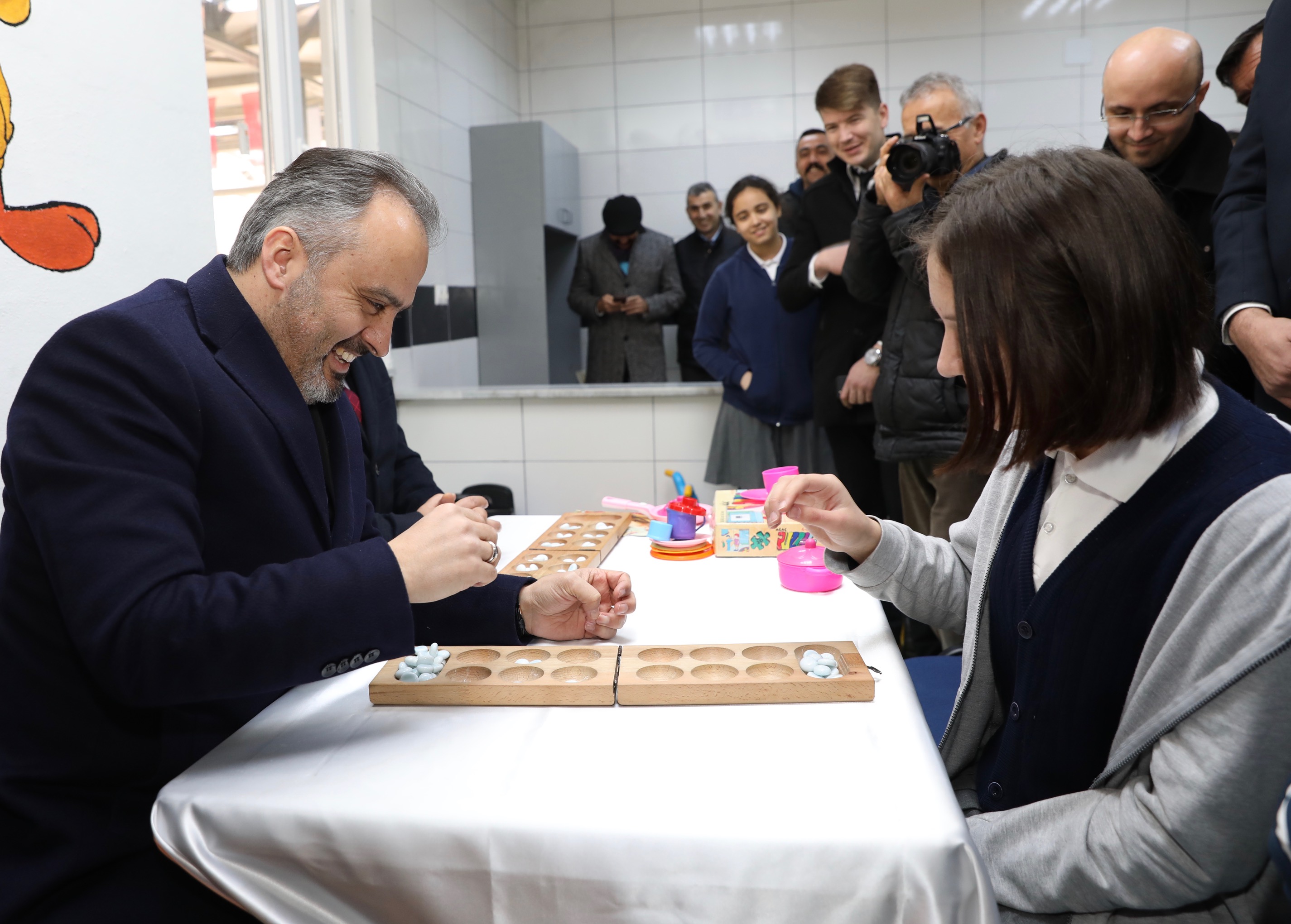 Başkan Aktaş, okul inşaatındaki incelemenin ardından Harmancık Belediyesi tarafından ilçeye kazandırılan Oyuncak Kütüphanesi'nin açılış töreninde de keyifli anlar yaşadı. Öğrencilerle mangala oynayan Başkan Aktaş, hem rakiplerinin hamlelerini dikkatle takip etti hem de onlarla sohbet etti.