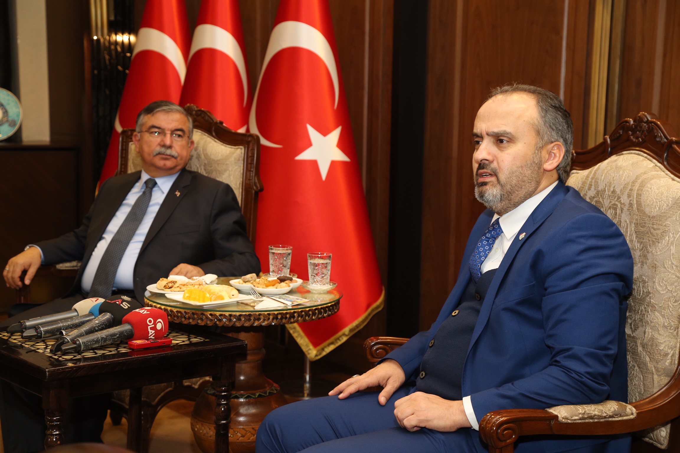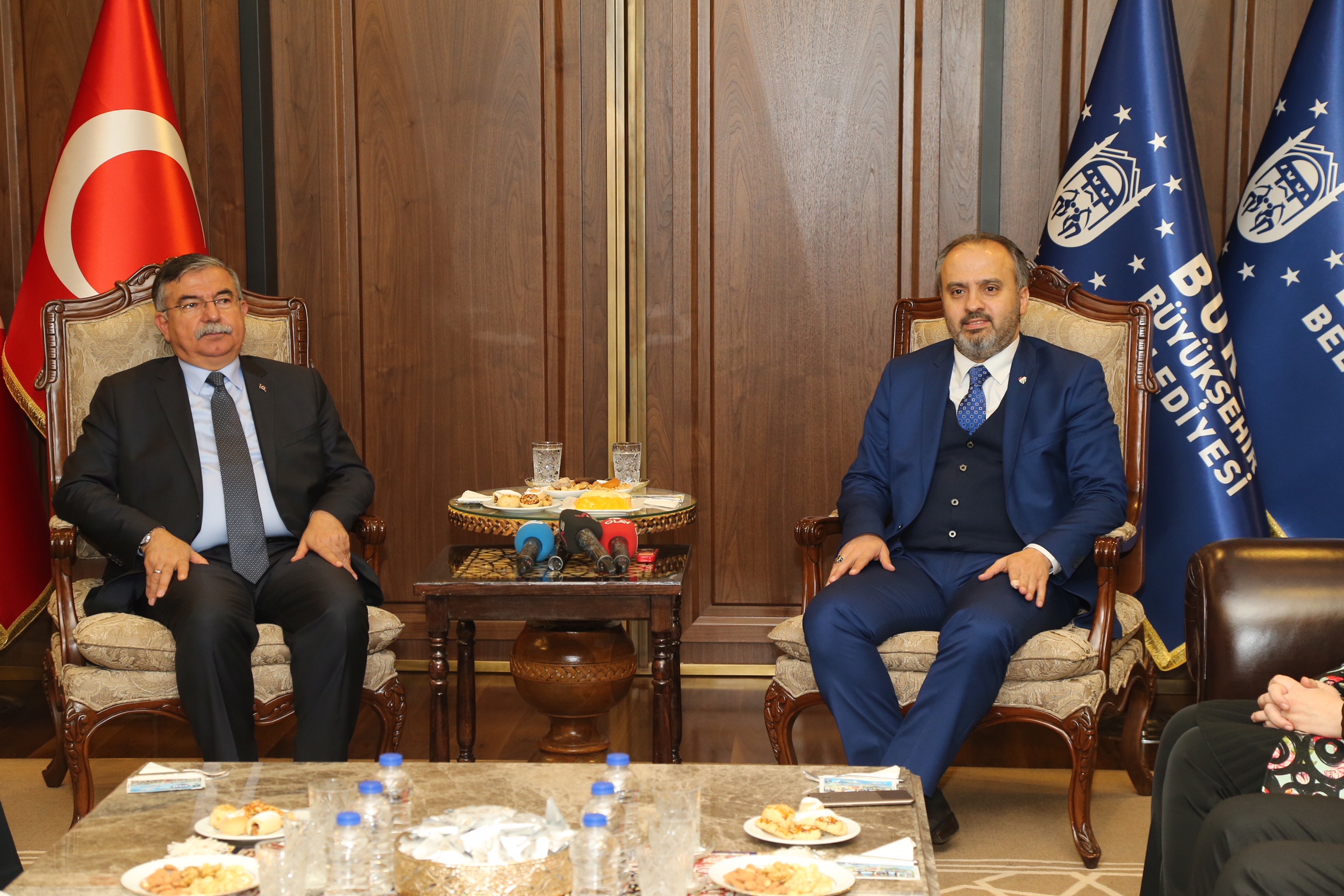 Yapımı tamamlanan eğitim kurumlarının açılışını yapmak için Bursa’ya gelen Milli Eğitim Bakanı İsmet Yılmaz, Büyükşehir Belediye Başkanı Alinur Aktaş’ı da yeni belediye binasında ziyaret etti. AK Parti Bursa Milletvekilleri Emine Yavuz Gözgeç ve Osman Mesten’in de katıldığı ziyarette konuşan Bakan Yılmaz, yeni görevinde başarılar dilediği Başkan Aktaş’ın, yüksekte aldığı bayrağı daha da yükseğe taşıyacağına inandığını söyledi.