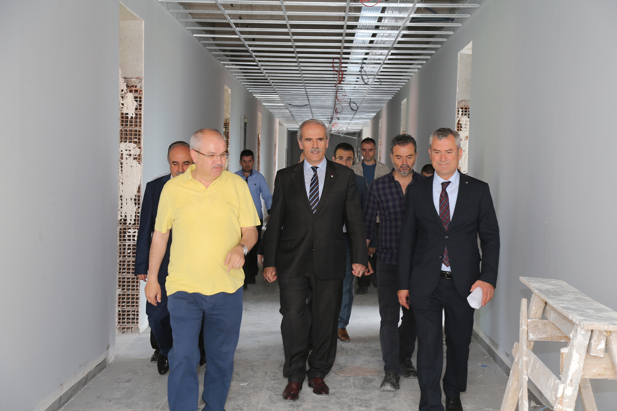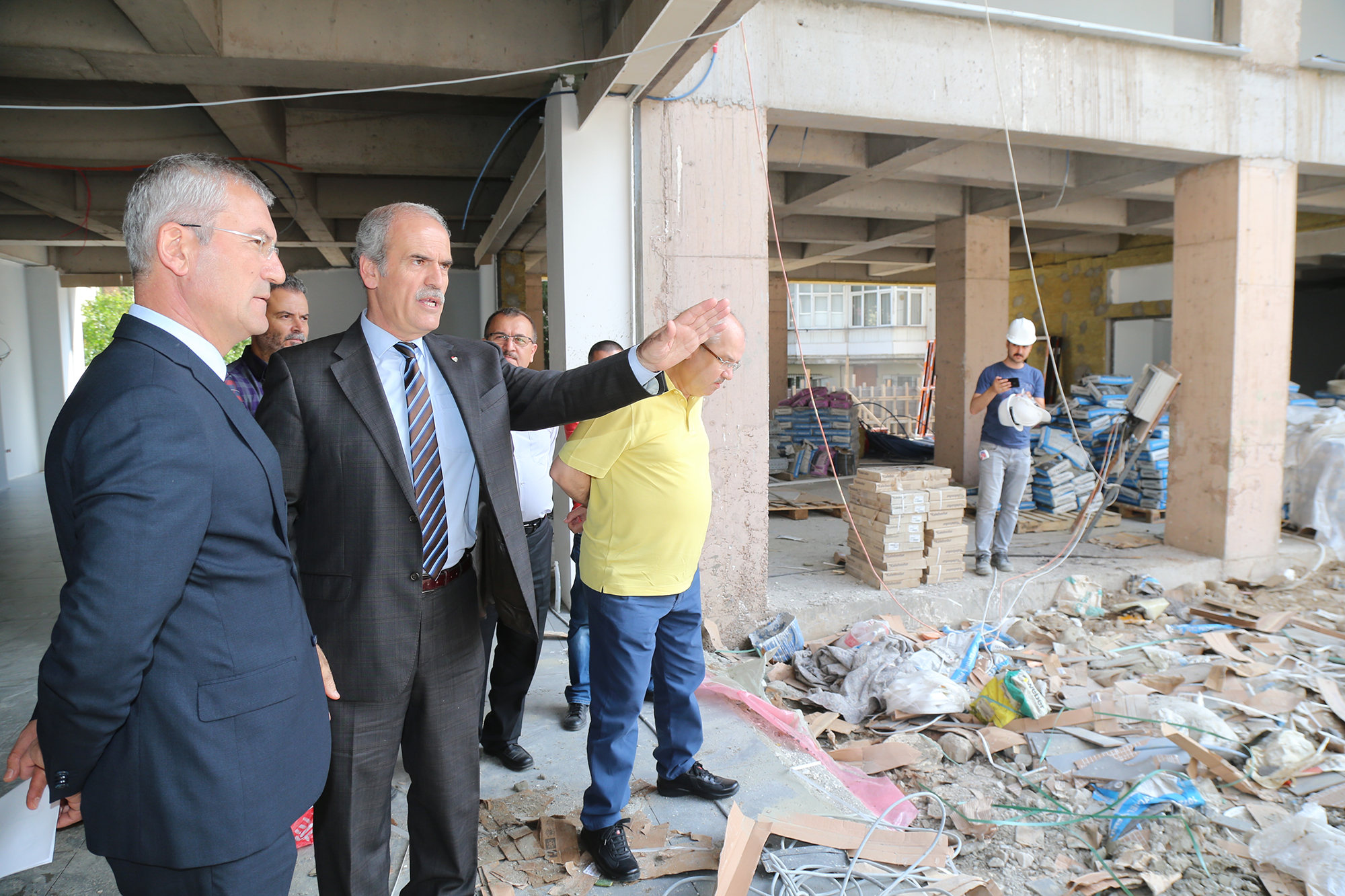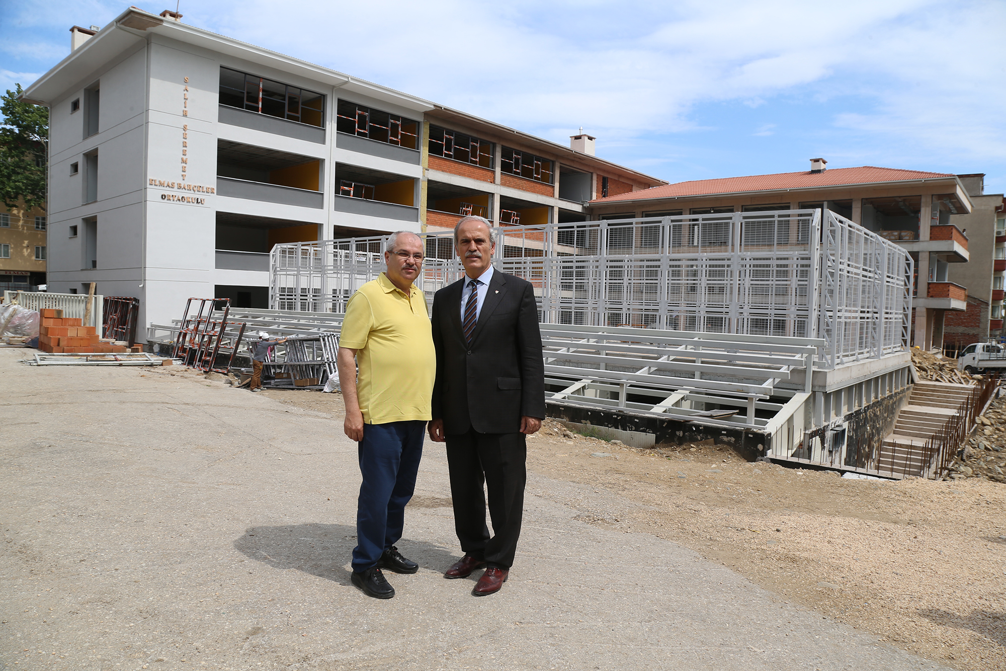 Büyükşehir Belediye Başkanı Recep Altepe, hayırsever işadamı Erdoğan Şeremet ile birlikte kaba inşaatı tamamlanan okulda incelemelerde bulundu.