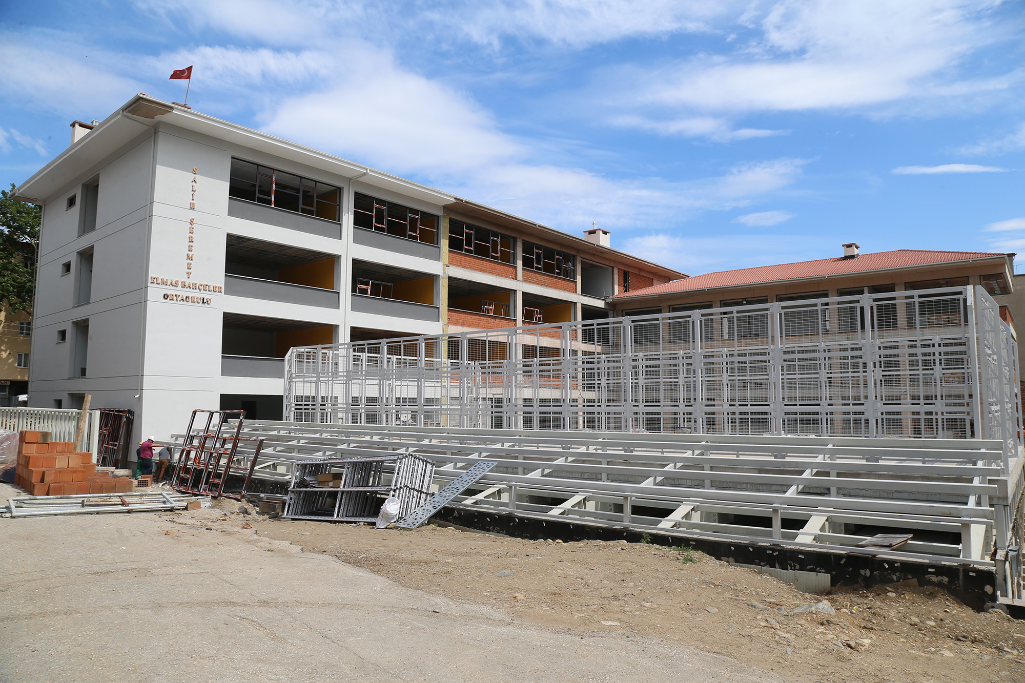 BURSA - Bursa Büyükşehir Belediyesi’nin hayırsever işadamı Erdoğan Şeremet ve Şeremet ailesinin katkılarıyla yenileme çalışmalarını sürdürdüğü Salih Şeremet Elmasbahçeler Ortaokulu’nun 2017 – 2018 döneminde eğitime açılması hedefleniyor.