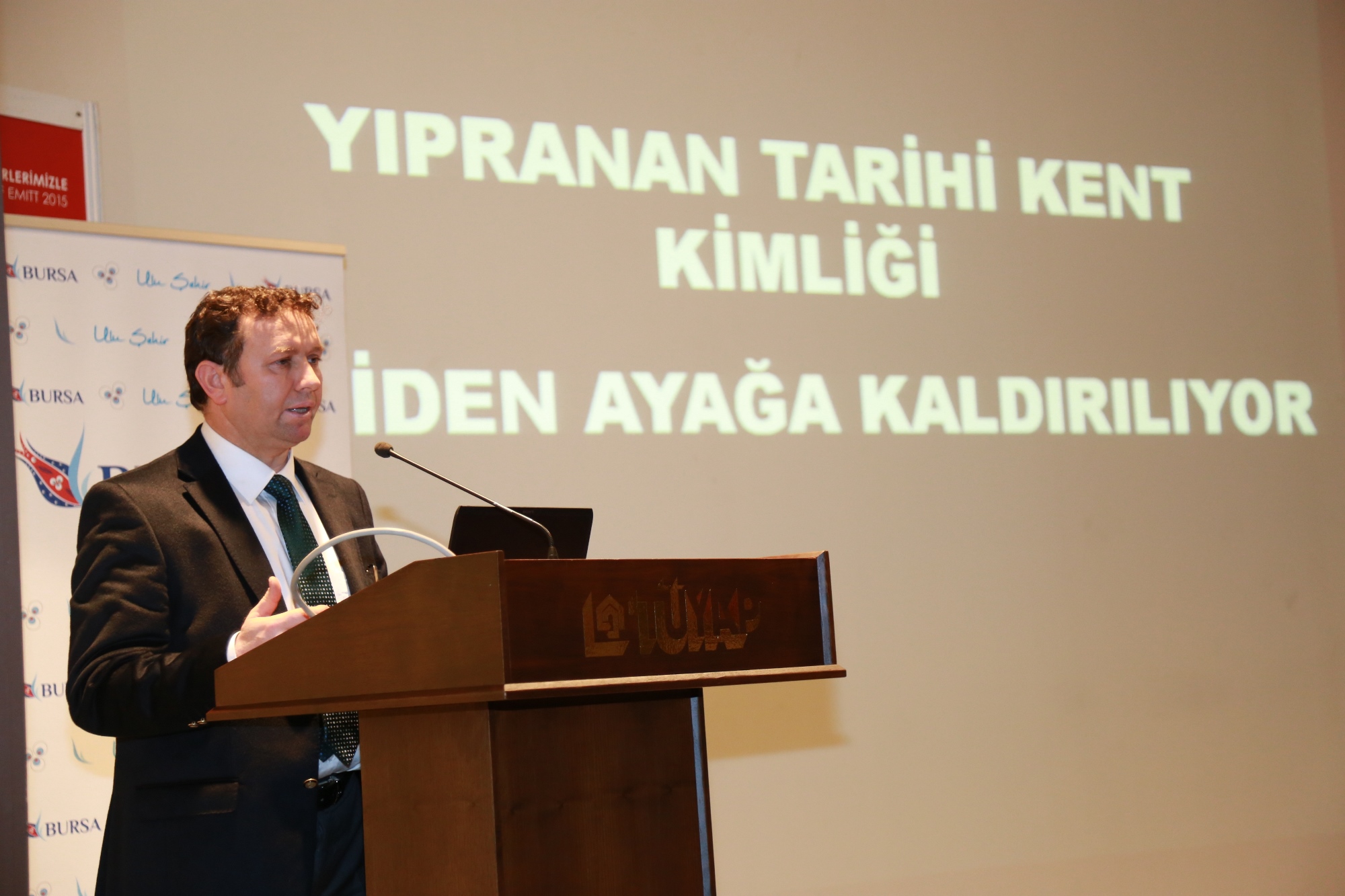 Bursa Büyükşehir Belediyesi Kültür ve Turizm Daire Başkanı Aziz Elbas, ‘Bursa’da Tarihi ve Kültürel Miras Çalışmaları’ başlıklı sunumunda, Büyükşehir Belediyesi’nin kentte gerçekleştirdiği faaliyetleri örneklerle anlattı. Elbas, Bursa’nın her köşesinde tüm değerlerin ayağa kaldırıldığını hatırlatarak, “Büyükşehir Belediyesi tarafından Bursa’da atıl haldeki tarihi yapıları işlevlendirerek kente kazandırdık. Kentte kaderine terk edilen tarihi yapılar, çalışmalarımızla yaşam alanları oluyor” dedi.