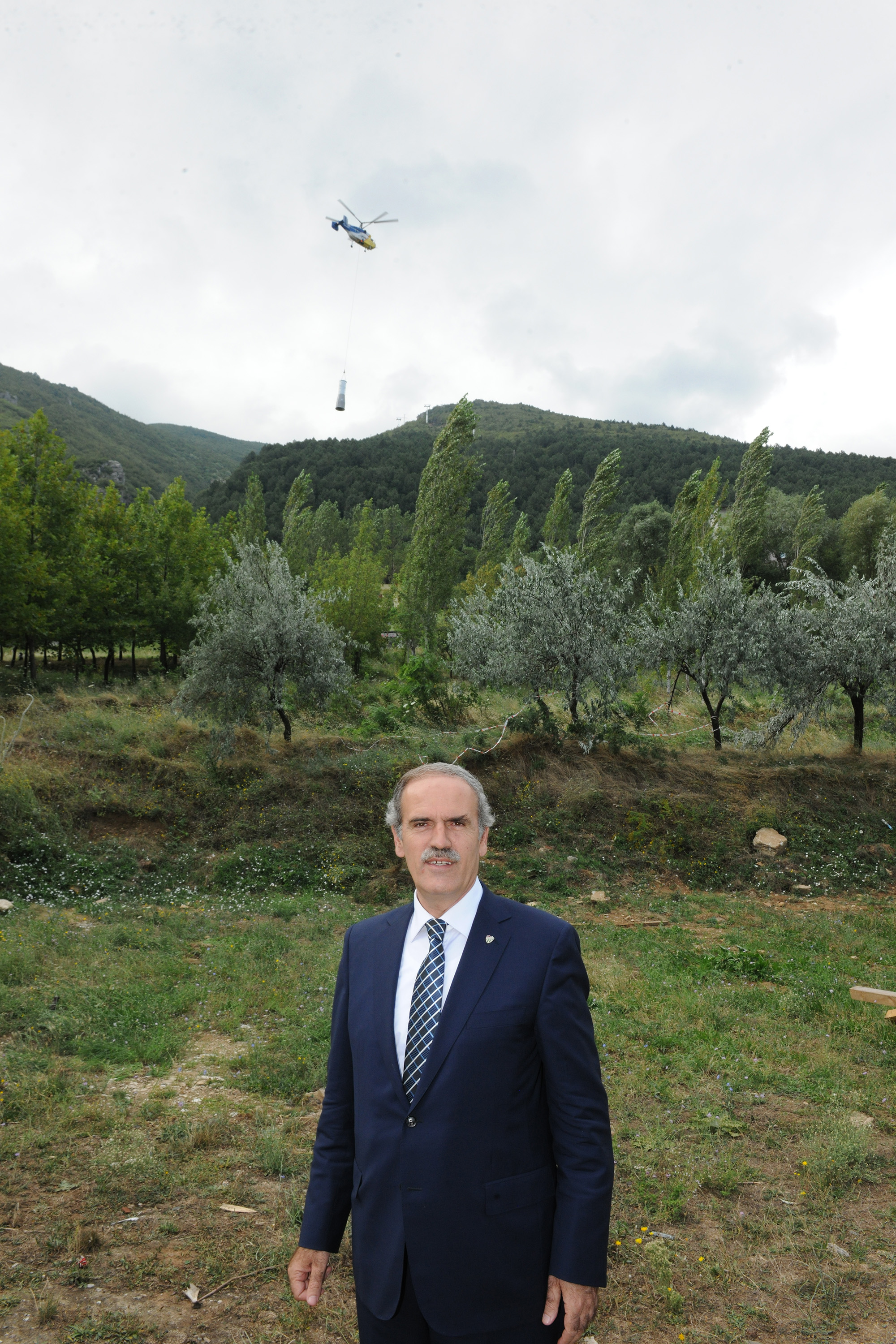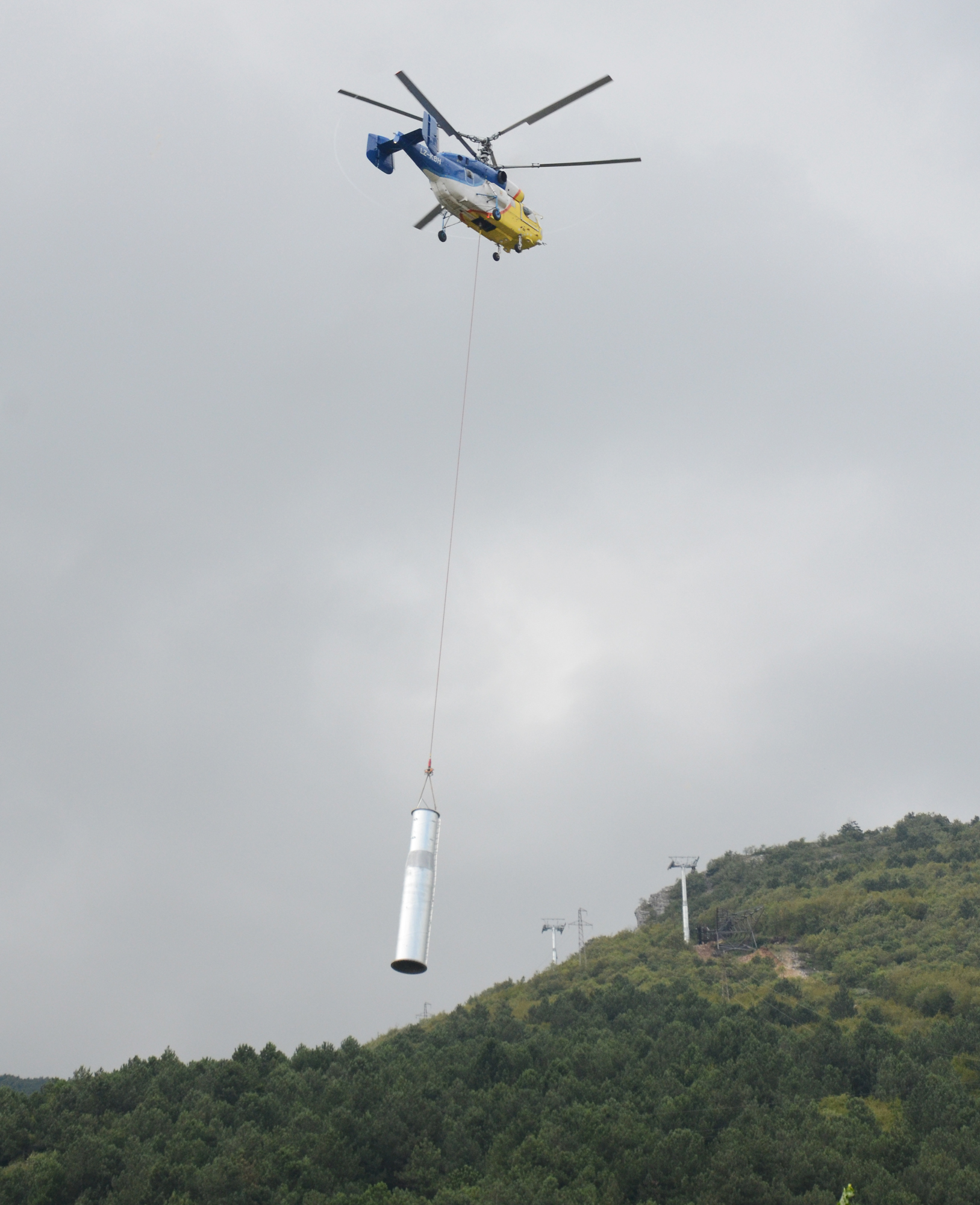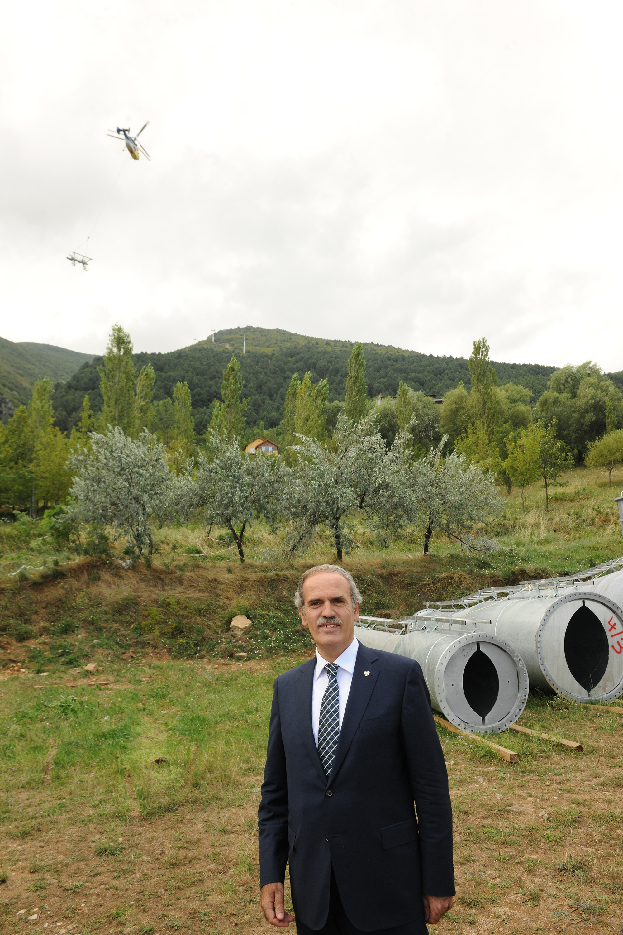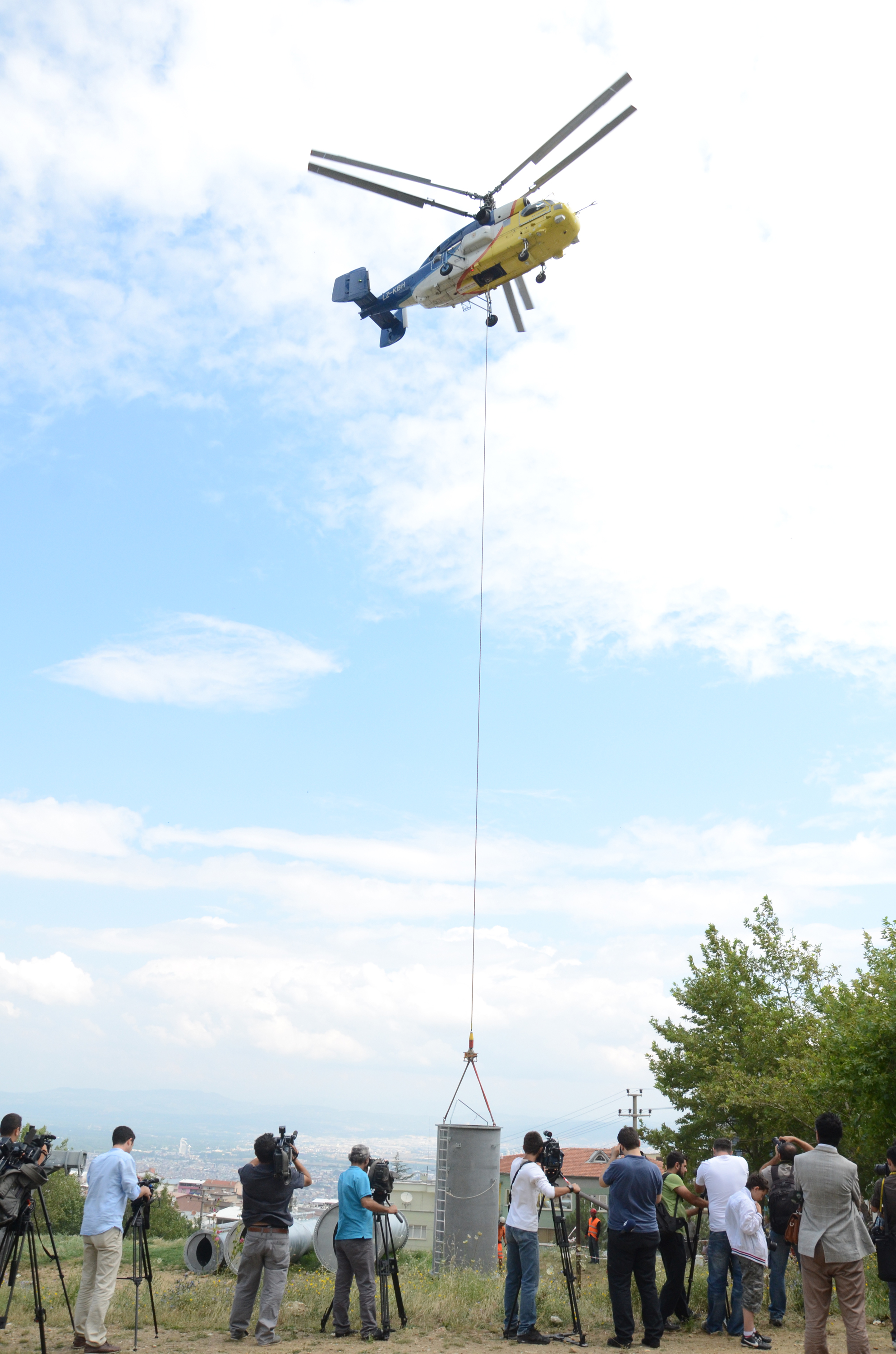 Uludağ’ın sadece kış aylarında değil yılın 12 ayı turizme kazandırılması çalışmalarını teleferik hattından başlatan Büyükşehir Belediyesi, 1955 yılında projelendirilip, 1963 yılında çalışmaya başlayan 50 yıllık teleferik hattının yerine 8 bin 874 metre ile dünyanın en uzun aktarmasız teleferik hattını inşa ediyor. Yap- işlet- devret modeliyle hayata geçirilen projede, mevcut eski hat ve direklerin sökümünün ardından yeni direklerin montajına başlandı. Teferrüç istasyonu ile Sarılan istasyonu arasındaki 24 direkten merkeze yakın olan 6 tanesinin montajı tamamlanırken, geçit vermeyen yamaçlarda kalan bölümlerin beton aksamları eski teleferik hattı sökülmeden tamamlanmıştı. Kalan 18 direğin montajı için karadan yol açılması halinde fazla sayıda ağacın kesileceğini belirleyen firma, çevreye zarar vermemek amacıyla bu direklerin montajını helikopterle gerçekleştirmeye karar verdi.