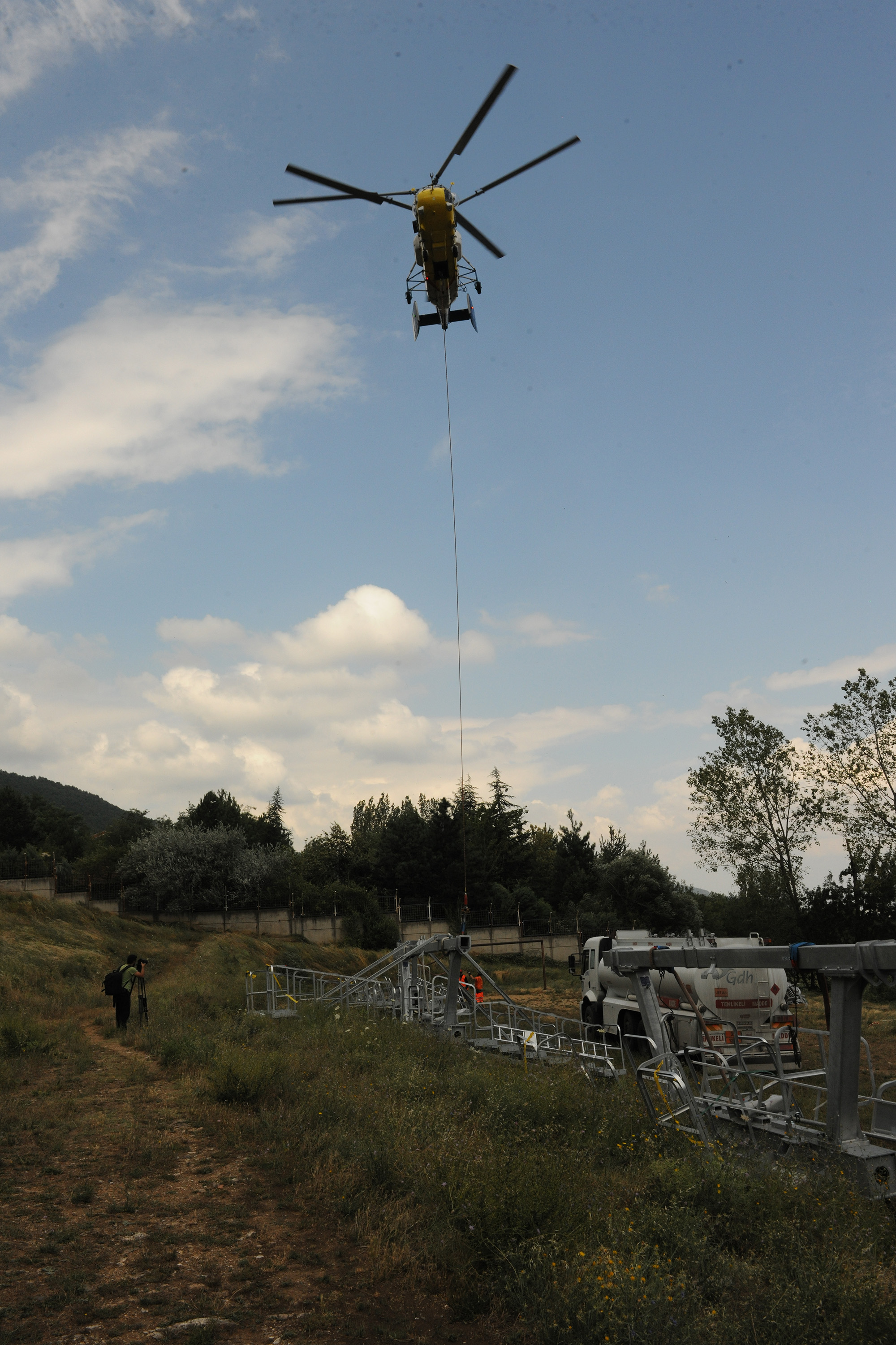 - BURSA BÜYÜKŞEHİR BELEDİYESİ TARAFINDAN 50 YIL SONRA YENİLENEN TELEFERİK HATTINDA, AĞIRLIĞI 4,5 TONU BULAN DİREK VE MALZEMELER HELİKOPTERLE TAŞINARAK HAVADAN MONTE EDİLİYOR.