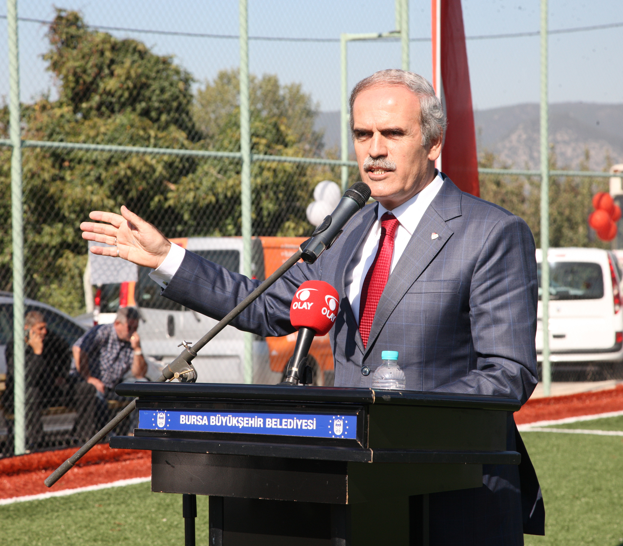 Gürsu Kaymakamı Mehmet Makas da yaptığı hizmetlerle Gürsu’yu güzelleştirdiği için Başkan Altepe’ye teşekkür ederek, “İyi ki varsınız. Futbol sahamız bölge gençlerine hayırlı olsun” dedi.