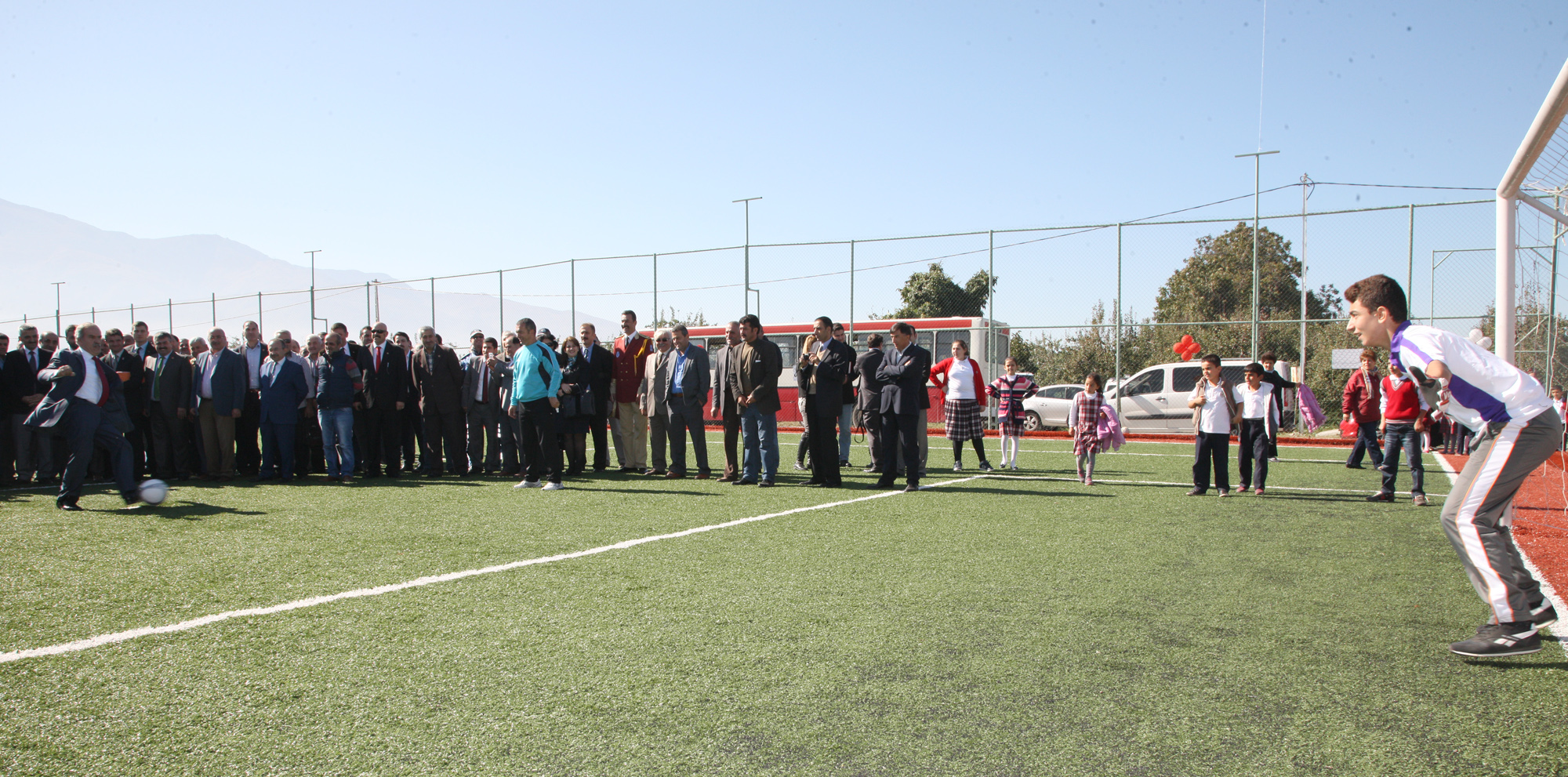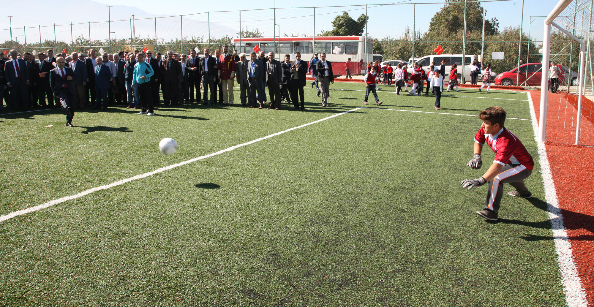 Konuşmaların ardından açılış kurdelesini kesen Başkan Altepe ve protokol üyeleri, daha sonra penaltı atışı yaparak, sahayı kullanıma açmış oldu.