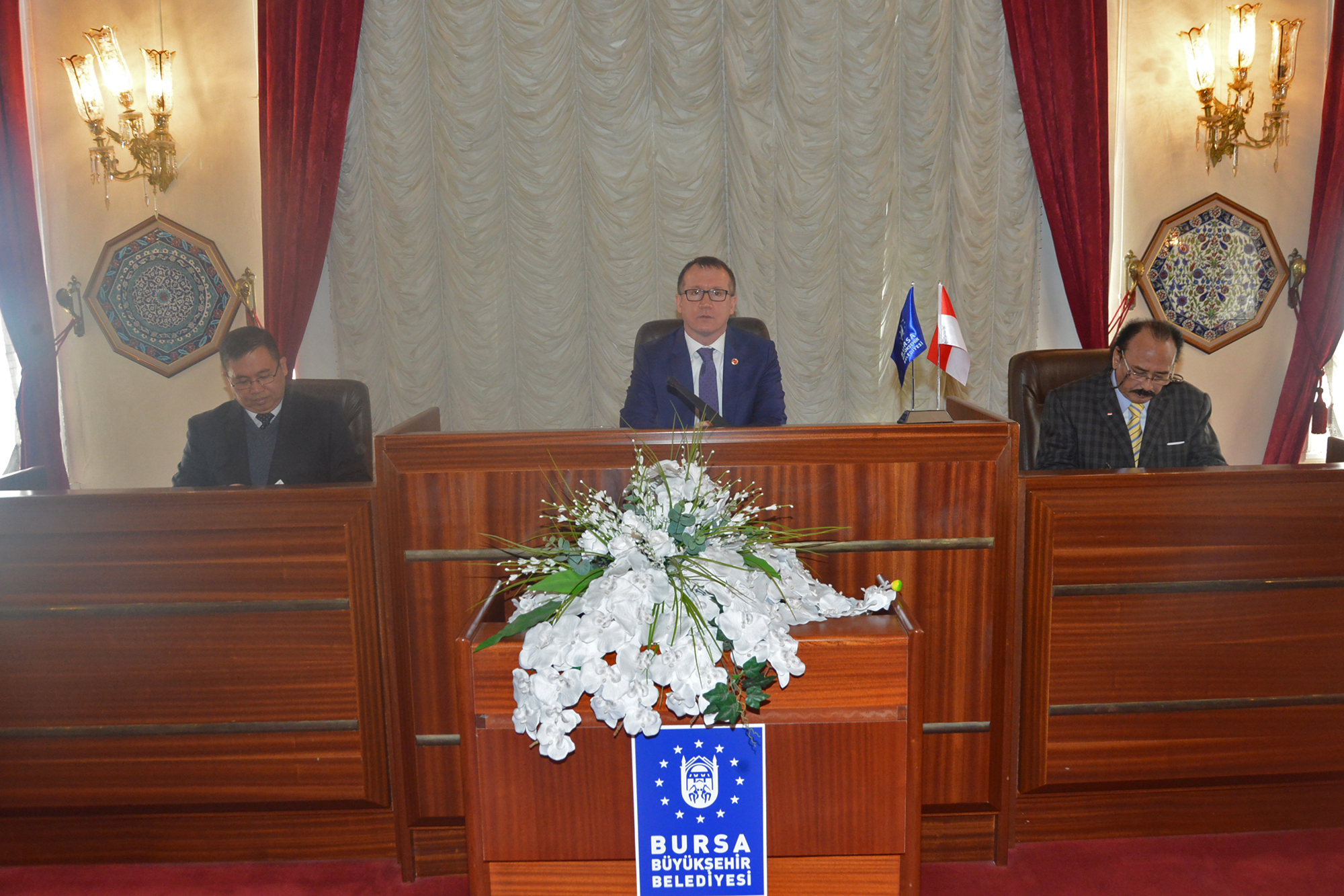 - BÜYÜKŞEHİR BELEDİYE BAŞKANVEKİLİ ABDÜLKADİR KARLIK, ENDONEZYA BELEDİYELER BİRLİĞİ BAŞKANI DEİBEL EFFENDİ İLE BERABERİNDEKİ BELEDİYE BAŞKANLARINI KABUL ETTİ.