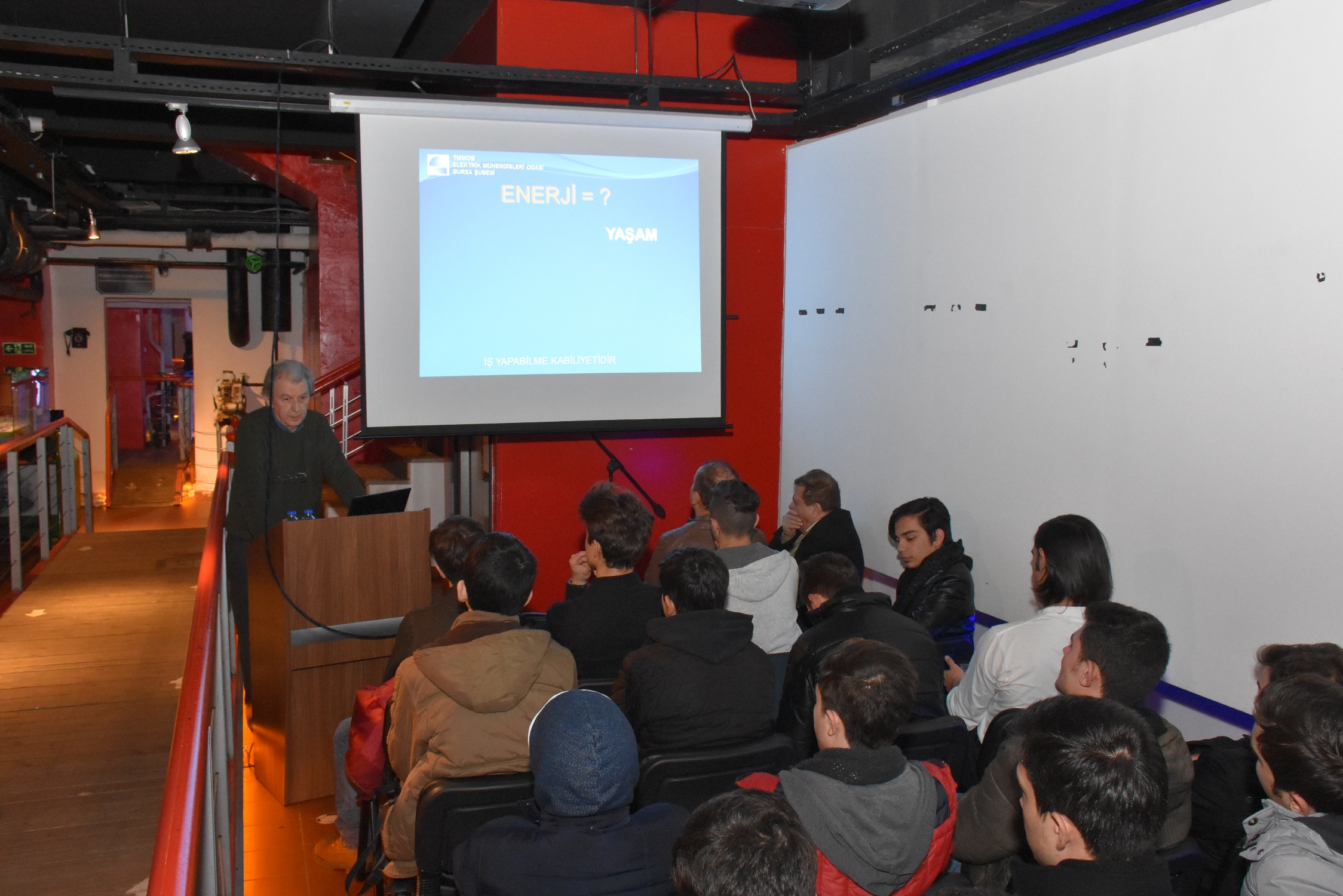 Nesip Arıkan ise enerjinin global anlamda önemini ve teknik yönlerini öğrencilere aktardı. Bireyden genele kadar herkesin enerjinin bir çeşidini her an kullandığını aktaran Arıkan, tüm ülkelerin bu yüzden enerji üzerine yoğunlaştığını ifade etti. Enerjinin güç, iş, para, günlük hayat demek olduğunu vurgulayan Arıkan, insan hayatında enerjinin büyük yer tuttuğunu dile getirdi. Tükenebilir enerjiler kullanıldıkça doğada kaynakların azaldığını, yenilebilir enerjide ise bunun söz konusu olmadığını ifade eden Arıkan, “Günümüzde enerjinin büyük kısmını elektrik enerjisi olarak kullanıyoruz. Ülkemizde elektrik doğalgaz, kömür, linyit, hidrolik, rüzgar, jeotermal ve diğer kaynaklardan üretiliyor. Şuanda Türkiye’de üretilen enerjinin yenilebilir enerji sınırı yüzde 8 civarındadır. Ama bu oran hızla yükseliyor. Dünyada enerji kullanımı ve üretimi nüfus artışı ve konfor sebebiyle her sene artmaya devam ediyor” dedi.