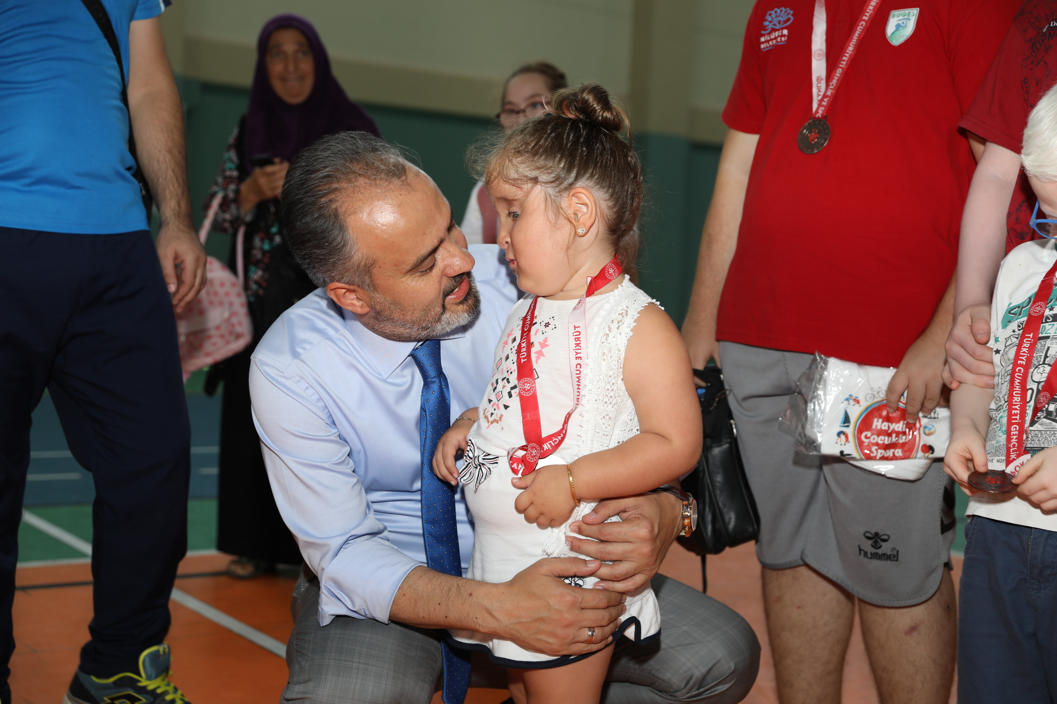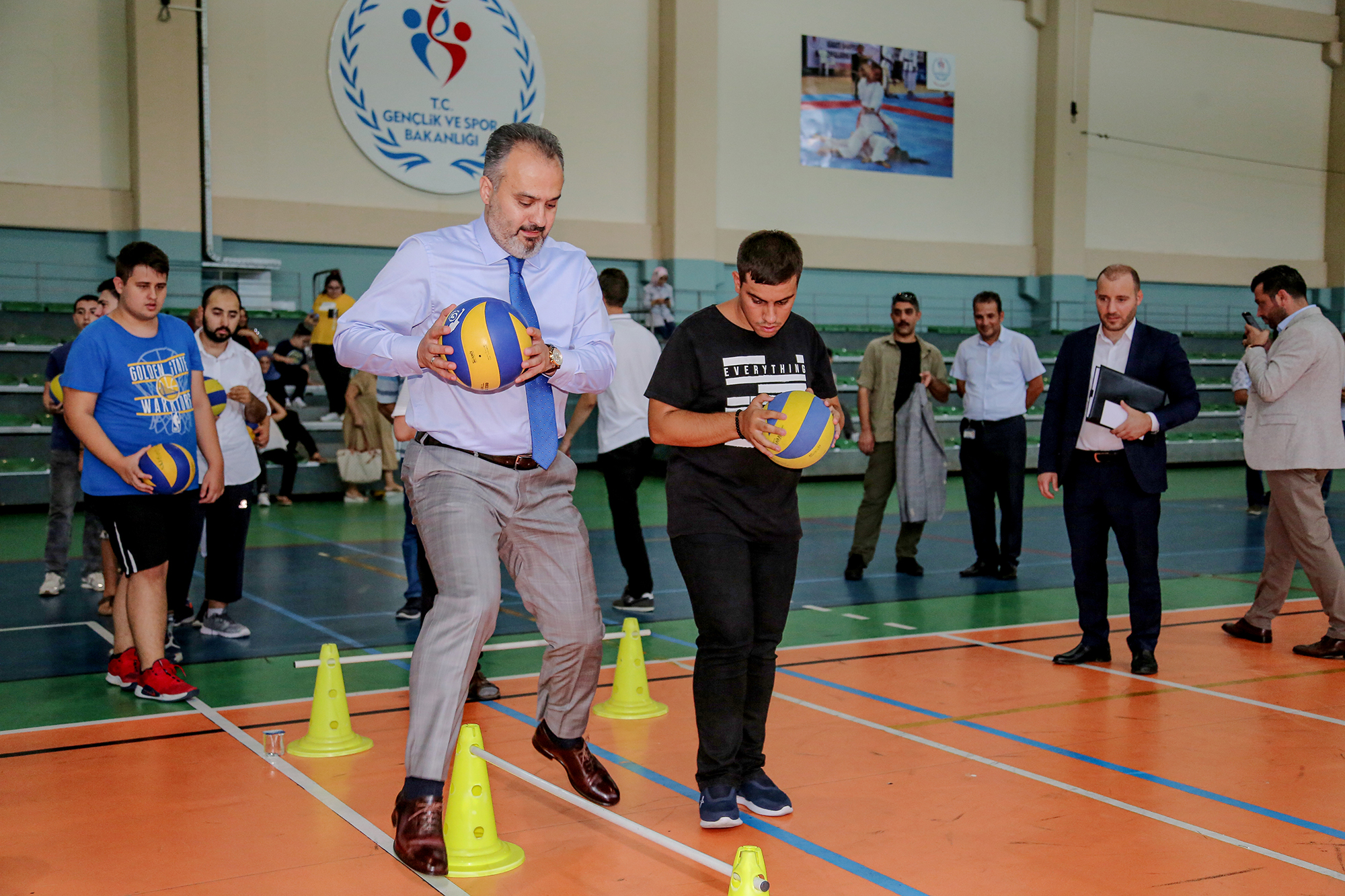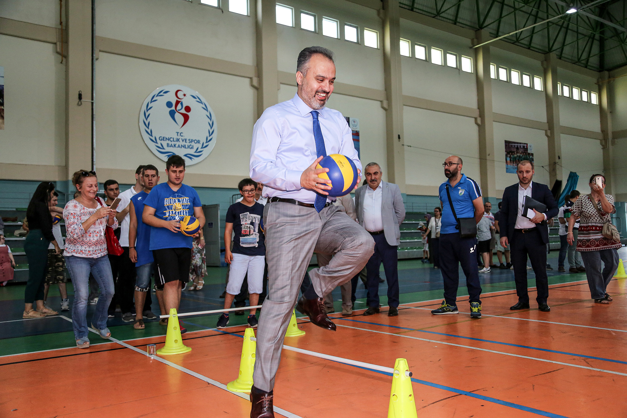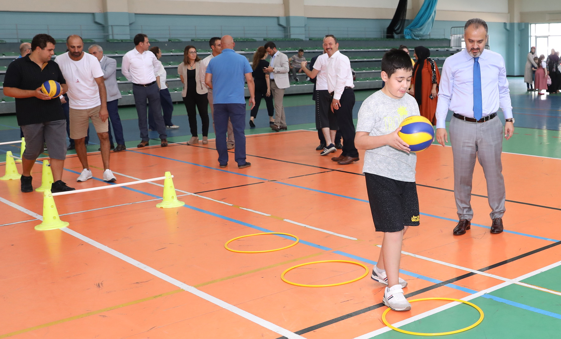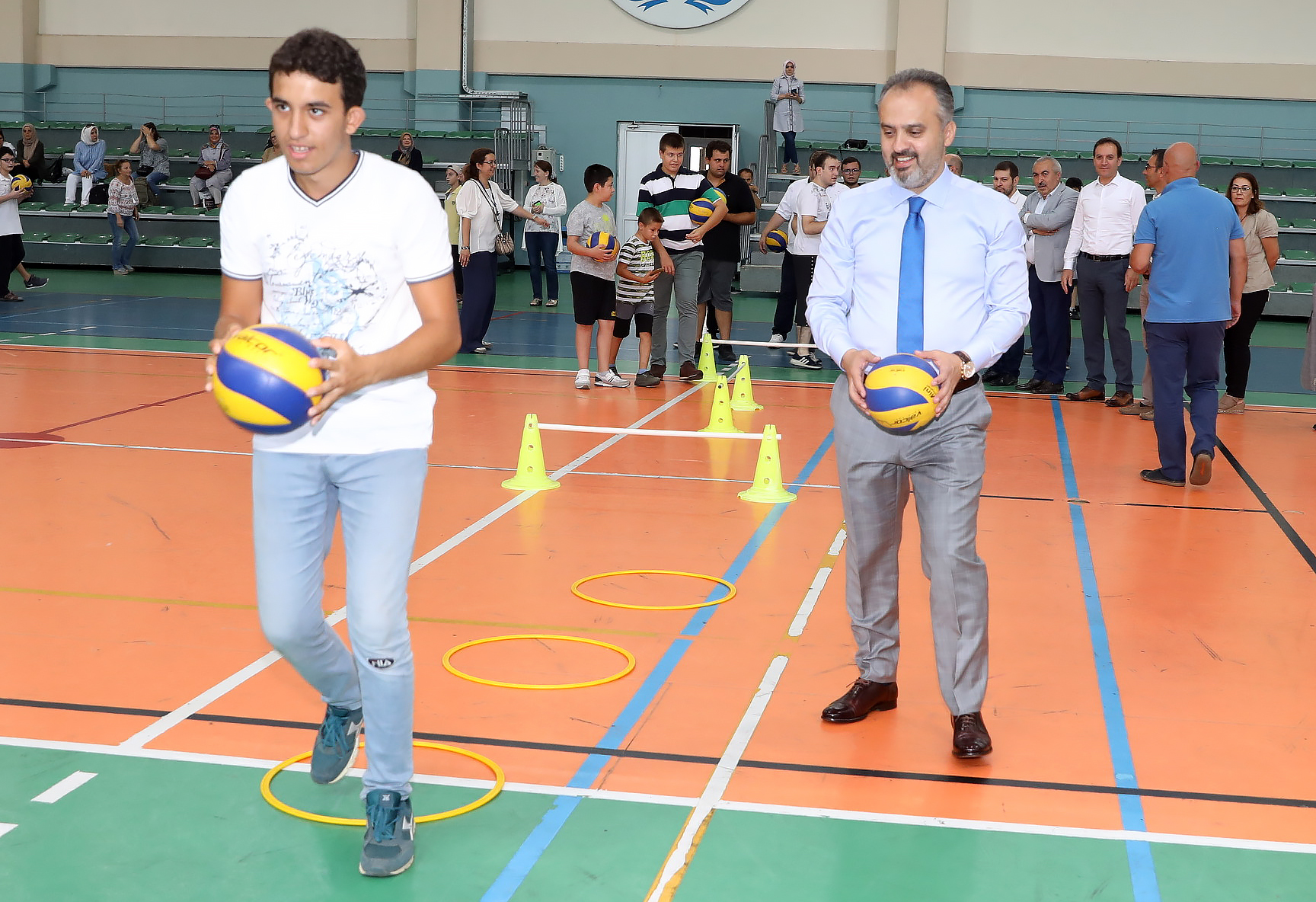 Büyükşehir Belediyesi Engelliler Şube Müdürlüğü Engelsiz Yaşam Merkezi, Gençlik Spor İl Müdürlüğü ve Osmangazi Gençlik Spor İlçe Müdürlüğü işbirliğinde düzenlenen Engelli Yaz Spor Okulları sona erdi. Yüzme, eğitsel oyunlar ve tenis branşlarındaki etkinliklere 5-30 yaş arasındaki engelli vatandaşlar katıldı. Uzman eğitimcilerin gözetiminde spor yapmanın keyfini çıkaran 80 engelli kursiyer, Atıcılar Spor Salonu’nda düzenlenen törenle madalyalarına kavuştu. Kursiyerleri bu mutlu günlerinde yalnız bırakmayan Büyükşehir Belediye Başkanı Alinur Aktaş, çocuklarla birlikte spor yaptı. Ceketini çıkaran Başkan Aktaş, hem engelli parkurunu aşıp, sepete basket attı hem de kaleye geçip, engelli çocukların attığı şutları yakalamaya çalıştı.