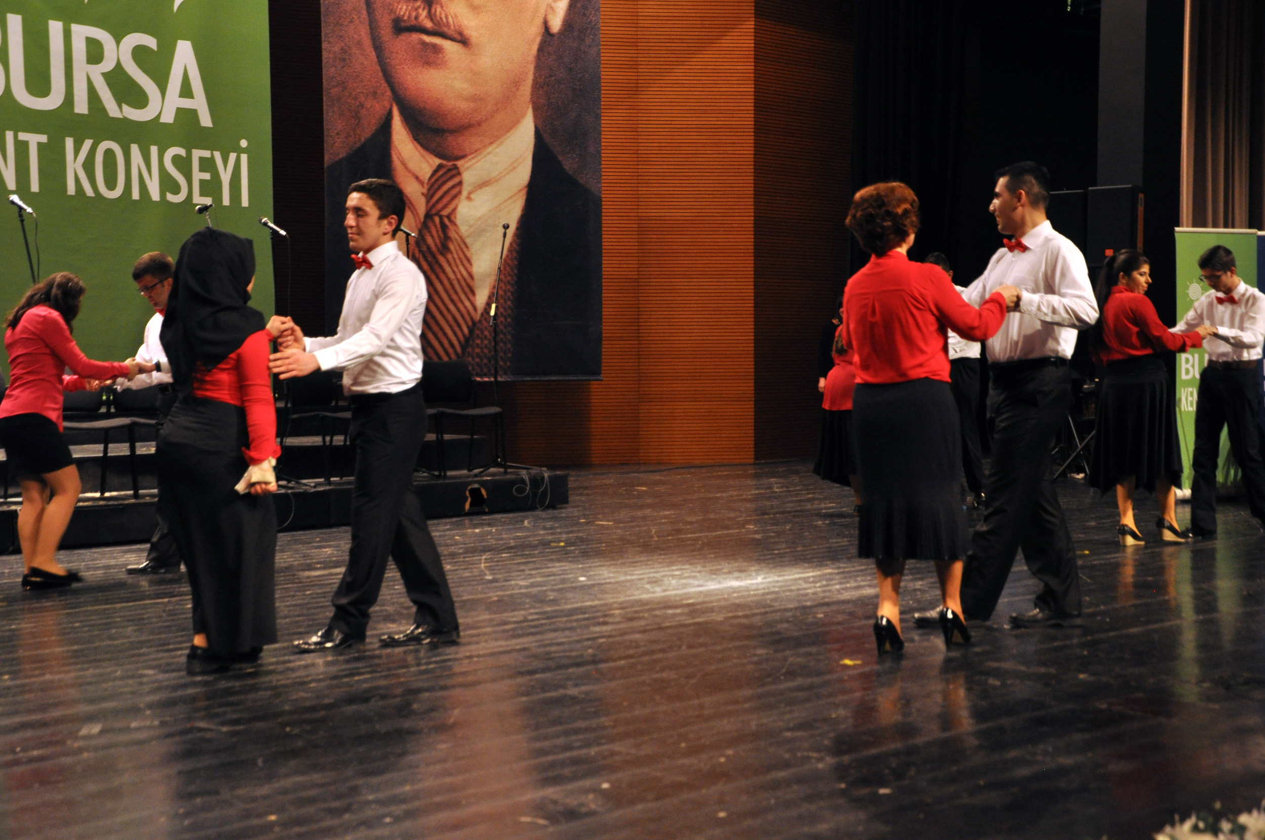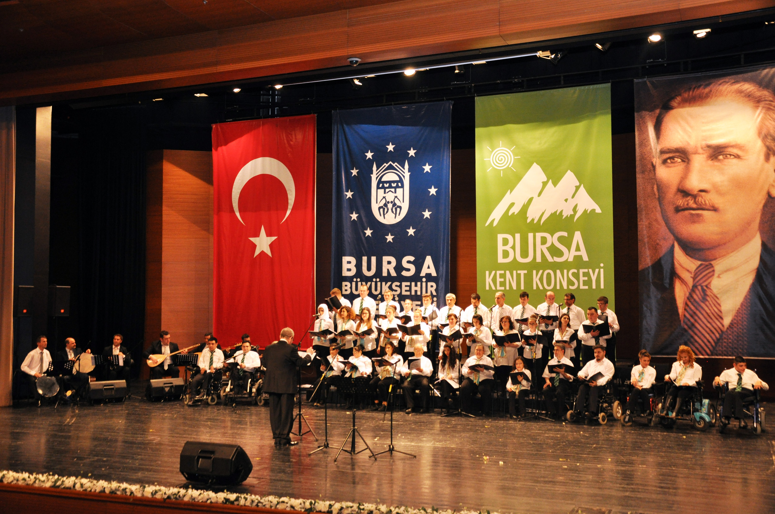 Bursa Kent Konseyi Engelliler Meclisi, Atatürk Kongre Kültür Merkezi (Merinos AKKM) Orhangazi Salonu’nda konser düzenledi. Bursa Kent Konseyi Engelliler Meclisi üyesi İpek Öztürk’ün sunuculuğunu yaptığı geceye, Bursa Kent Konseyi Başkanı Hasan Çepni, Büyükşehir Belediyesi Yerel Gündem Şube Müdürü Mahmut Turunç, Engelliler Meclisi Başkanı İbrahim Sönmez, engelli vatandaşlar ve aileleri katıldı. Konser, eğitmen Emine Basit önderliğindeki Kalbin Dansı Grubu’nun gösterisiyle başladı. Dans figürlerini başarıyla yapan engelliler, hem doyasıya eğlendi, hem de aileleri eğlendirdi. Anne ve engelli çocuklarının dansı ise duygusal anlara sahne oldu. Daha sonra Cuma Çimen’in ritim şefliğinde çeşitli müzik aletleriyle sahne alan Kalbin Ritmi Grubu, çaldıkları şarkılarla büyük alkış aldı.