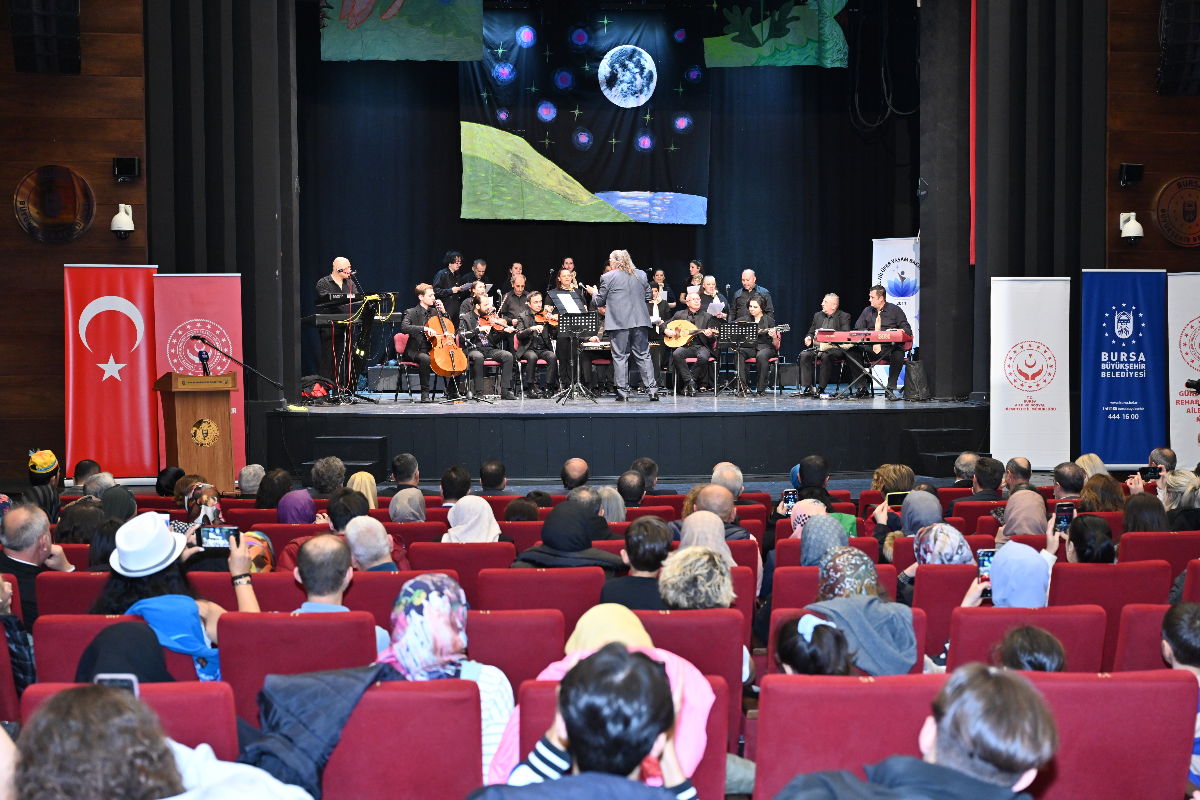 Etkinlik, Bursa Aile ve Sosyal Hizmetler İl Müdürlüğü’ne bağlı Özel Nilüfer Yaşam Bakım Merkezi ve Celal Sönmez Gündüzlü Bakım Rehabilitasyon ve Aile Danışma Merkezi’nden oluşan koronun konseri, mehter, modern dans, halk oyunları ve 'Anka Kuşu Masallar Diyarı' oyun gösterisi ile sona erdi.