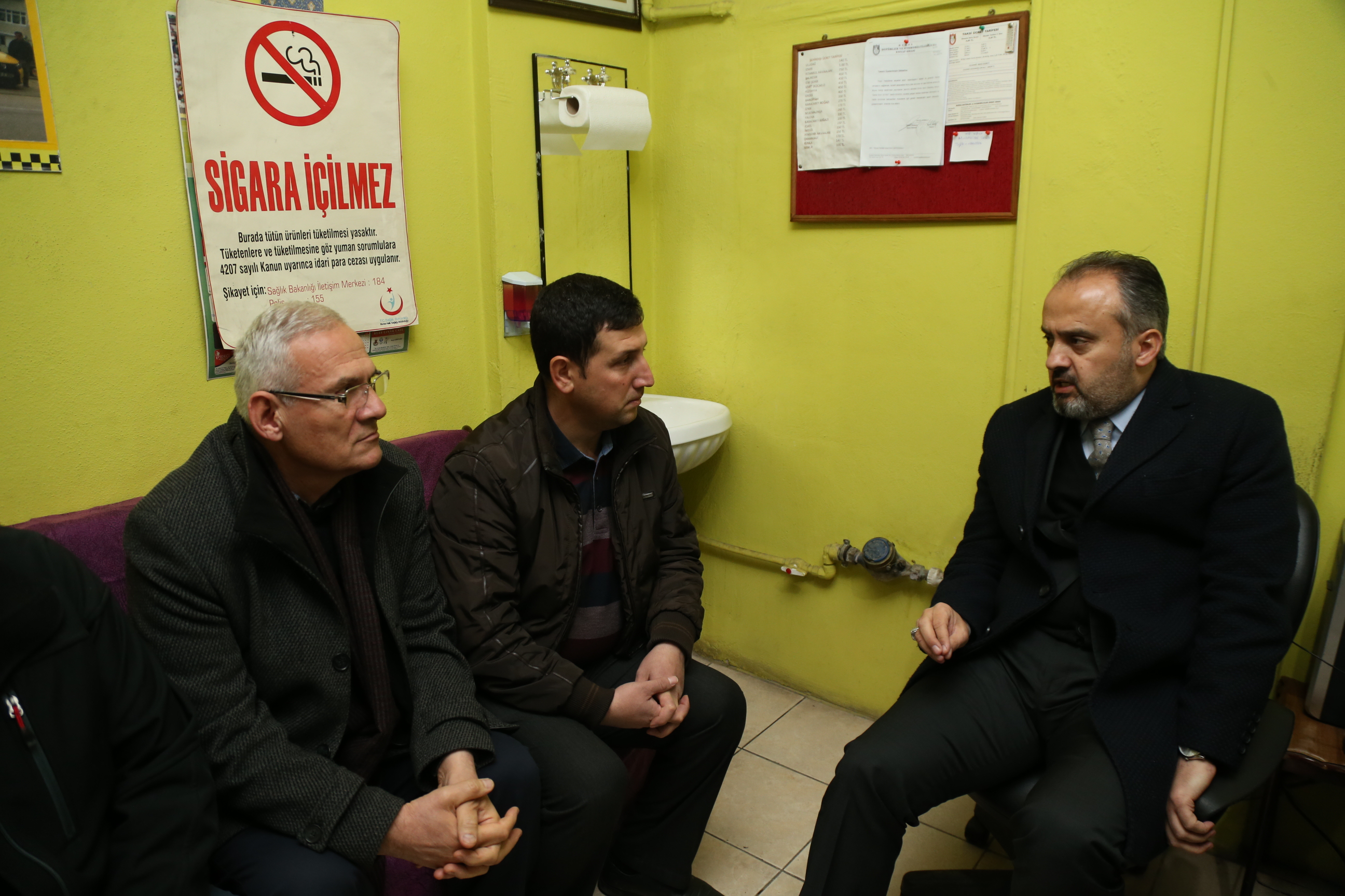 Bursa’nın sorunlarına çözüm üreten projeleri bir bir hayata geçiren Büyükşehir Belediye Başkanı Alinur Aktaş, vatandaşın nabzını tutmaya devam ediyor. Her fırsatta, toplumun farklı kesimlerinden vatandaşlarla bir araya gelen Başkan Aktaş, akşam saatlerinde Muradiye Taksi Durağını ziyaret etti. Şehre yönelik sorunlara hakim olan taksicilerin daha iyi bir Bursa için şikayet, öneri ve dileklerini dinleyen Başkan Aktaş, şehre dair her fikre önem verdiklerini vurguladı.