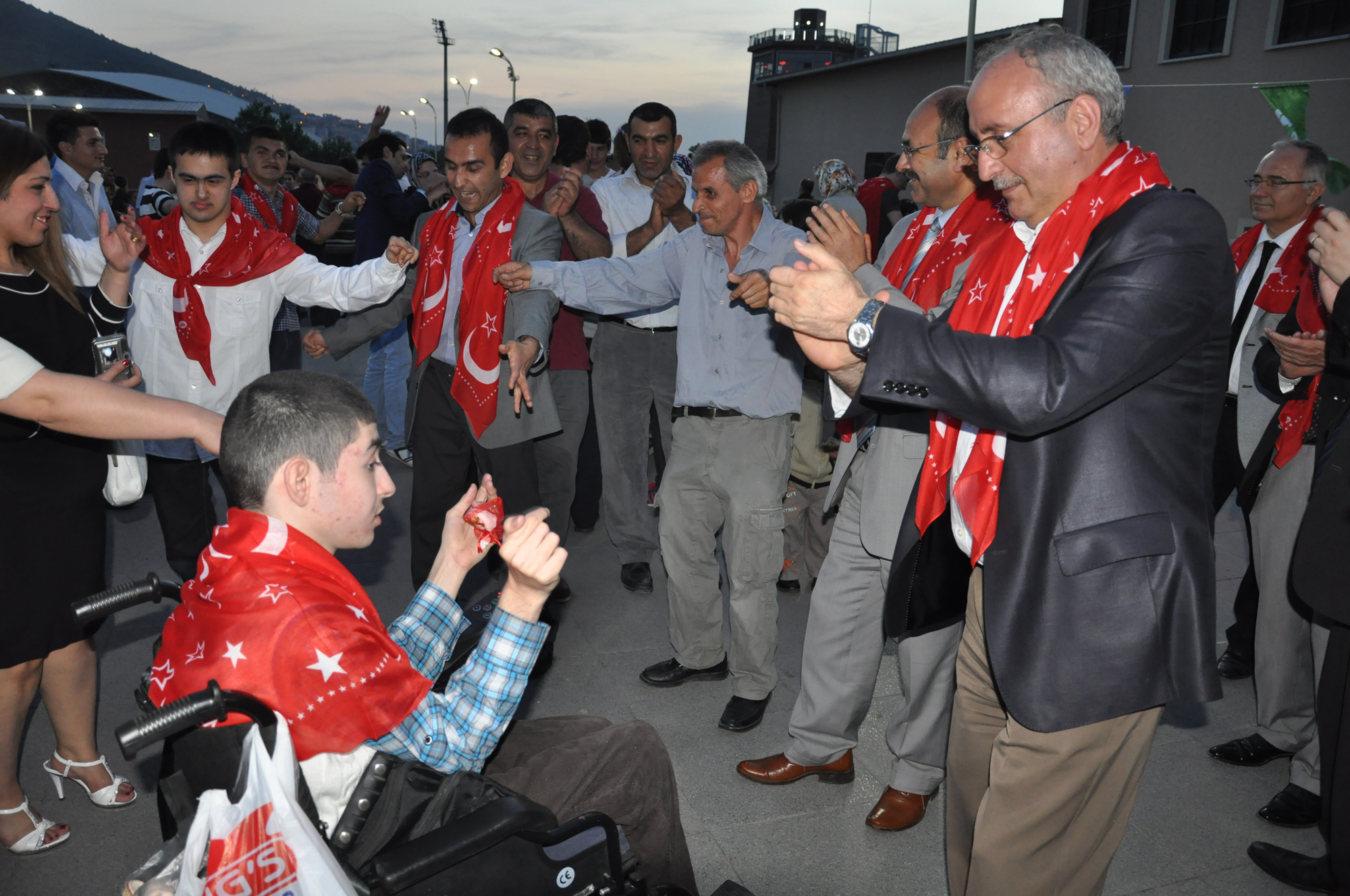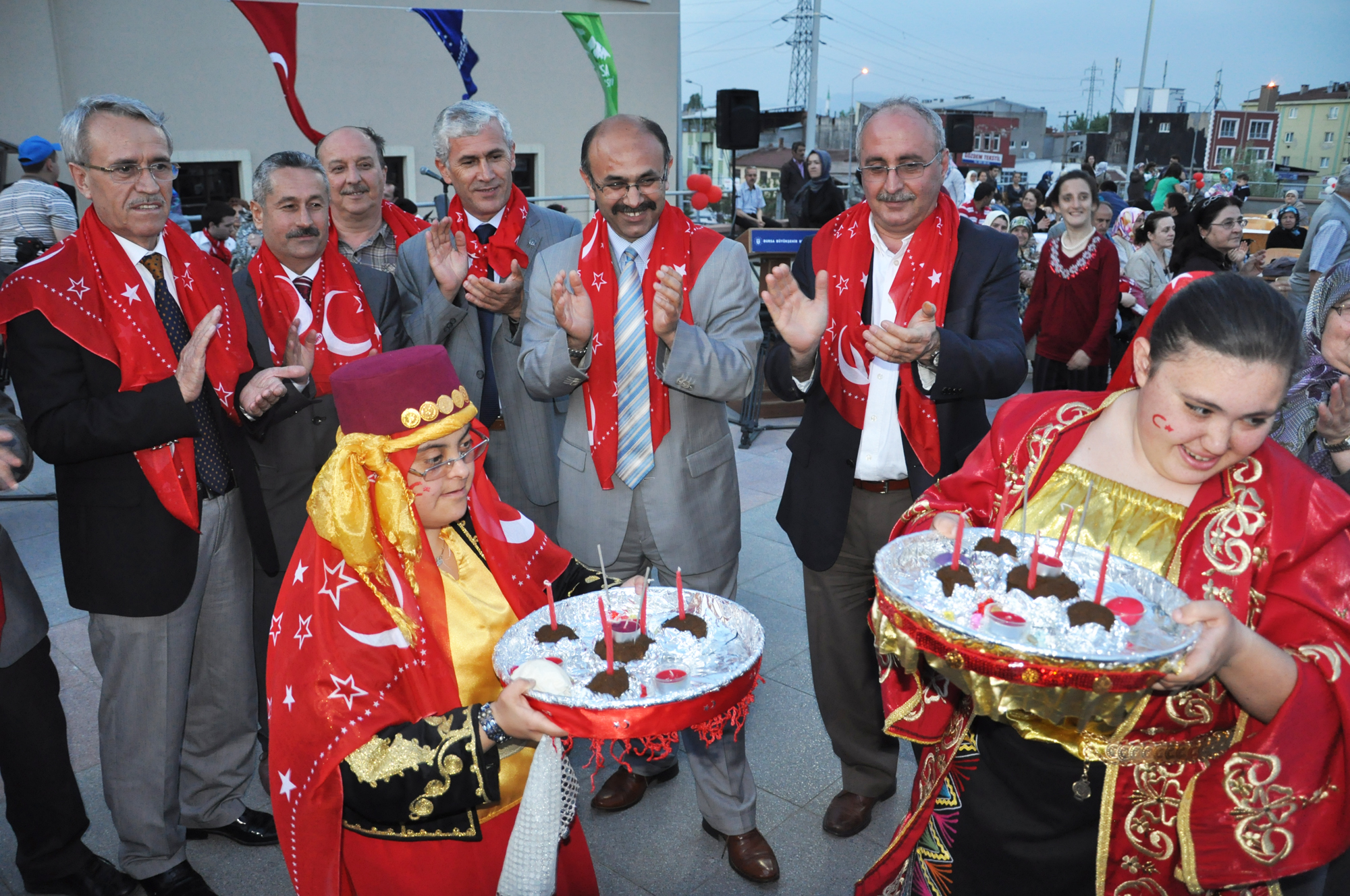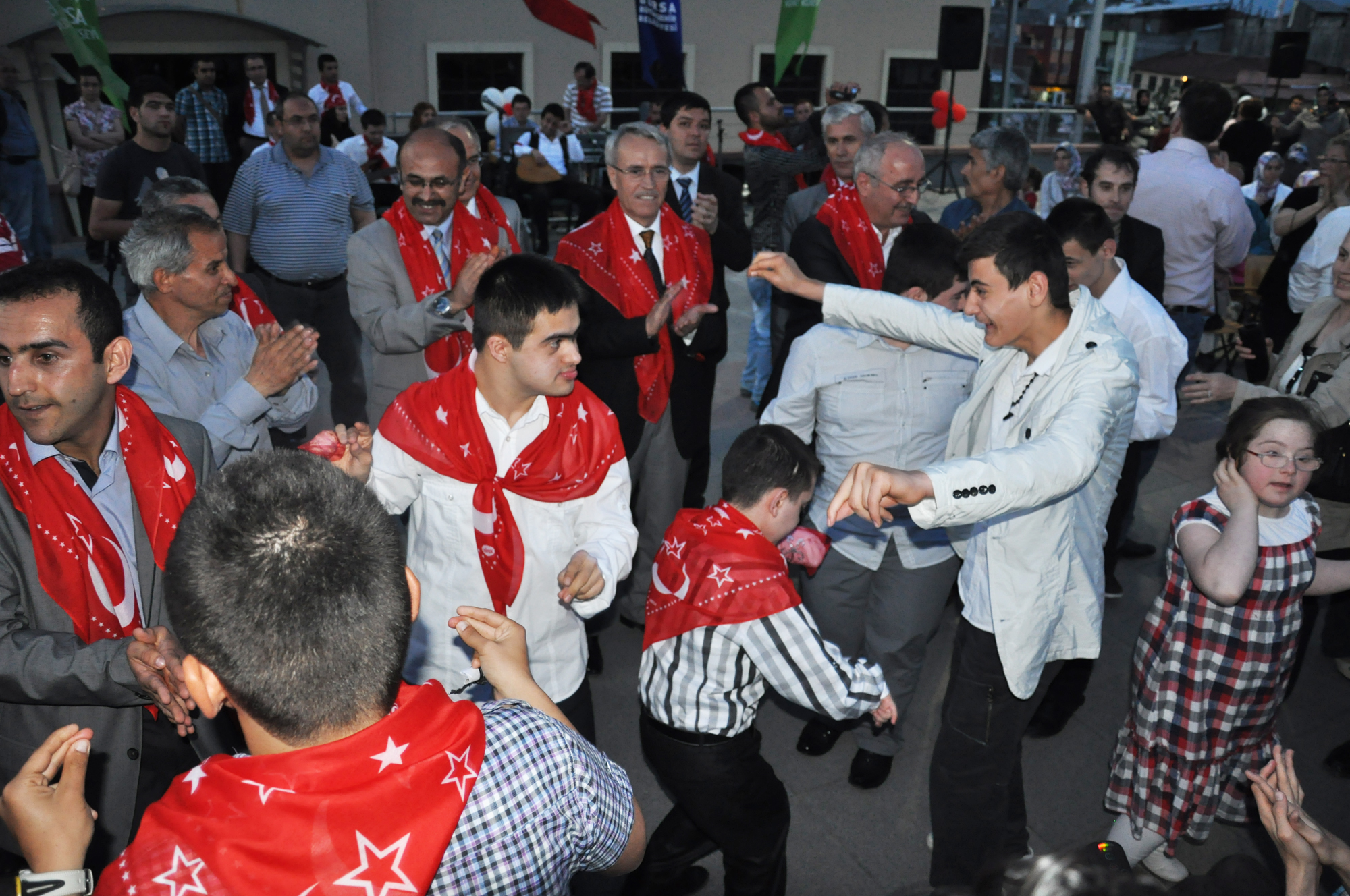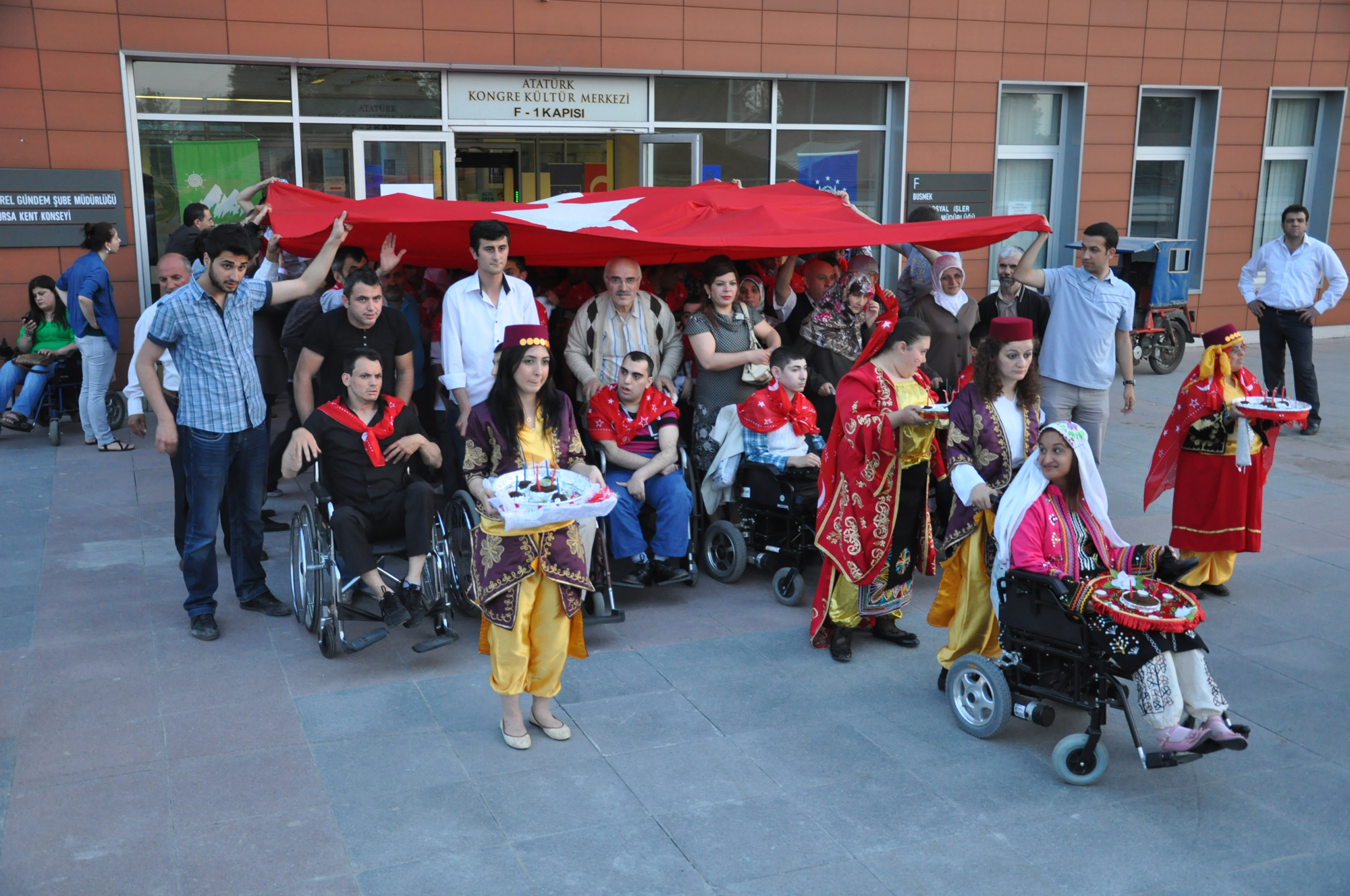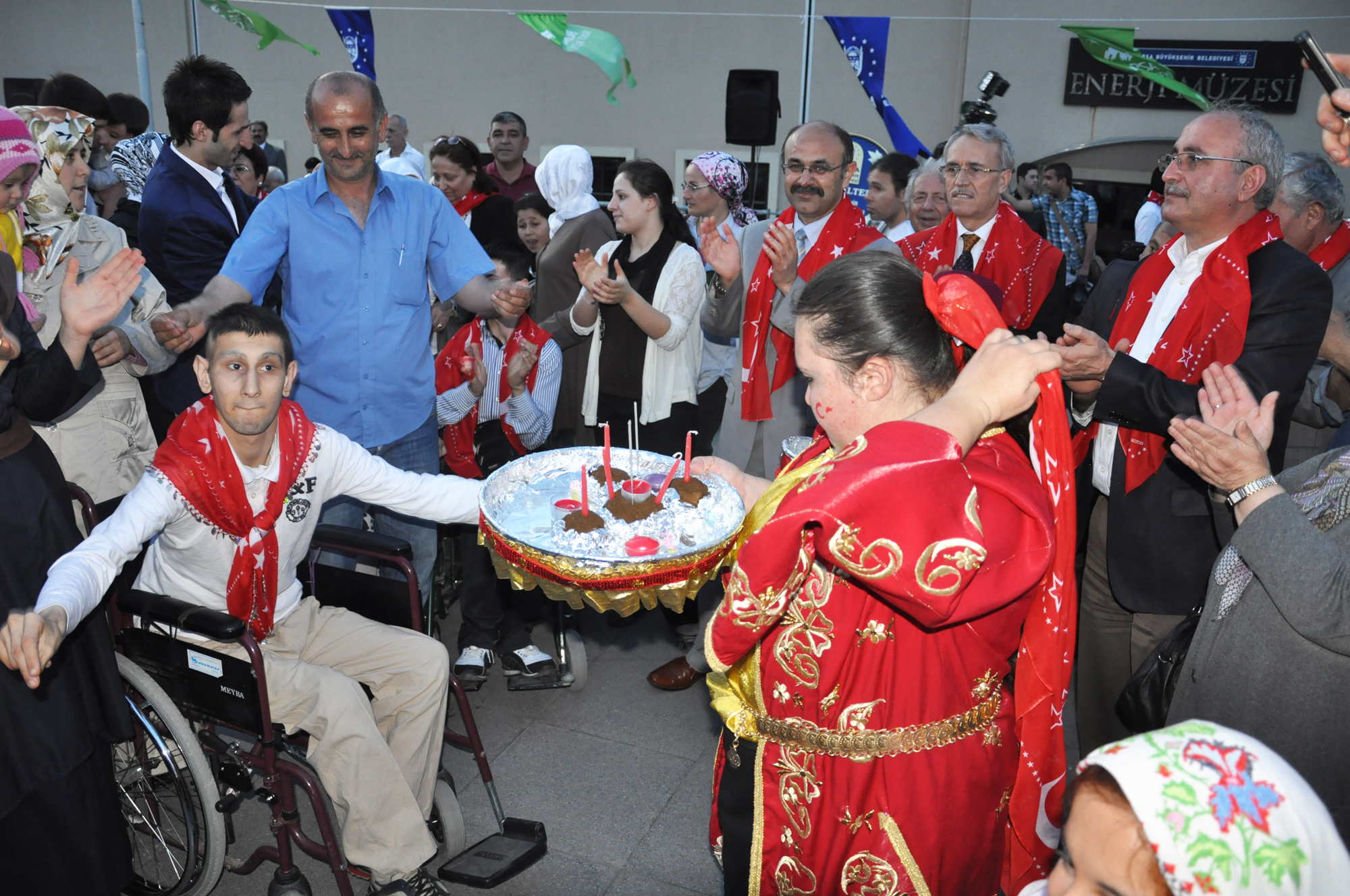 Fiziksel ve zihinsel engelleri yüzünden yaşıtları gibi askere gidemeyen gençlerin, temsili olarak vatani görevlerini yerine getirmeleri için başlatılan 1 günlük askerlik uygulamasından yararlanan 87 engelli genç, Bursa Kent Konseyi Engelliler Meclisi’nin düzenlendiği asker eğlencesinde bir araya geldi. Atatürk Kongre Kültür Merkezi (Merinos AKKM) açık otopark alanında düzenlenen gecede, asker adayları davul ve zurna eşliğinde doyasıya eğlendi. Türk bayrağı işlemeli yazmaları boyunlarına takan engelli gençler, aileleri tarafından ‘En büyük asker, bizim asker’ sloganları arasında omuzlara alındı.