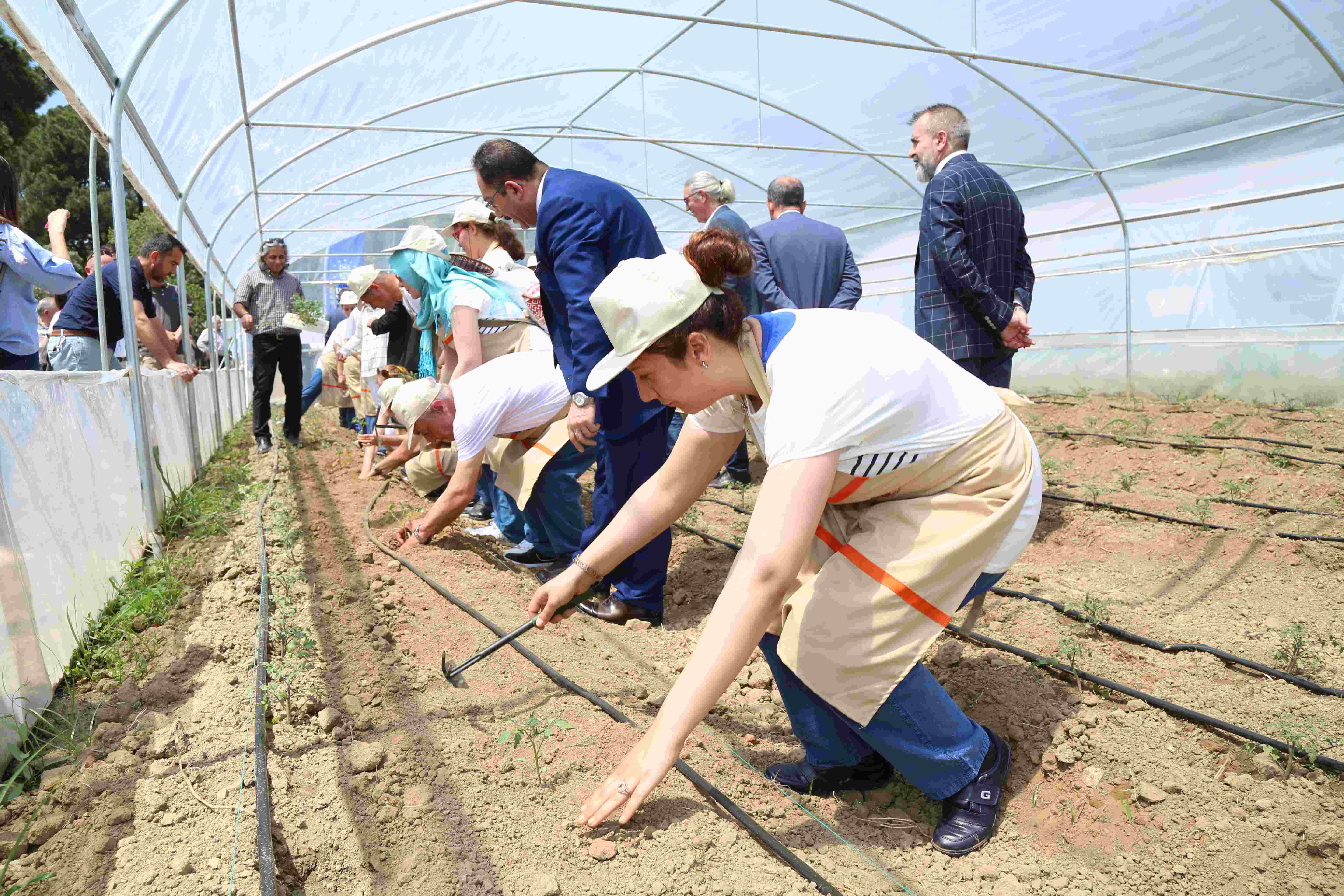Konuşmaların ardından Başkan Aktaş ve protokol üyeleri tarafından engelli bireylerin rehabilitasyonu için hazırlanan seraların açılışı gerçekleştirildi. Başkan Aktaş, serada engelli vatandaşlarla birlikte çapa yaparak domates fidesi ekti.