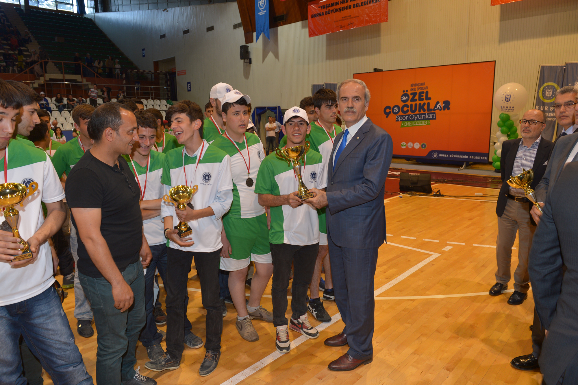 - BURSA BÜYÜKŞEHİR BELEDİYESİ’YLE İL MİLLİ EĞİTİM MÜDÜRLÜĞÜ’NÜN ENGELLİ ÇOCUKLARIN SPOR YAPABİLMESİNE İMKAN SAĞLAMAK AMACIYLA 4-13 MAYIS TARİHLERİ ARASINDA DÜZENLEDİĞİ ‘ÖZEL ÇOCUKLAR SPOR ŞENLİĞİ’, ATATÜRK KAPALI SPOR SALONU’NDA YAPILAN MUHTEŞEM FİNAL GÖSTERİLERİYLE SON BULDU.