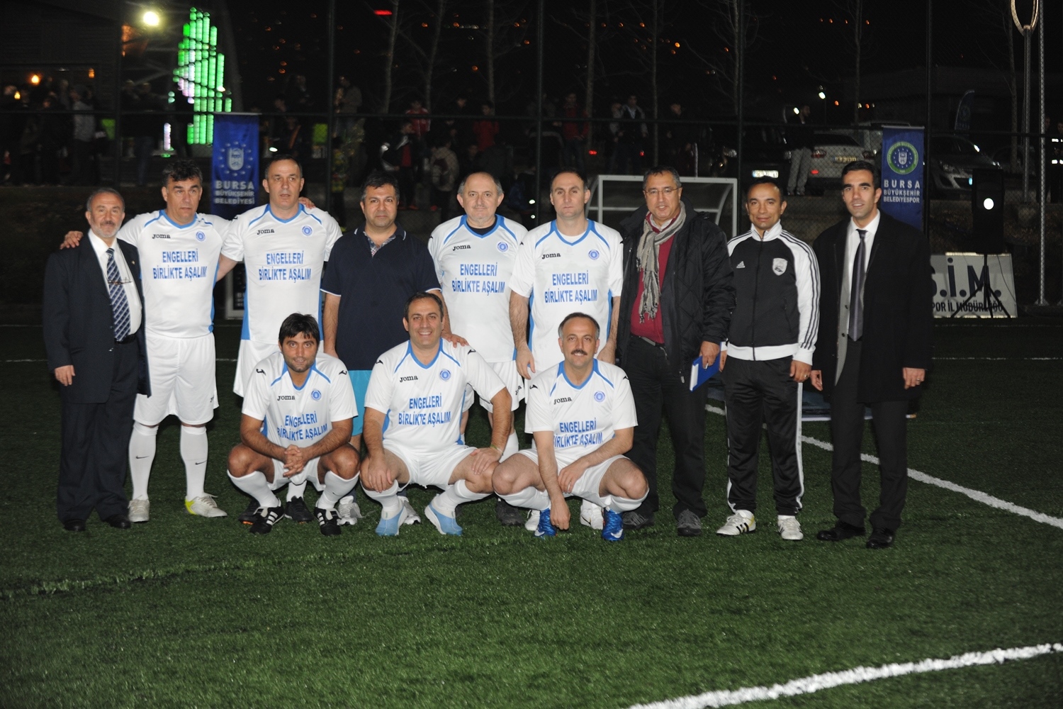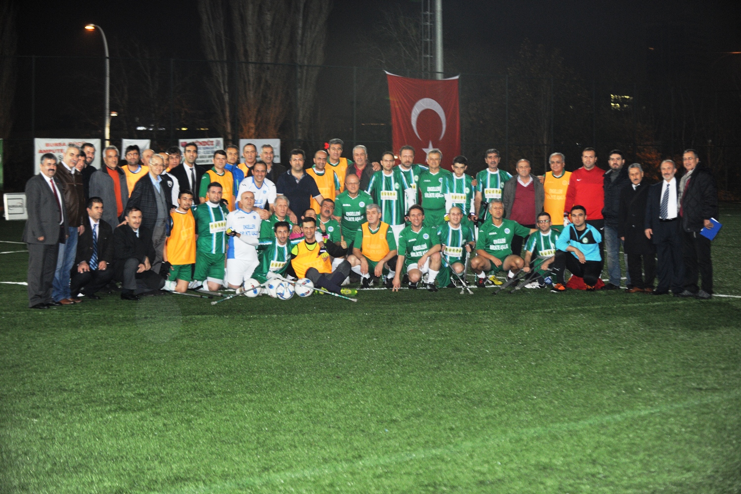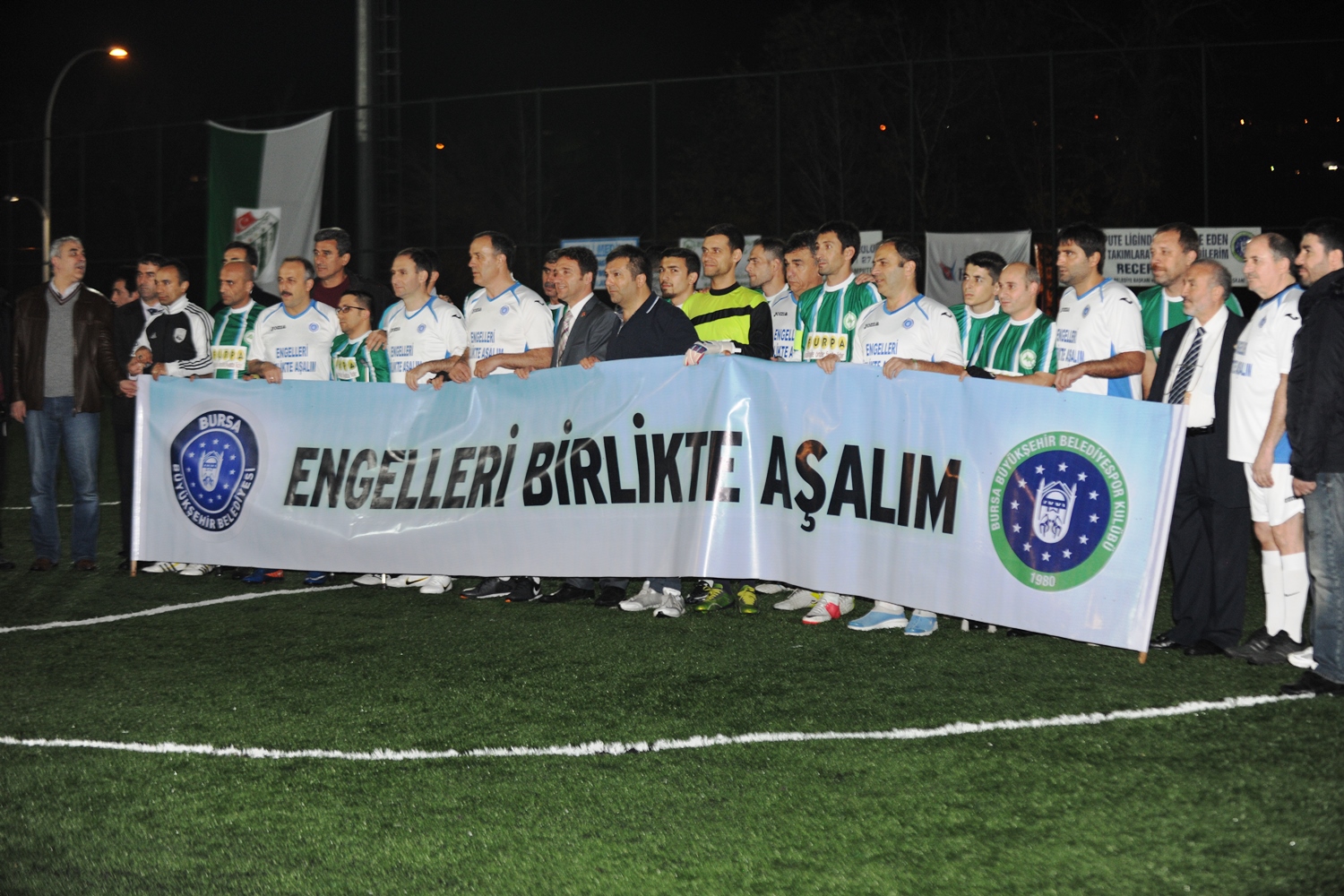 Hüdavendigar Kent Parkı Mihraplı Spor Tesislerindeki maçta başlama vuruşunu, Büyükşehir Belediye Başkanvekili Atilla Ödünç, Vali Yardımcısı Ahmet Hikmet Şahin ve Eski Milletvekili Ertuğrul Yalçınbayır yaptı. Eski Milletvekilleri Burhan Orhan, Hayati Korkmaz, Mehmet Küçükaşık, Gürsu Belediye Başkanı Cüneyt Yıldız, Mustafakemalpaşa Belediye Başkanı Sadi Kurtulan, Amatör Spor Kulüpleri Federasyonu Başkanı Cemal Vardar, Bursasporlu eski ünlü futbolcular, Bursaspor Antrenörleri Ersel Uzgur, Mehmet Kulaksızoğlu, Gençlik Hizmetleri ve Spor İl Müdürü Süleyman Şahin, Gazeteci İlhan Öztat ile Ampute futbolcuların yer aldığı gösteri maçında gol yağmuru izlendi.