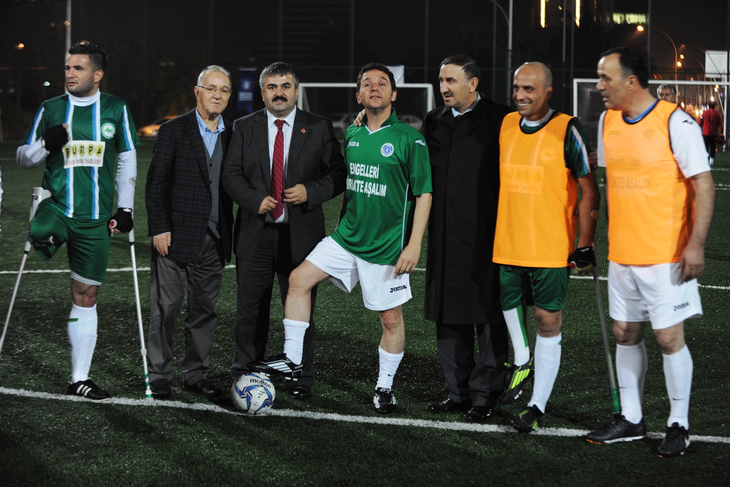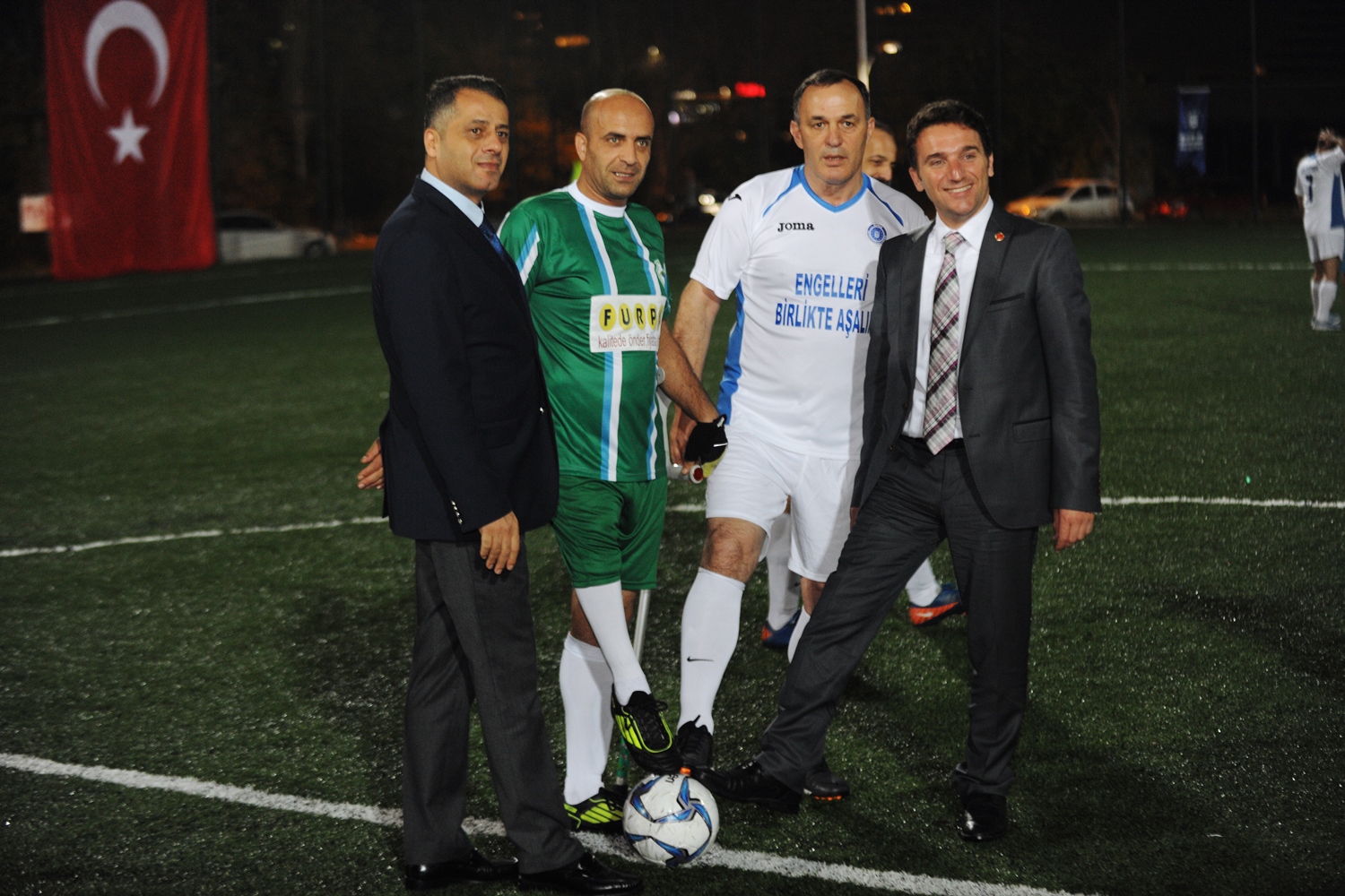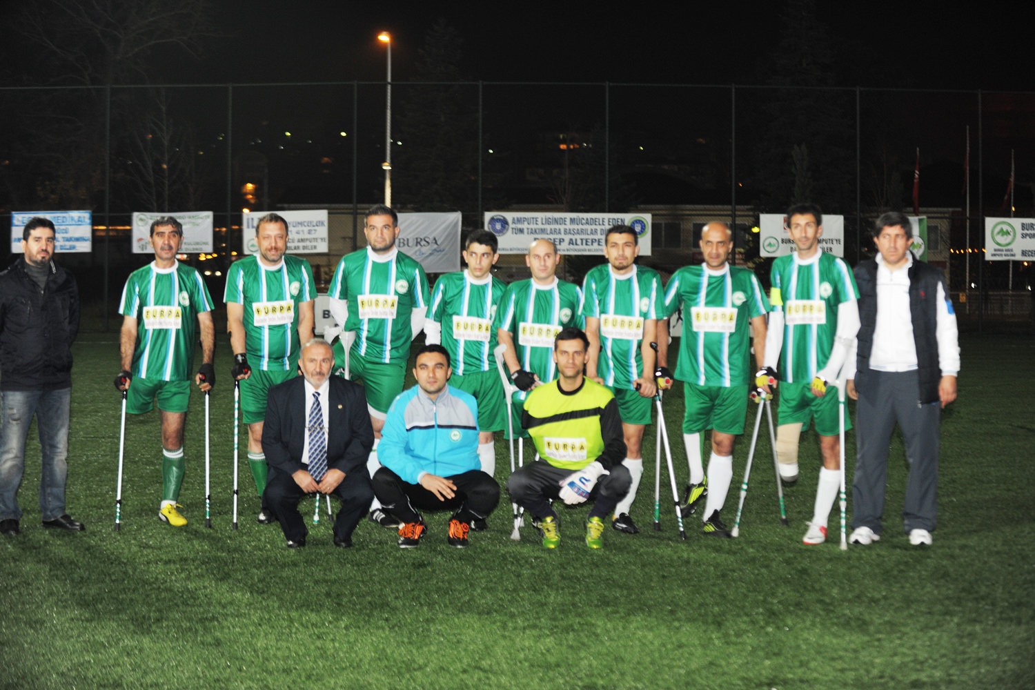 Hüdavendigar Kent Parkı Mihraplı Spor Tesislerindeki maçta başlama vuruşunu, Büyükşehir Belediye Başkanvekili Atilla Ödünç, Vali Yardımcısı Ahmet Hikmet Şahin ve Eski Milletvekili Ertuğrul Yalçınbayır yaptı. Eski Milletvekilleri Burhan Orhan, Hayati Korkmaz, Mehmet Küçükaşık, Gürsu Belediye Başkanı Cüneyt Yıldız, Mustafakemalpaşa Belediye Başkanı Sadi Kurtulan, Amatör Spor Kulüpleri Federasyonu Başkanı Cemal Vardar, Bursasporlu eski ünlü futbolcular, Bursaspor Antrenörleri Ersel Uzgur, Mehmet Kulaksızoğlu, Gençlik Hizmetleri ve Spor İl Müdürü Süleyman Şahin, Gazeteci İlhan Öztat ile Ampute futbolcuların yer aldığı gösteri maçında gol yağmuru izlendi.