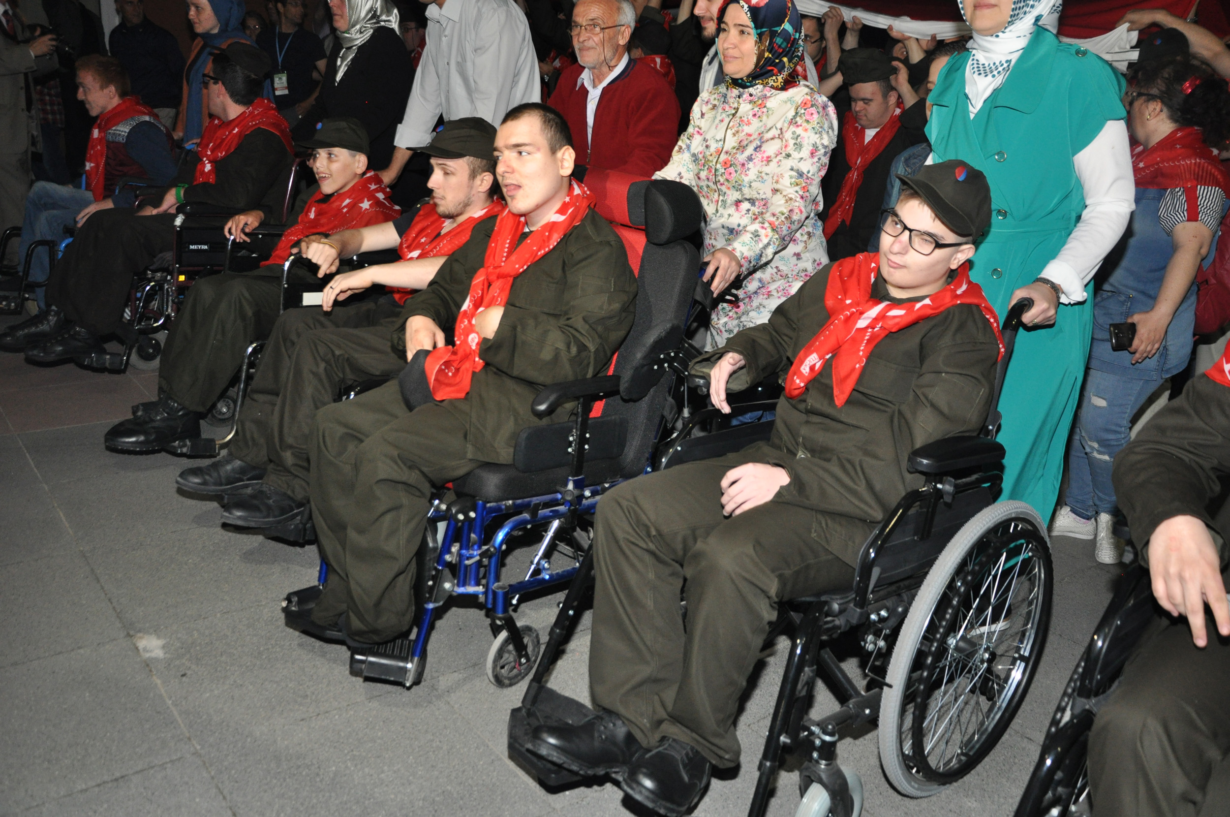 Konuşmaların ardından engelli gençler ve aileleri, davul zurna eşliğinde doyasıya eğlendi. Türk bayrağı işlemeli yazmaları boyunlarına takan engelli gençler, aileleriyle bol bol hatıra fotoğrafı çektirdi.