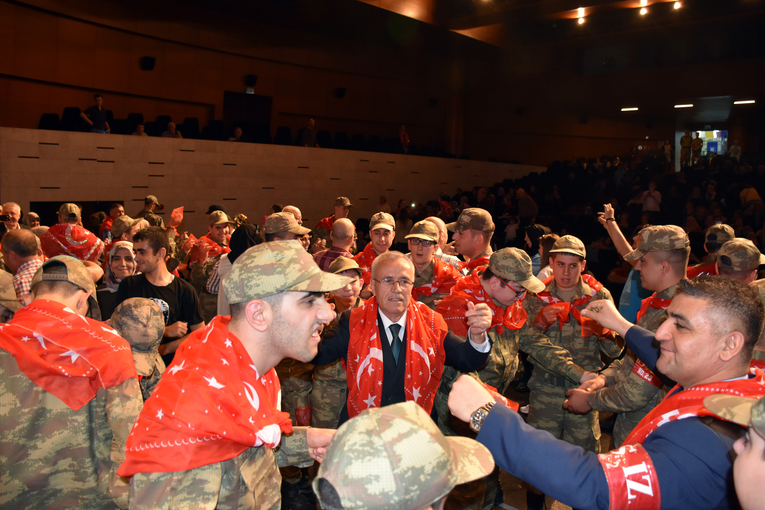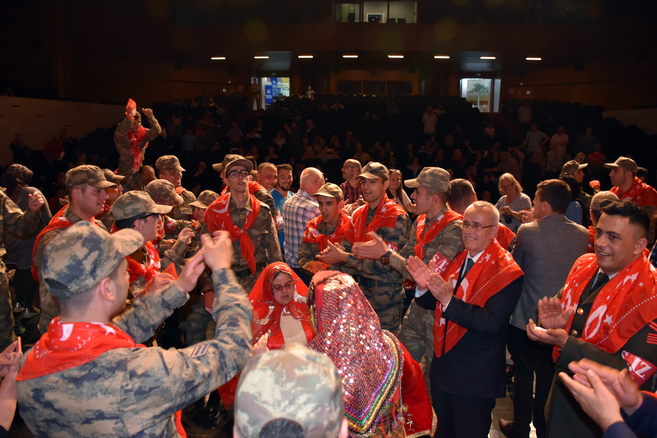 Konuşmaların ardından engelli gençler ve aileleri, Büyükşehir Belediyesi orkestrası eşliğinde doyasıya eğlendi. Türk bayrağı işlemeli yazmaları boyunlarına takan engelli gençler, aileleriyle hatıra fotoğrafı çektirdi.