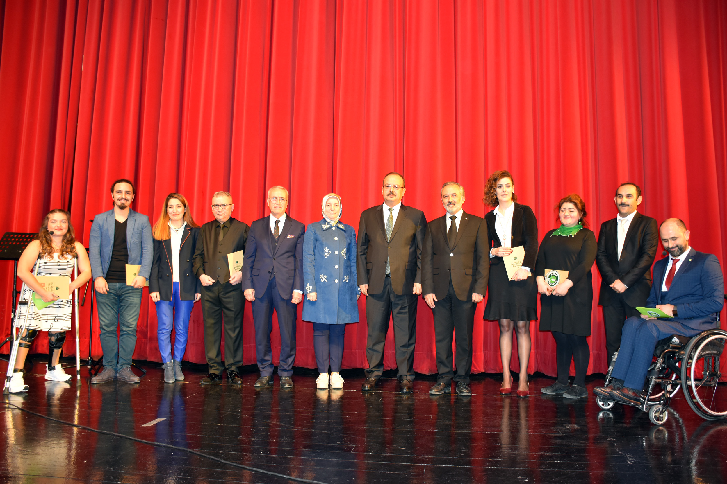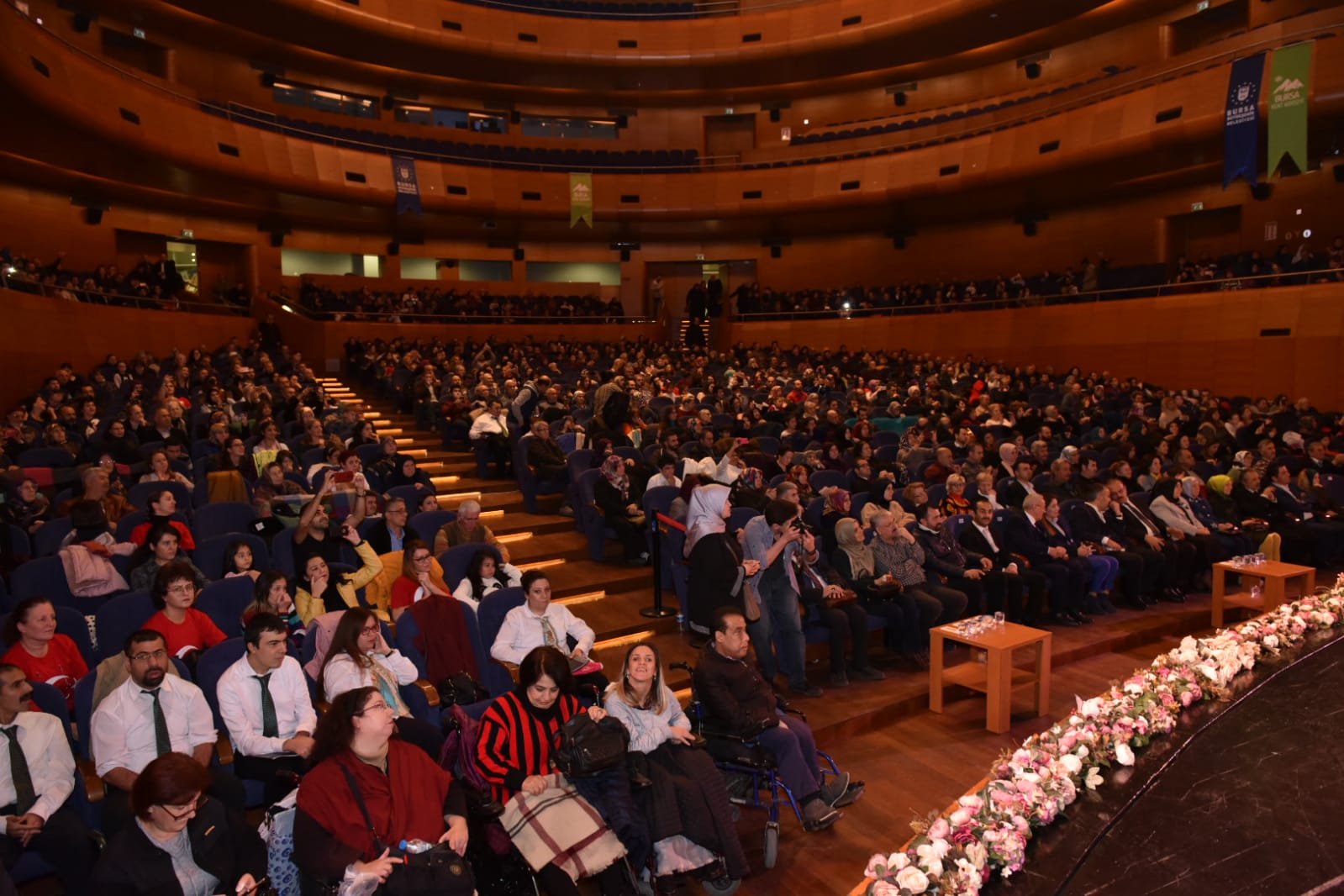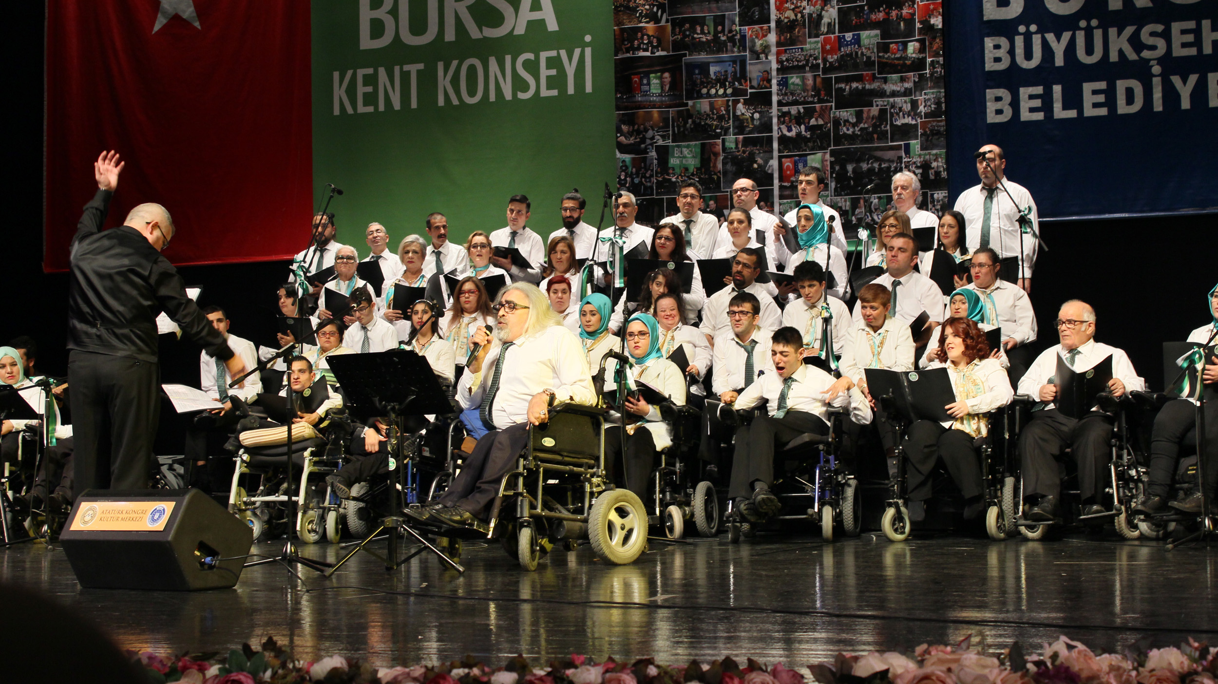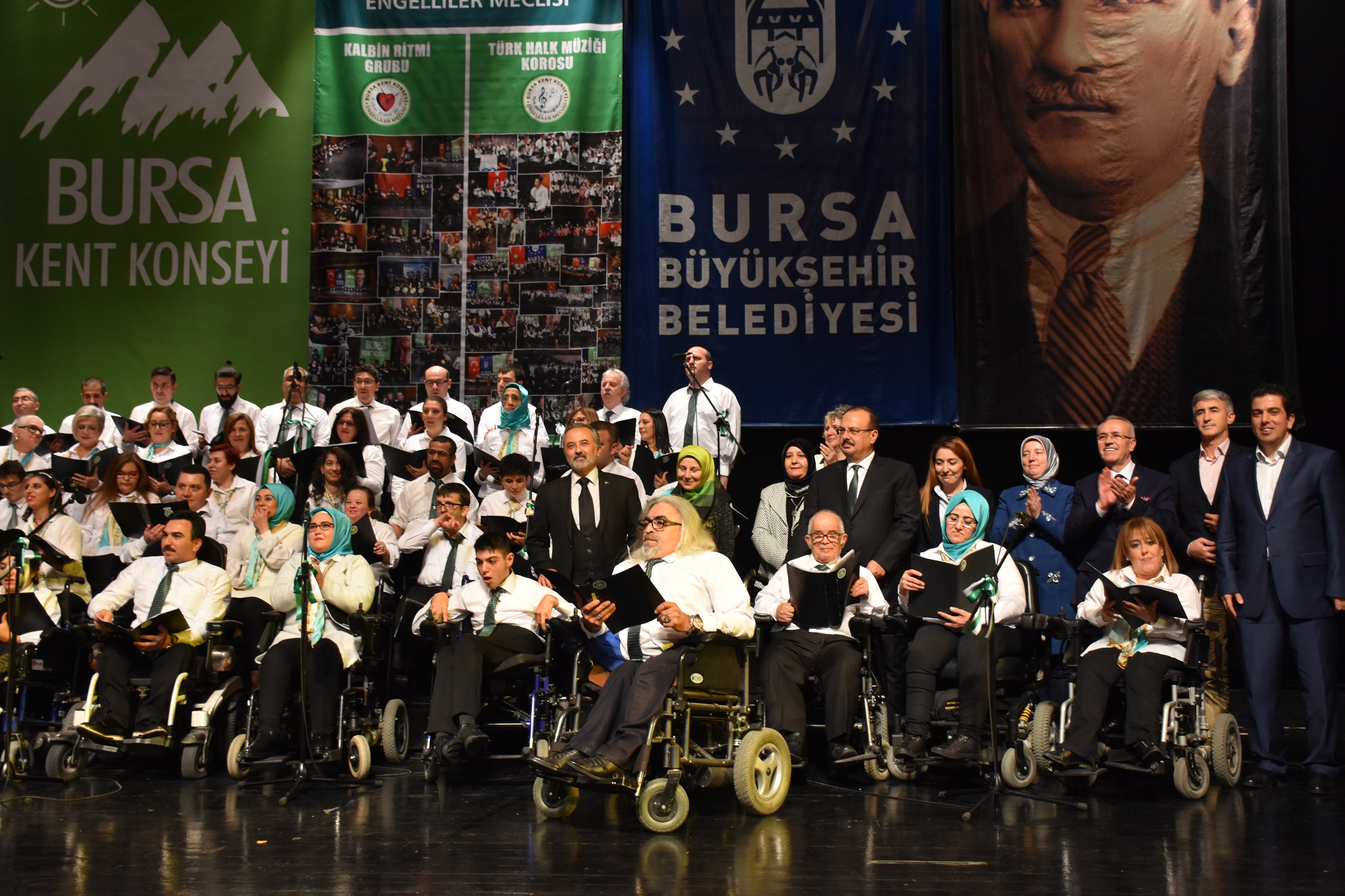 Bursa Kent Konseyi Engelliler Meclisi, Atatürk Kongre Kültür Merkezi (Merinos AKKM) Osmangazi Salonu’nda 3 Aralık Dünya Engelliler Günü nedeniyle konser düzenledi. Bursa Kent Konseyi Engelliler Meclisi üyesi İpek Öztürk’ün sunuculuğunu yaptığı geceye, Bursa Milletvekili Emine Yavuz Gözgeç, Bursa Valisi Yakup Canbolat, Bursa Büyükşehir Belediyesi Başkanı Alinur Aktaş, Bursa Büyükşehir Belediyesi Başkanvekili Zehra Sönmez, Bursa Kent Konseyi Başkanvekili Şuayip Toprak, Aile ve Sosyal Politikalar İl Müdürü Erkut Öneş, Engelliler Meclisi Başkanı İbrahim Sönmez, engelli vatandaşlar ve aileleri katıldı. Bursalıların büyük ilgi gösterdiği program, saygı duruşu ve İstiklal Marşı’nın okunmasıyla başladı. İstiklal Marşı’nı BUSMEK işaret dili kursu öğrencileri de işaret diliyle okudu. Programın ikinci bölümde ise Mustafa Özyer’in ritim şefliğinde çeşitli müzik aletleriyle sahne alan Kalbin Ritmi Grubu, çaldıkları şarkılarla izleyenleri doyasıya eğlendirdi.