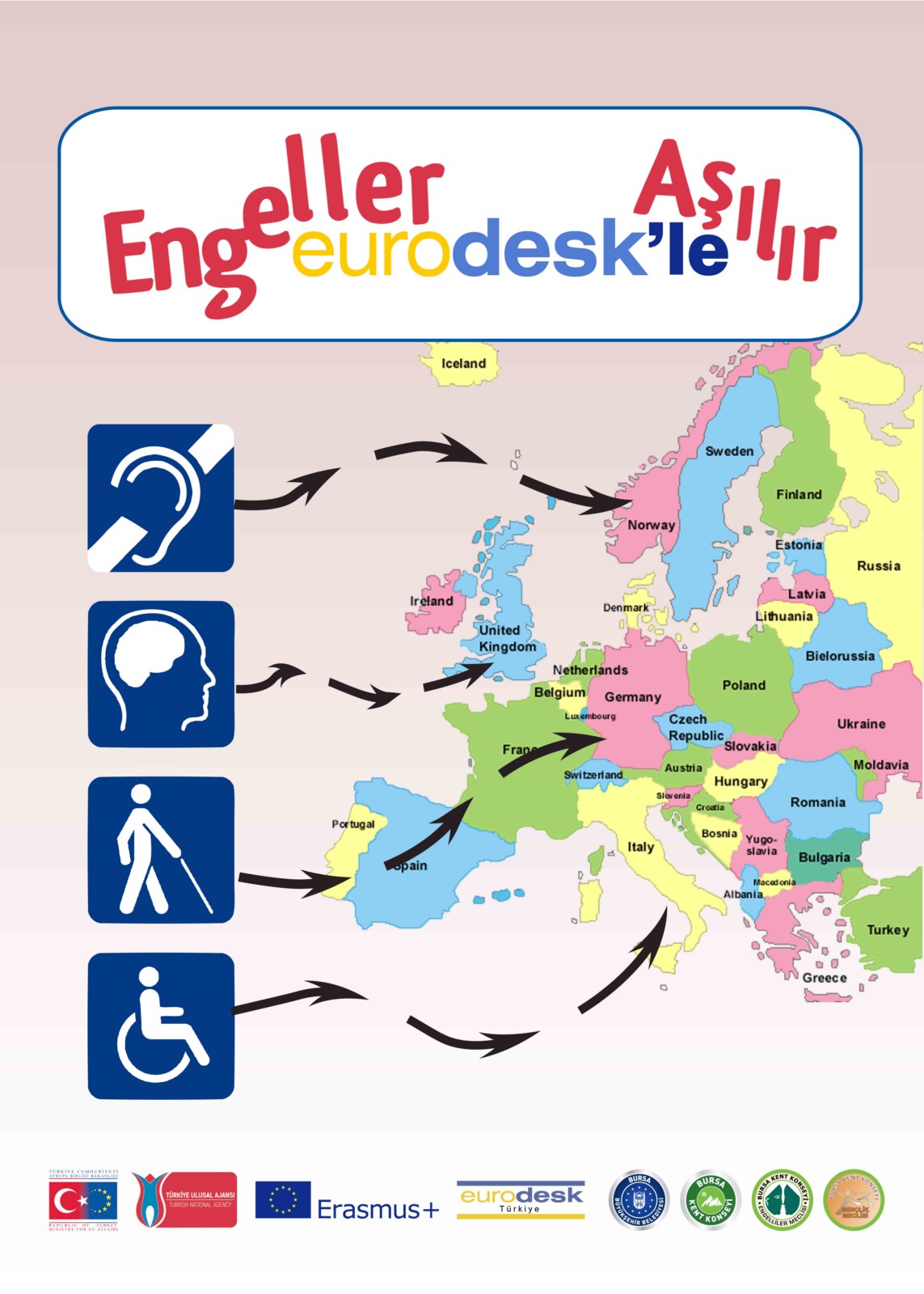 - Eurodesk Yerel Temas Noktası olan Bursa Kent Konseyi (BKK) Gençlik Meclisi, Destek Hibe Programı kapsamında yürütülen ‘Engeller Eurodesk İle Aşılır’ projesiyle engelli bireylerin de Avrupa fırsatlarından yararlanmasını amaçlıyor.